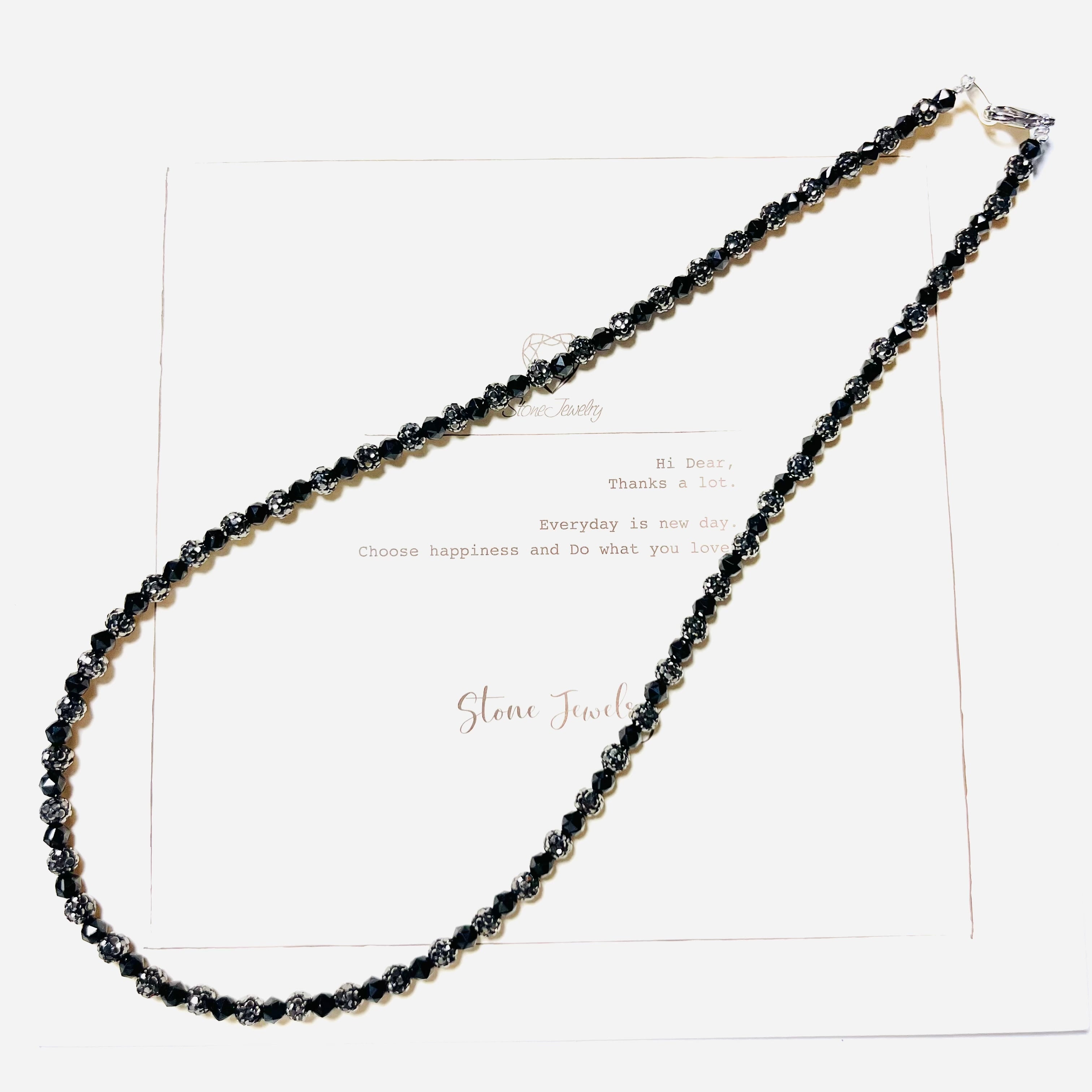 ダイヤモンドブラック(クリスタルガラス)とブラックスピネル(漆黒石)を混合した2種類の輝きを放つStone Jewelryだけのオリジナルネックレスとなります