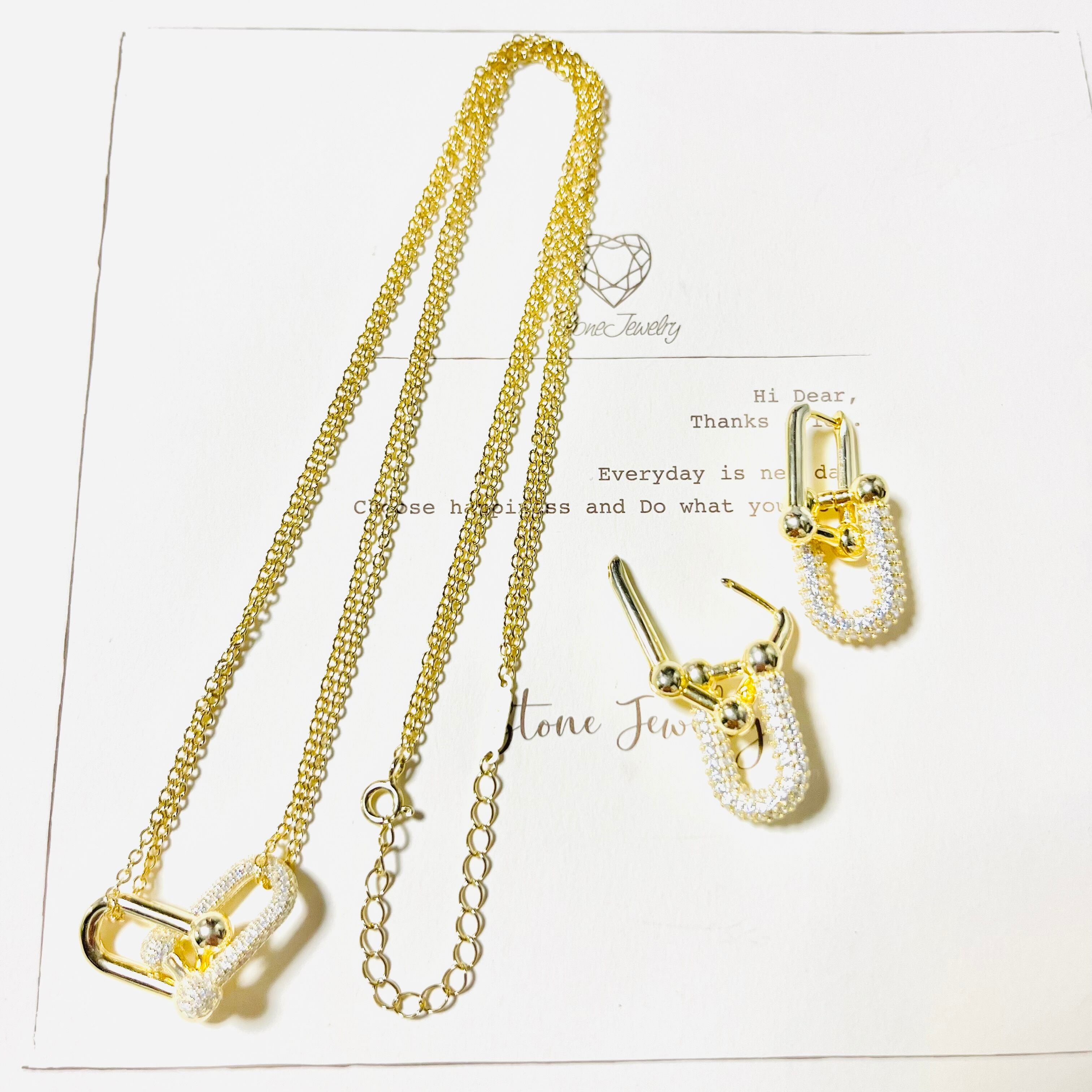 silver925鎖ペアネックレス&ピアスセット【ゴールド】