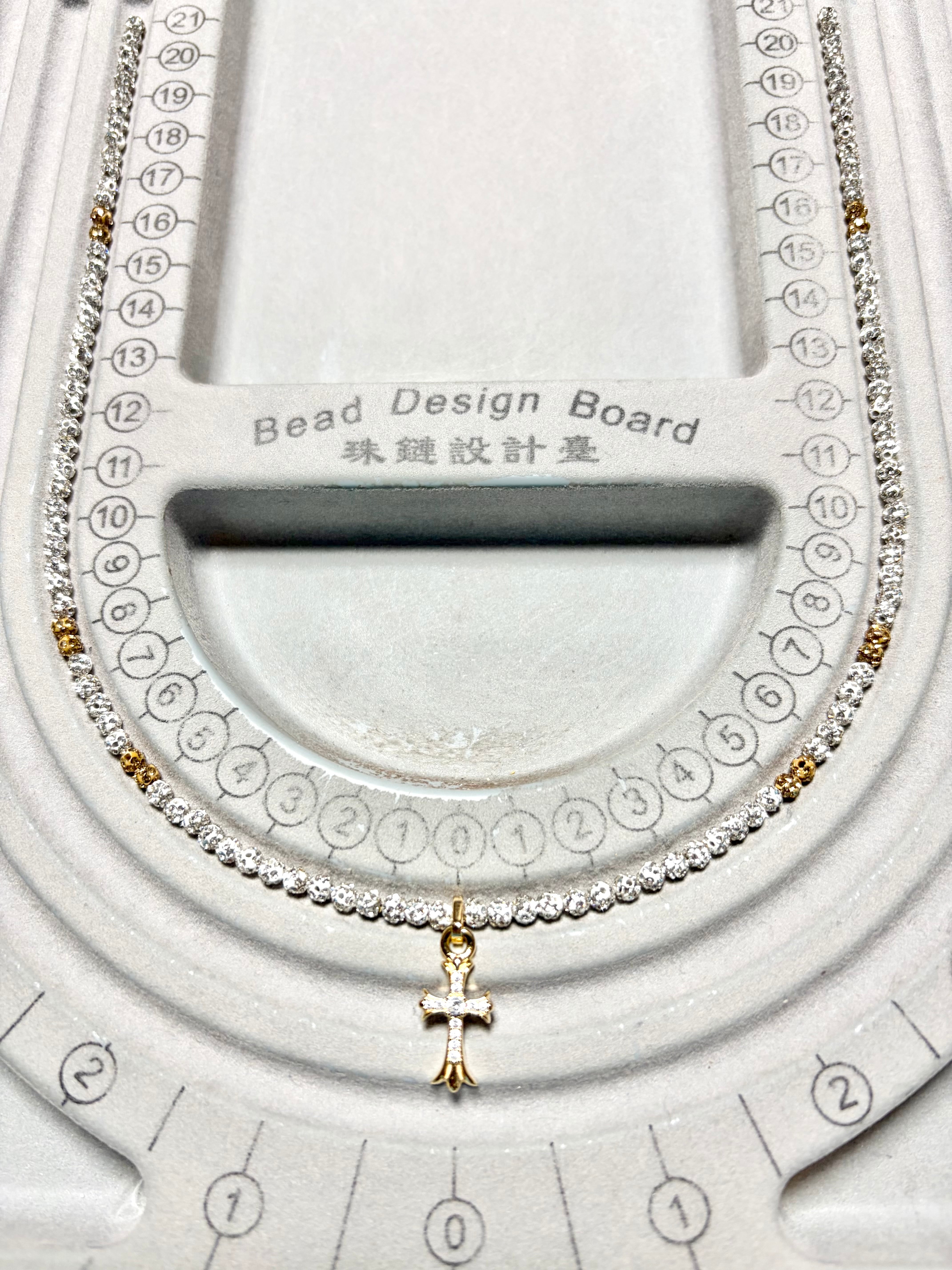 3㎜ホワイト&ゴールド混合ネックレス(小クロス付き) | StoneJewelry