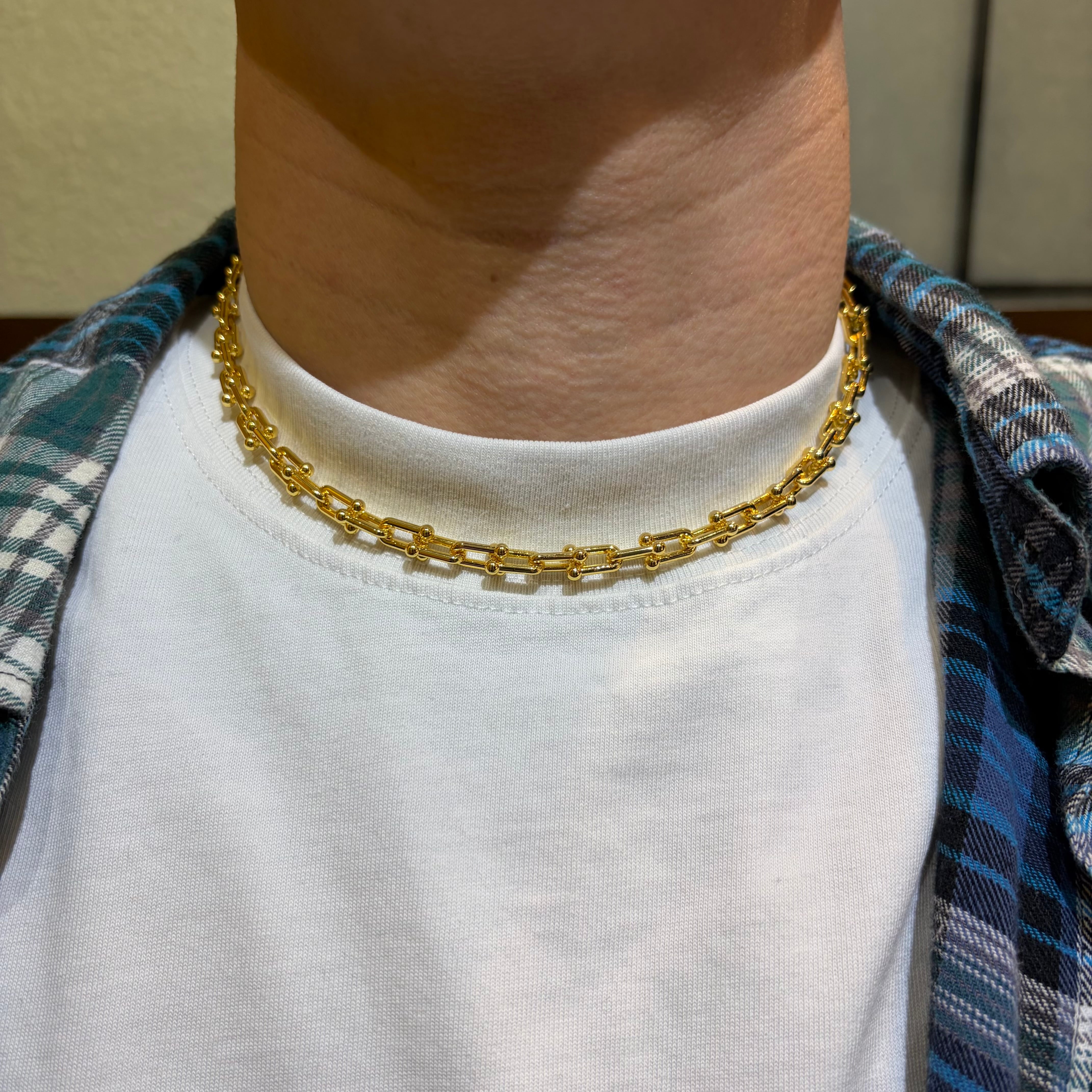 肌に優しい高品質の素材で、アレルギーがある方も安心のクサリモチーフのnecklaceとなります