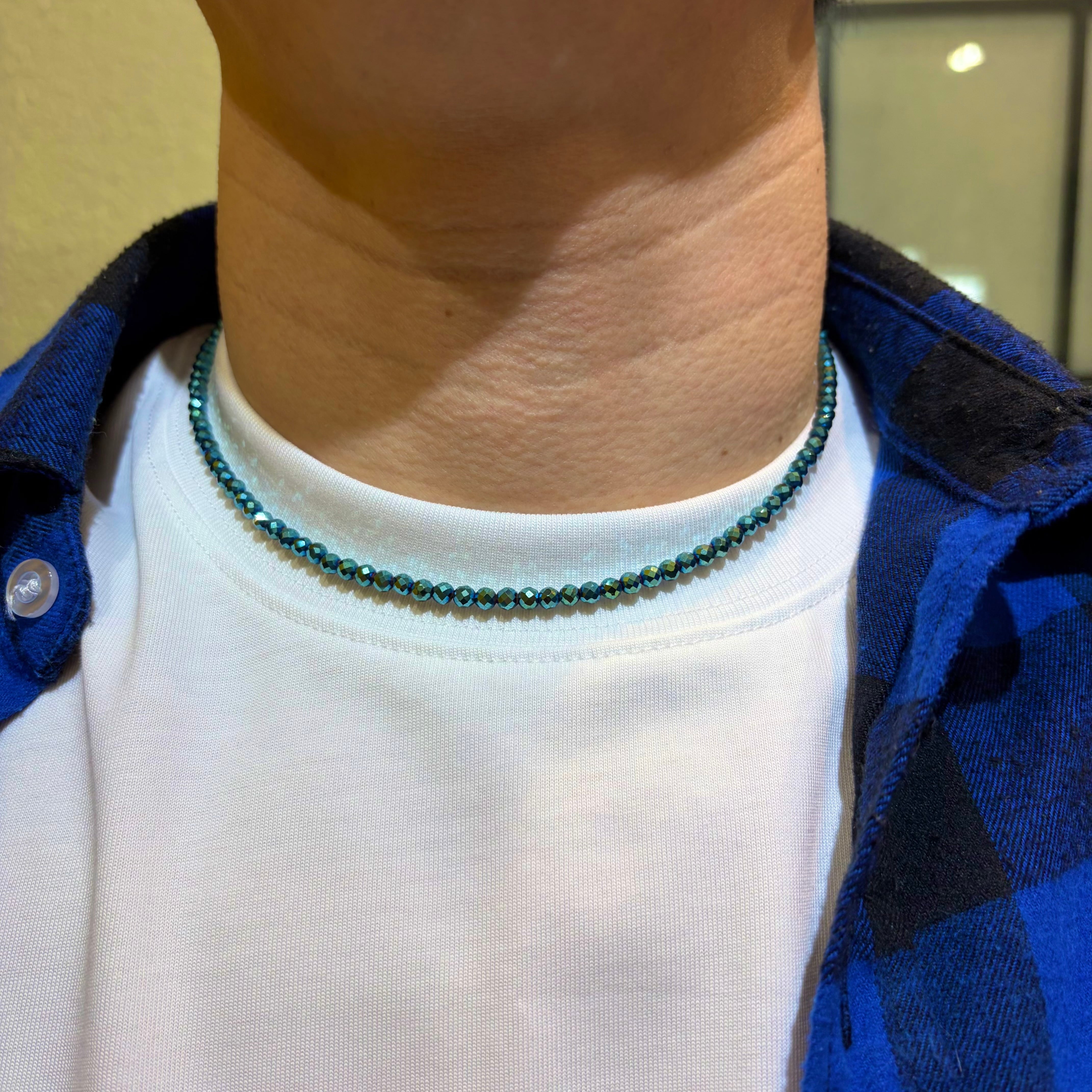 金属アレルギー対応ヘマタイトオーシャンブルーネックレス