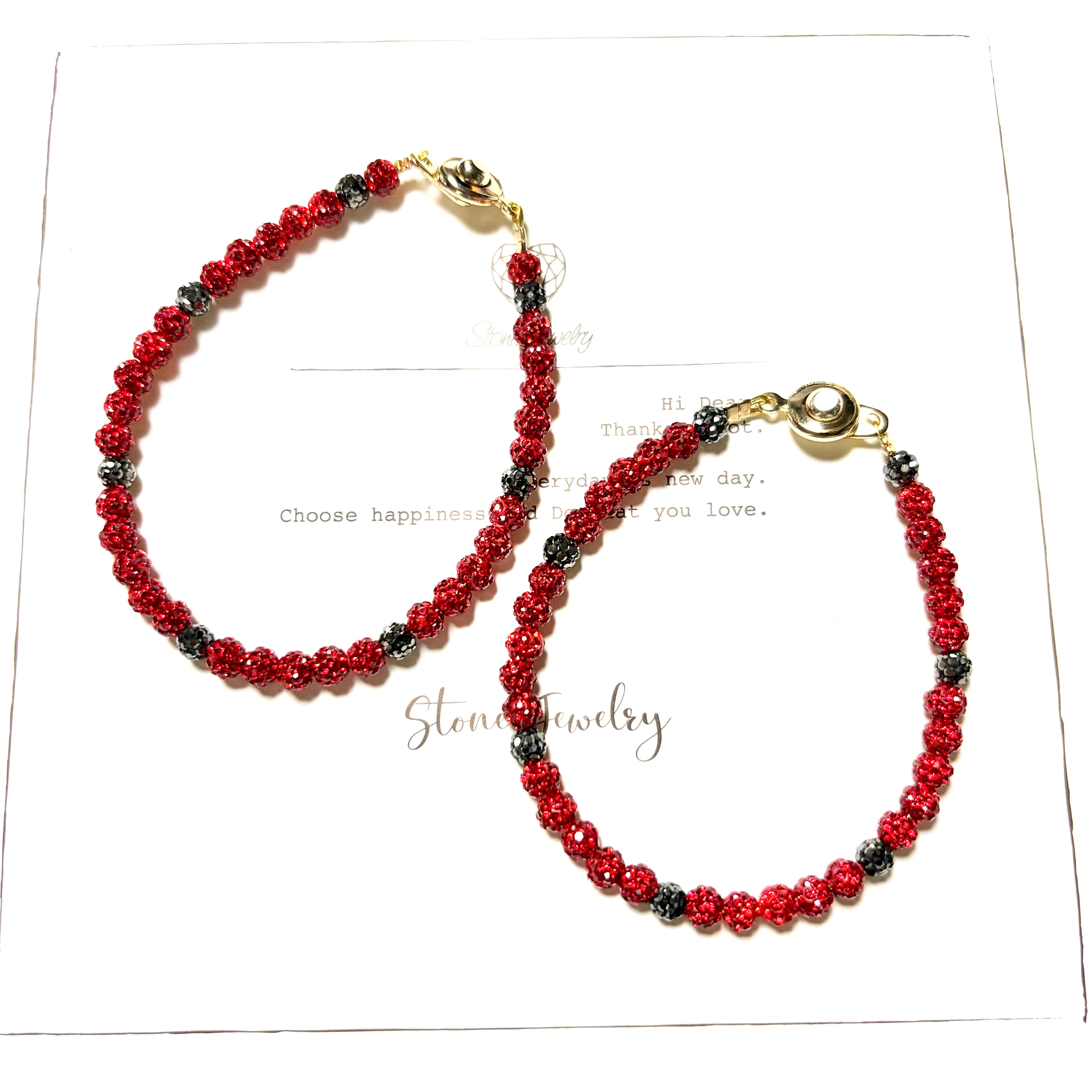 レッド&ダイヤモンドブラック混合ブレスレットセット