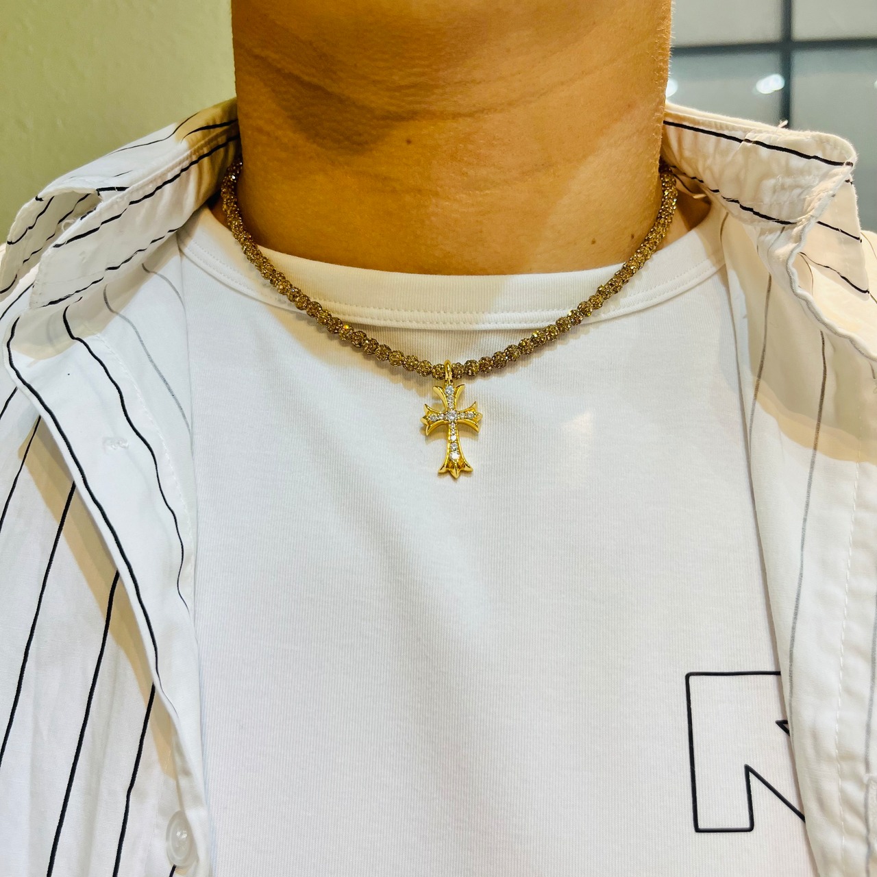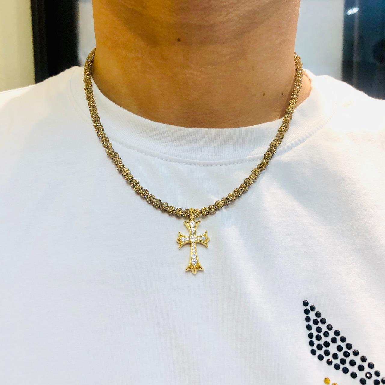 キラキラゴールドとsilver925の大クロスを合わせたゴールドコーデのネックレスとなってます✨
