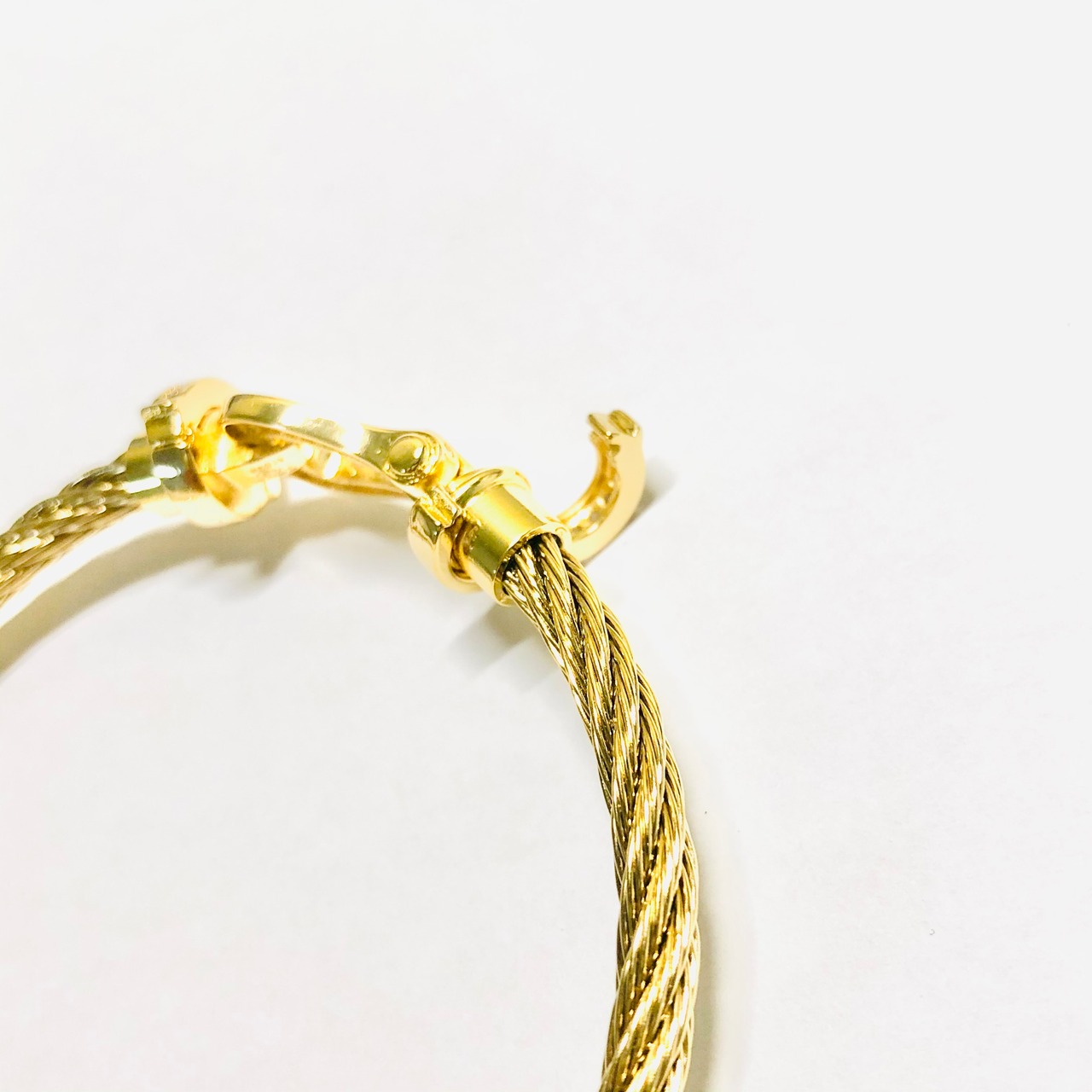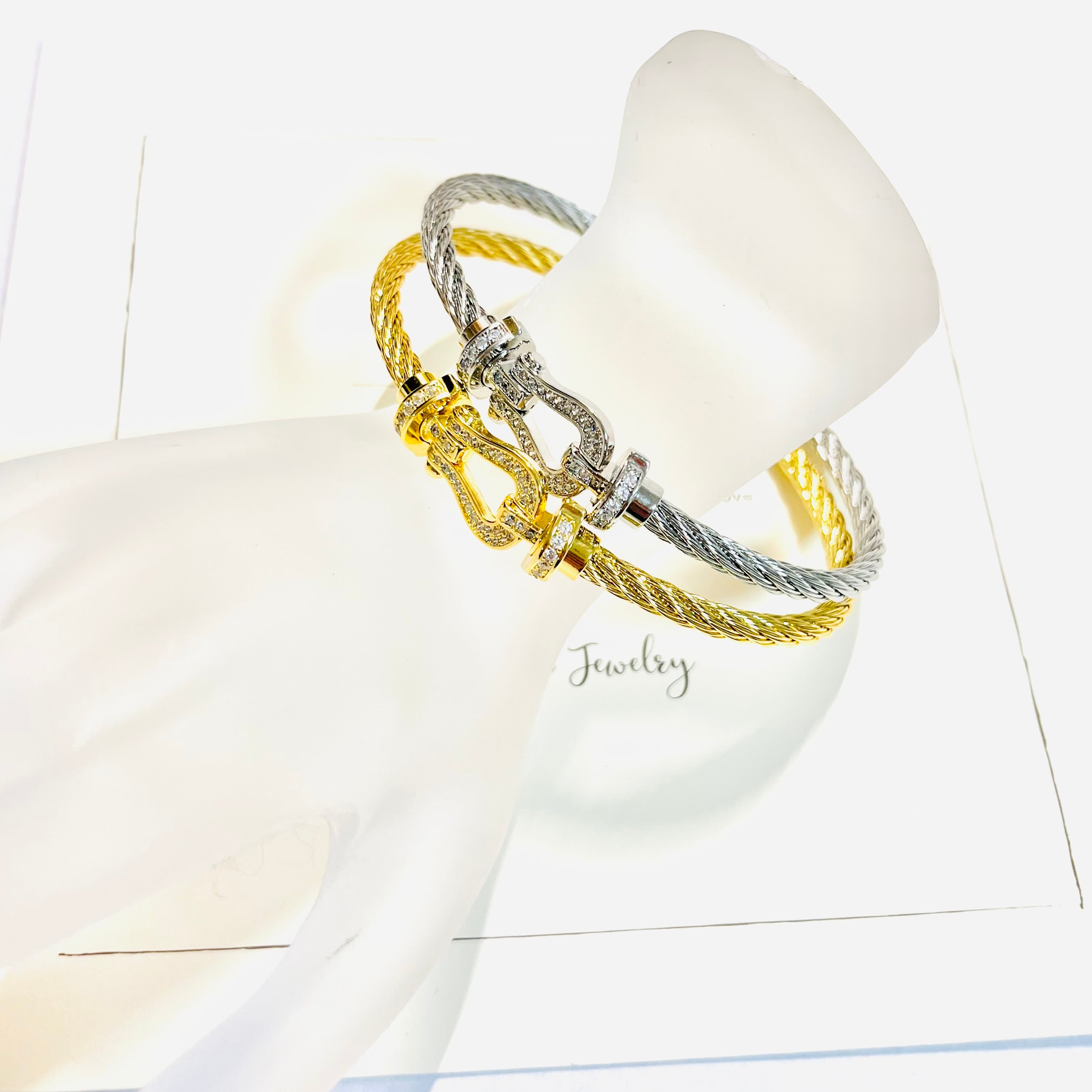 silver925(銀)ヒヅメトップと特殊なステンレスワイヤーを18Kコーティングし、金属アレルギーにも対応した、お風呂、温泉等も身につけていただけて、傷つきにくく長期間にわたってお使いいただけるヒヅメの型をモチーフにしたブレスレットです