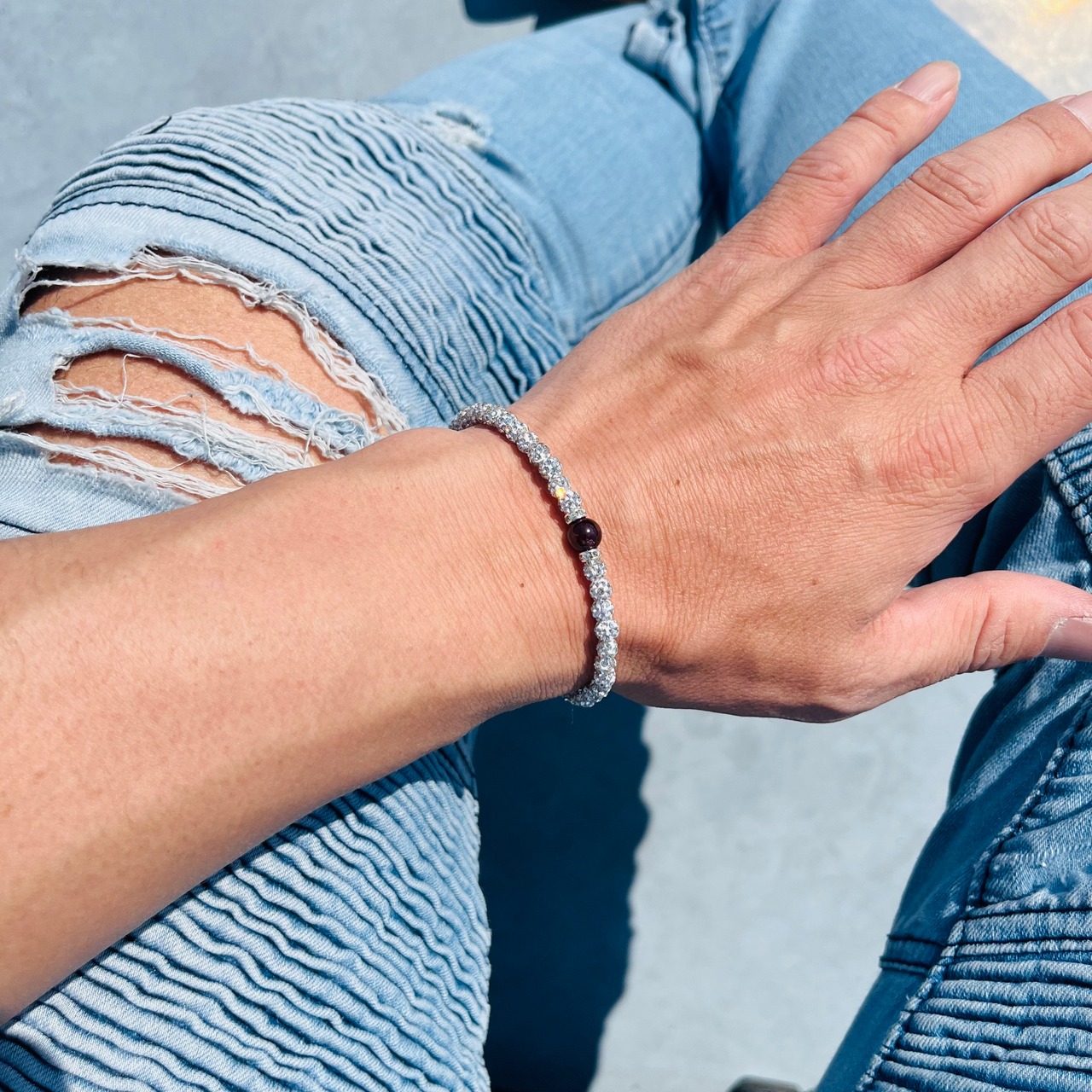 ※手首実寸が16㎝の方の場合玉の内径2㎝余分に見てLサイズ(全長18㎝)をオススメいたします