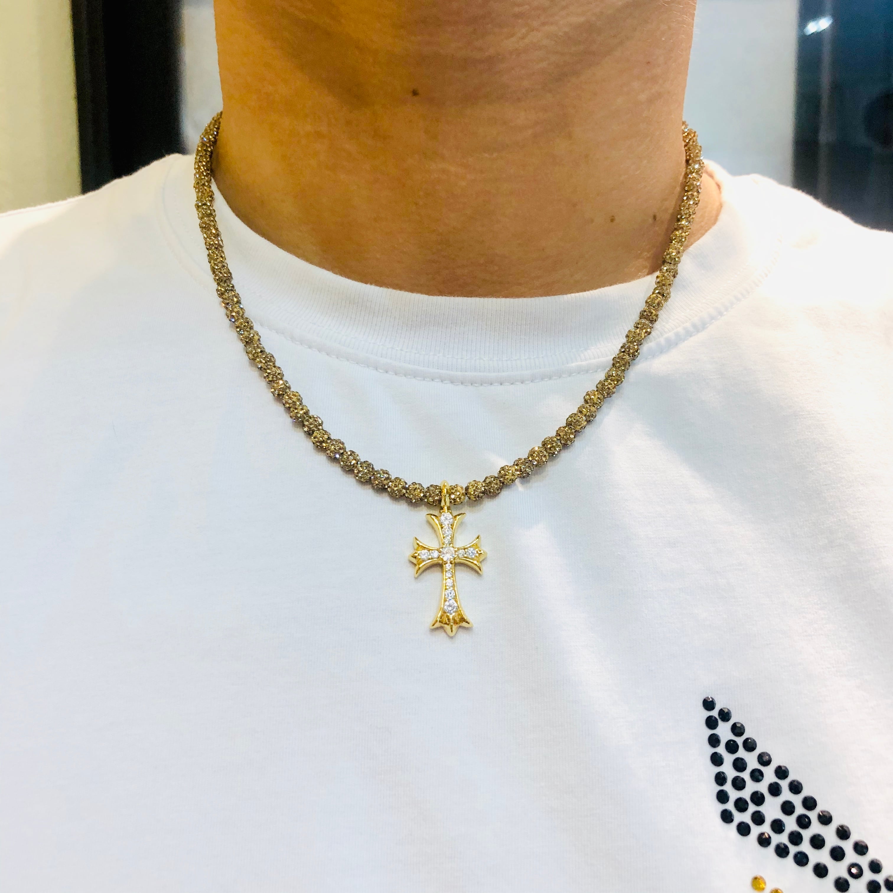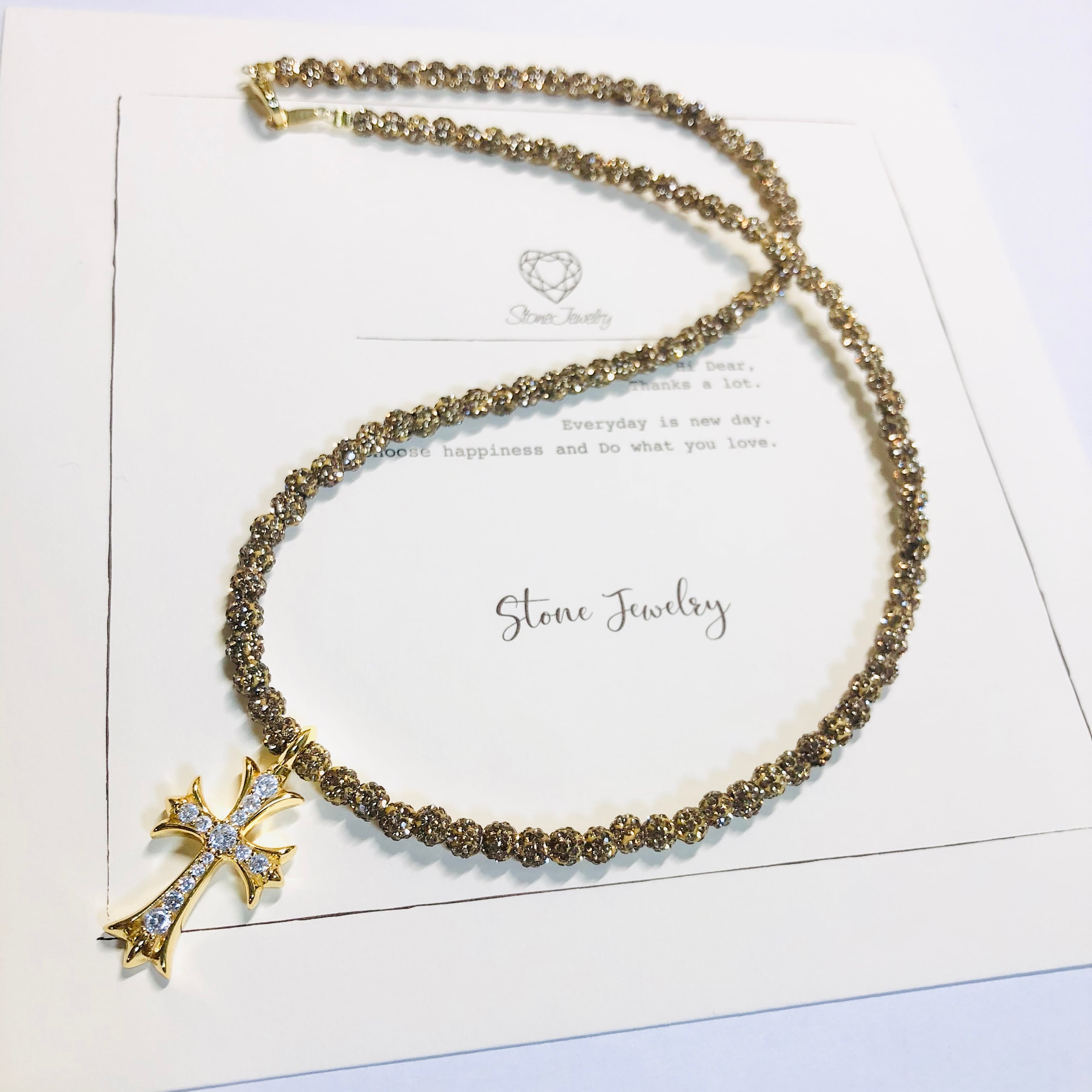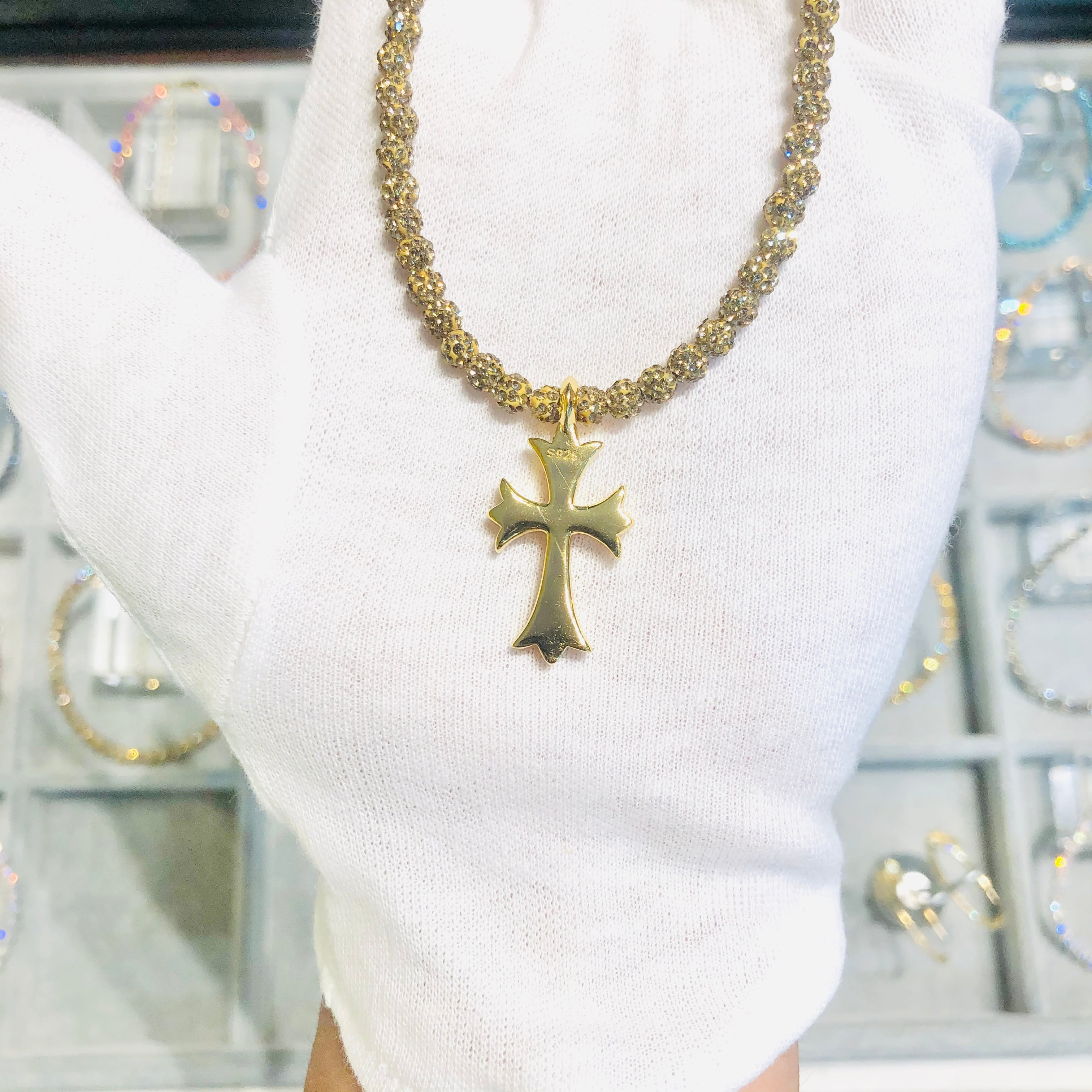 キラキラガラスゴールドとsilver925の大クロスを合わせたゴールドコーデネックレスとなってます✨