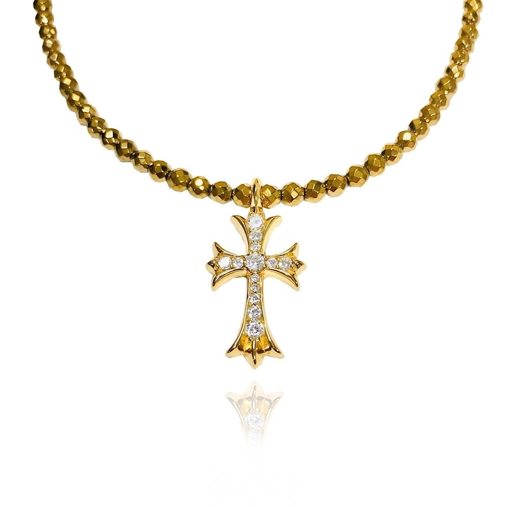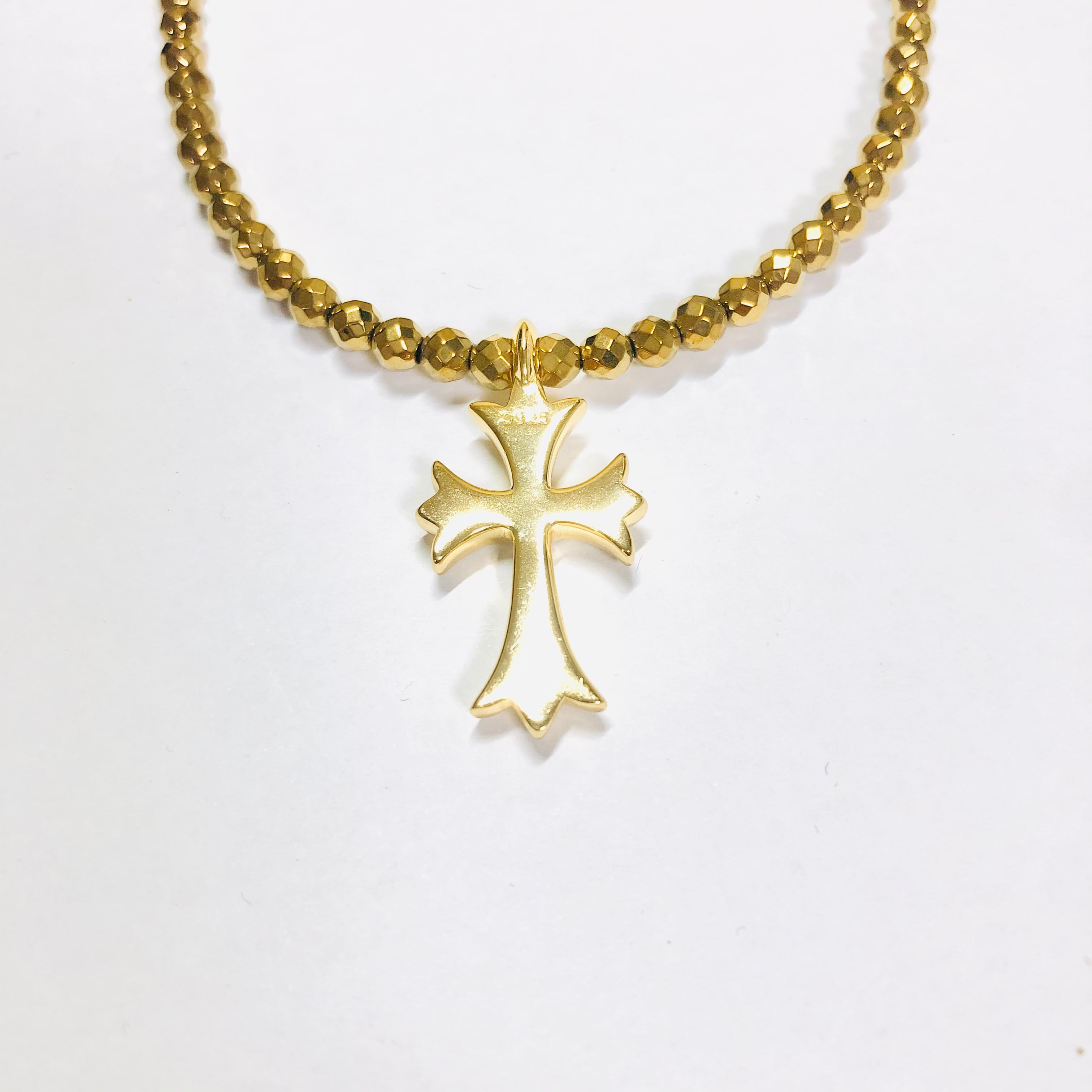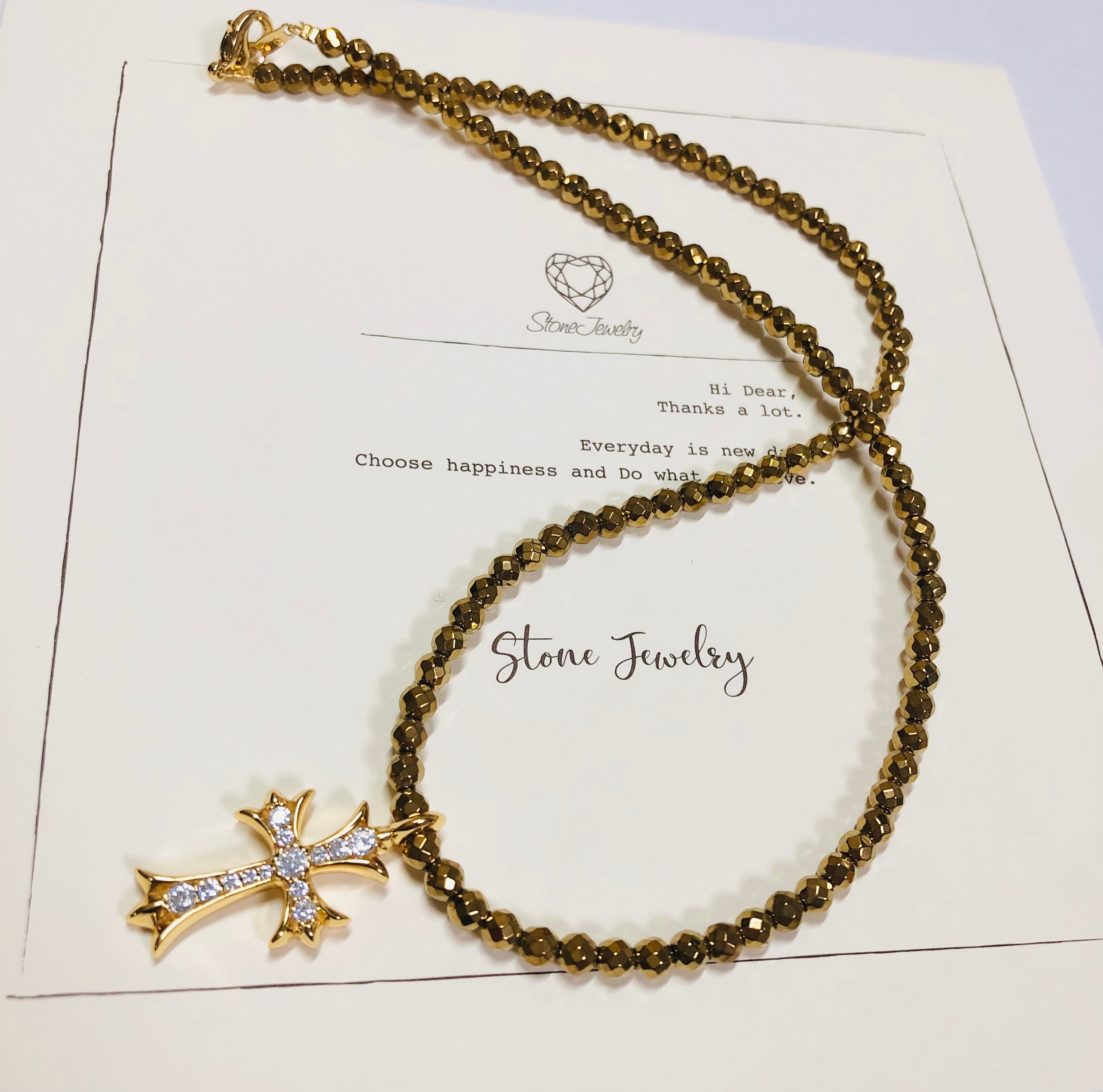 silver925のクロストップを合わせたnecklaceです☆ヘマタイトは鉱石のため劣化する事なく半永久、長くご愛用いただけて肩こり改善、体調バランスを整える健康アイテムとして知られています