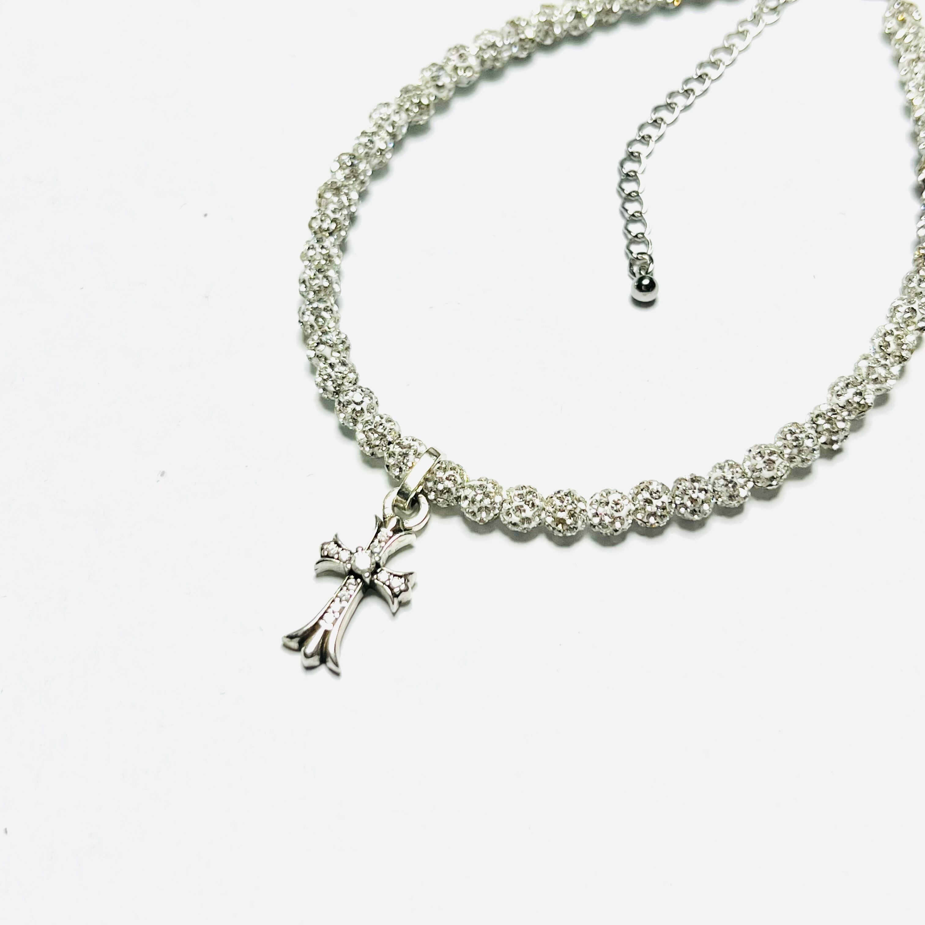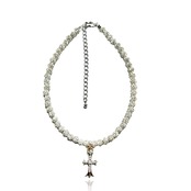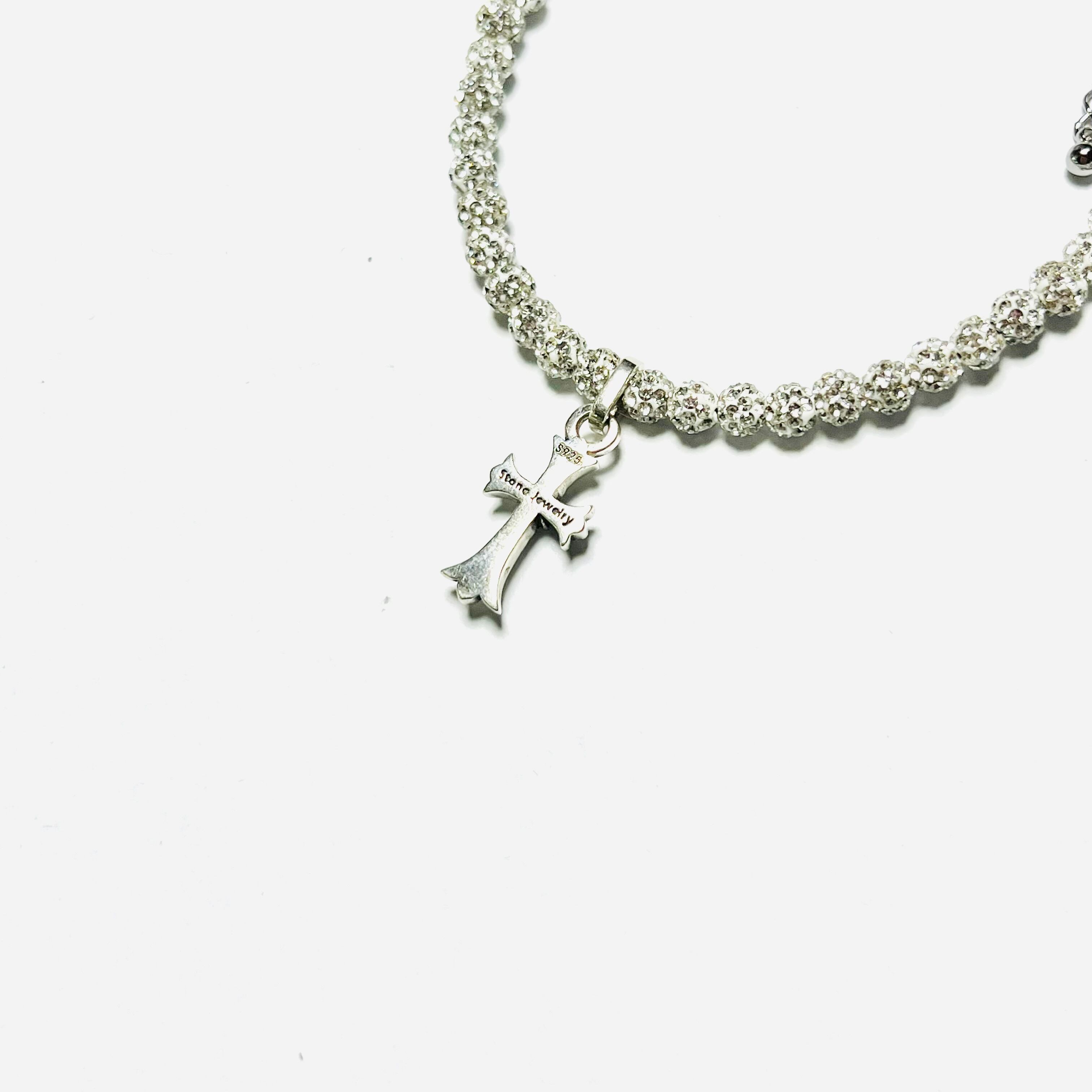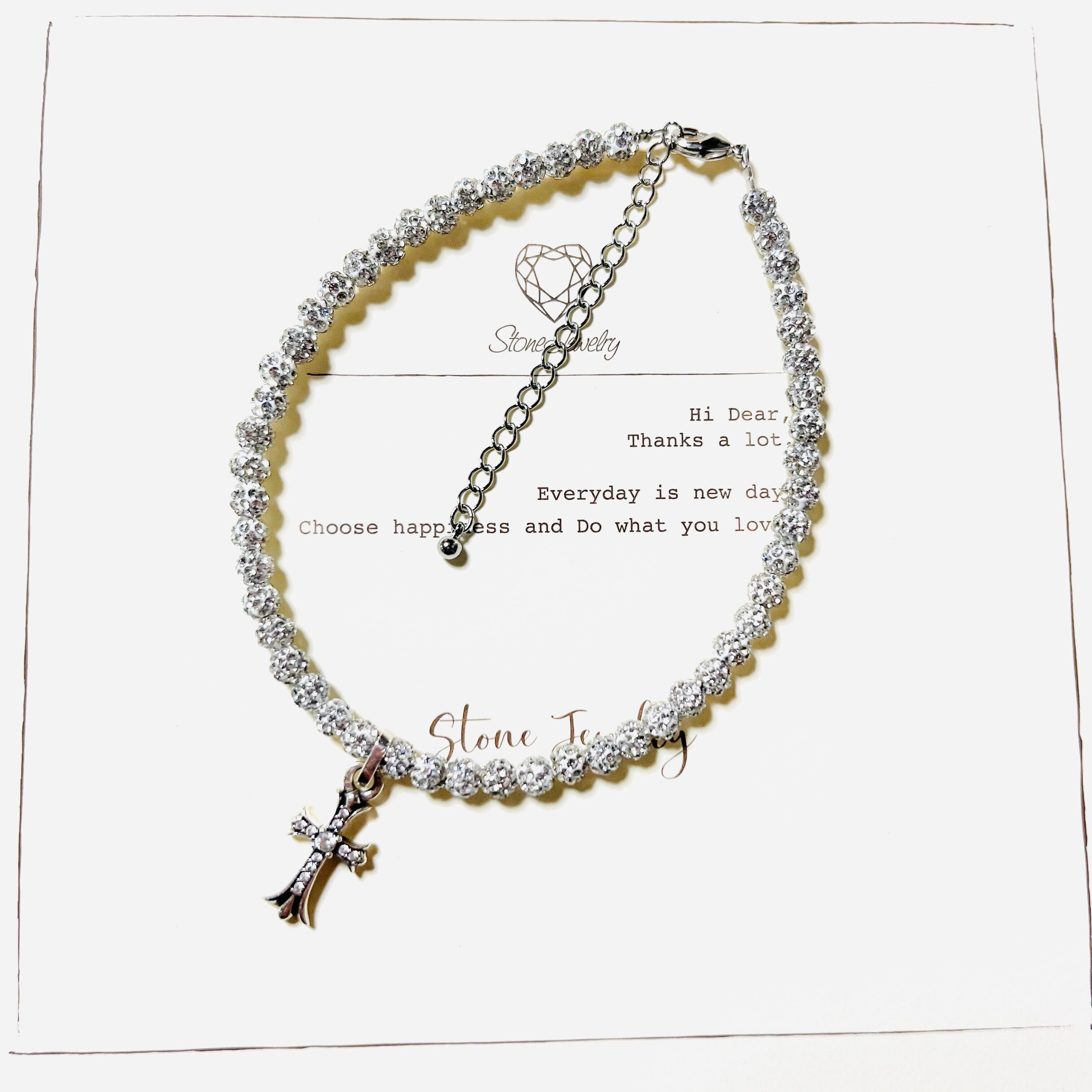 ホワイトにsilver925(銀)小クロスをつけたキラキラガラスのアンクレットです✨