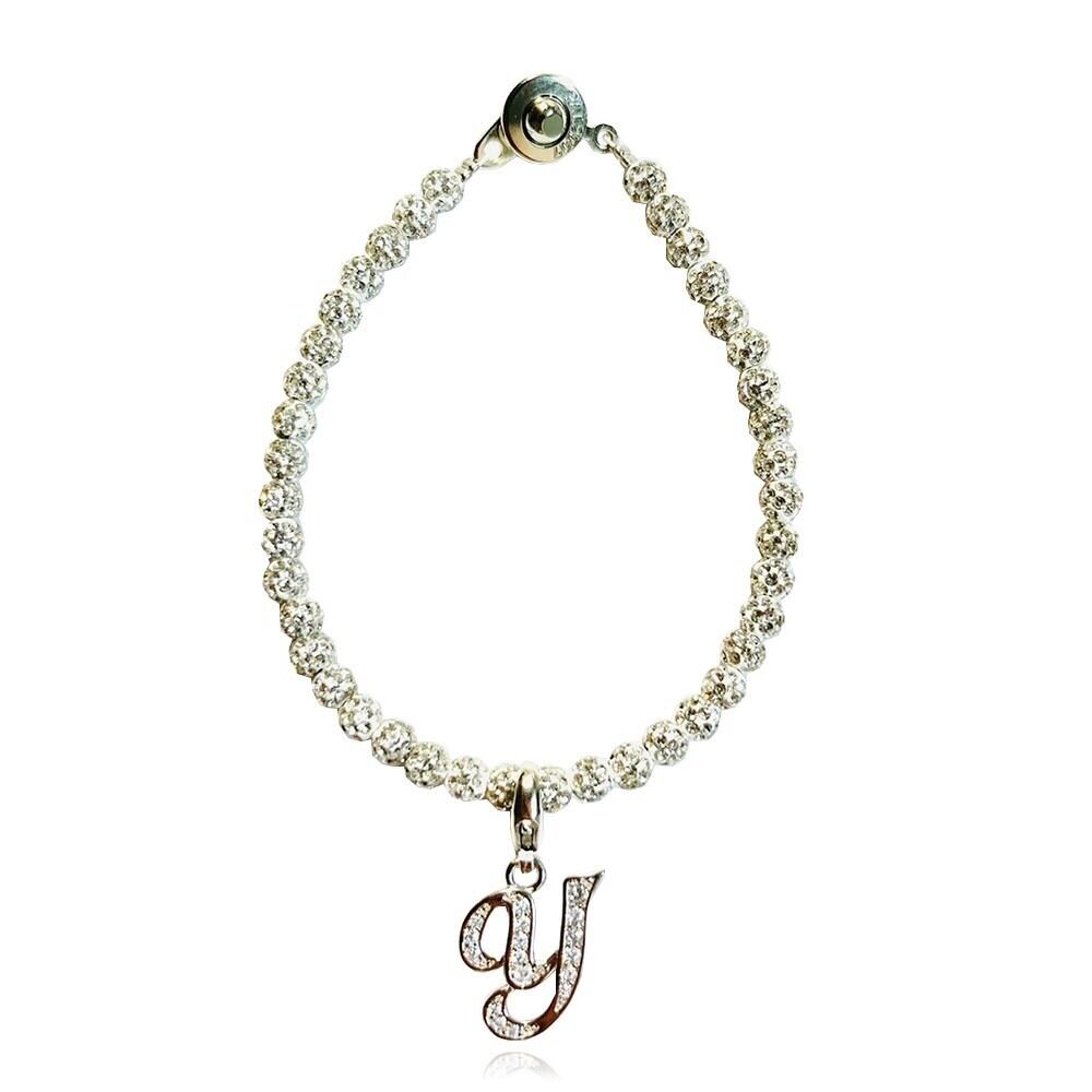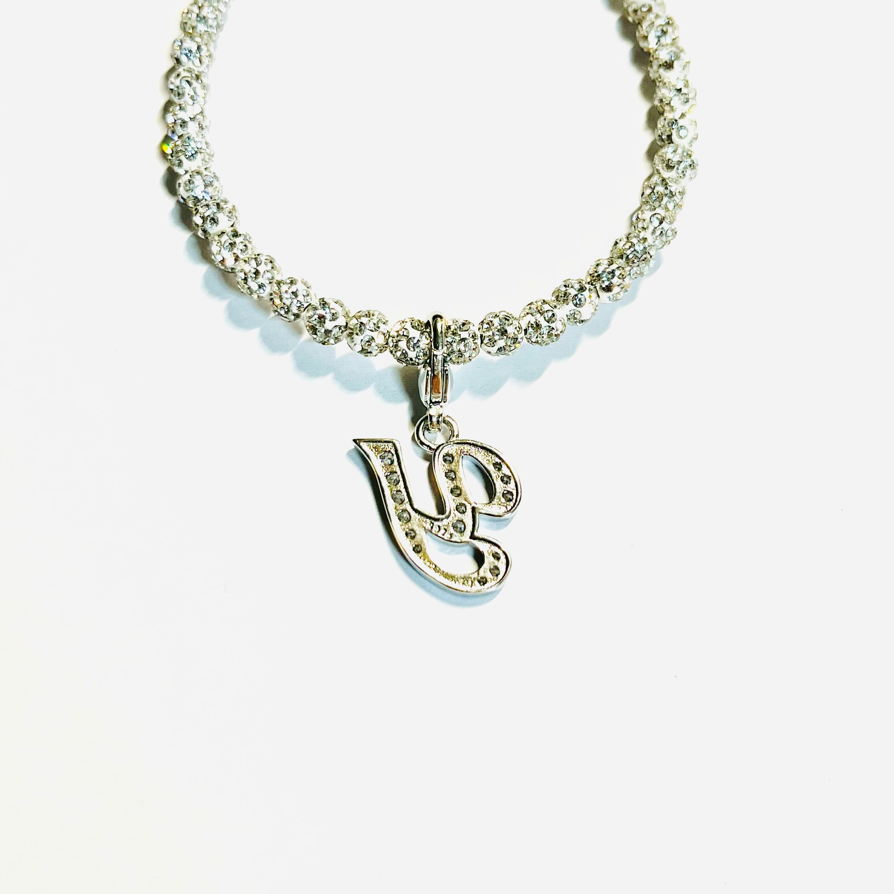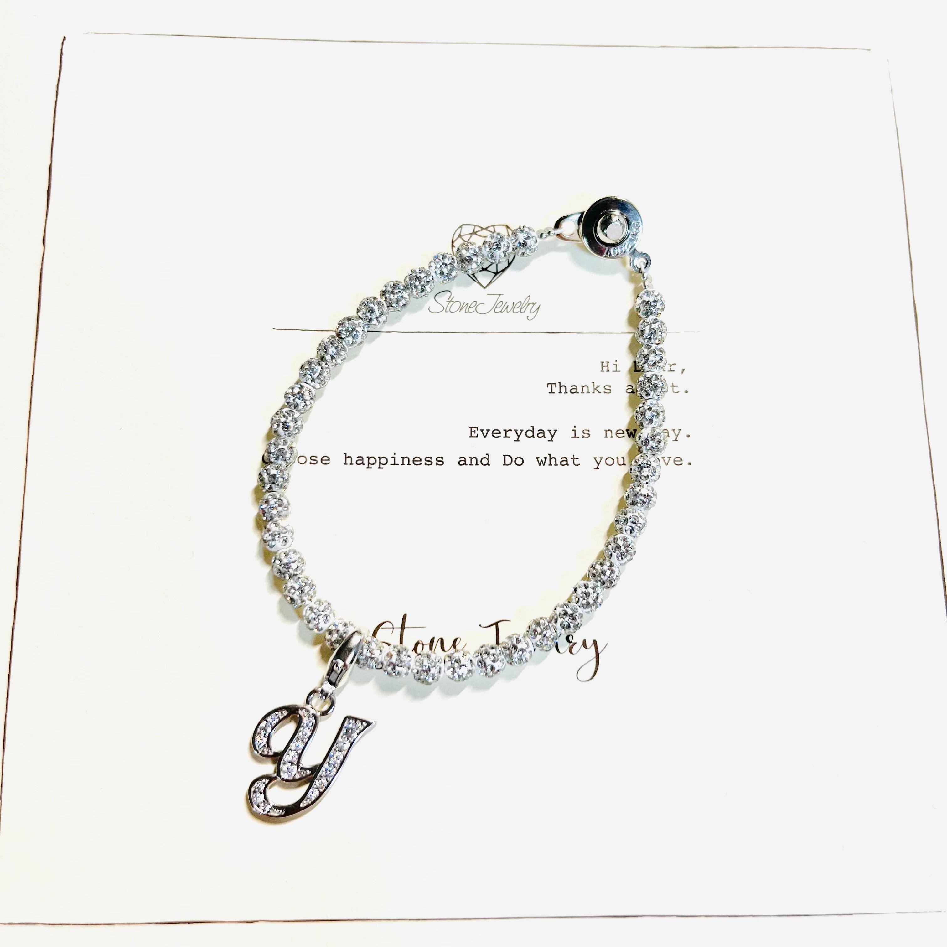 キラキラホワイトブレスレットにsilver925(スターリングシルバー純銀)の小イニシャルトップを合わせたセットとなります