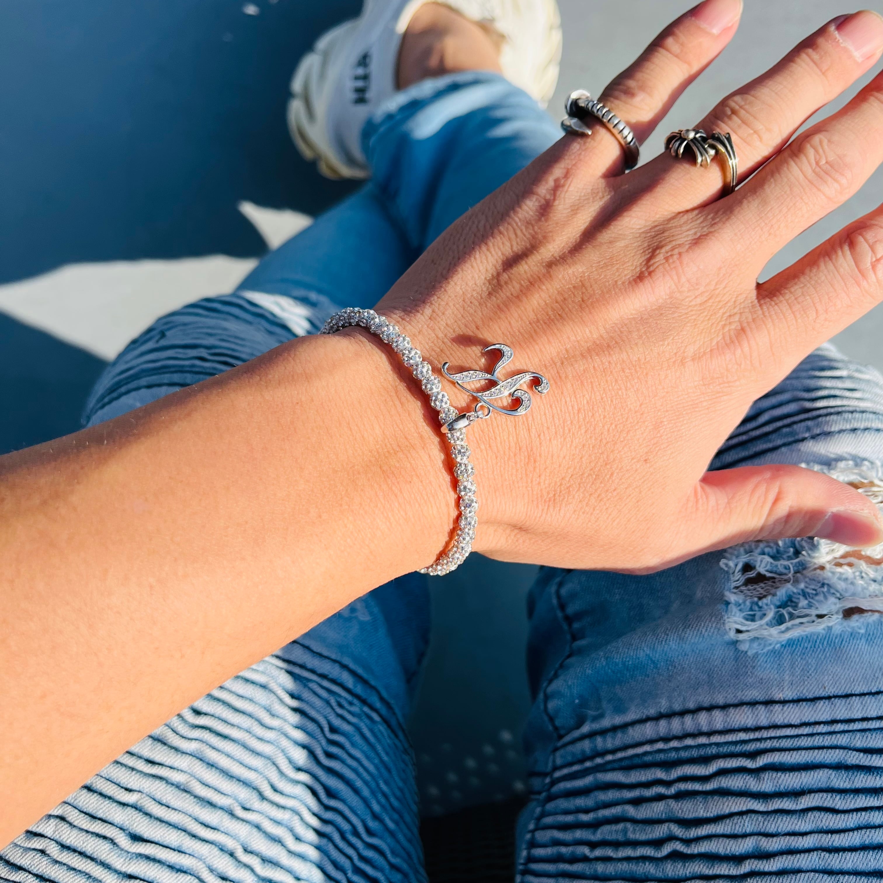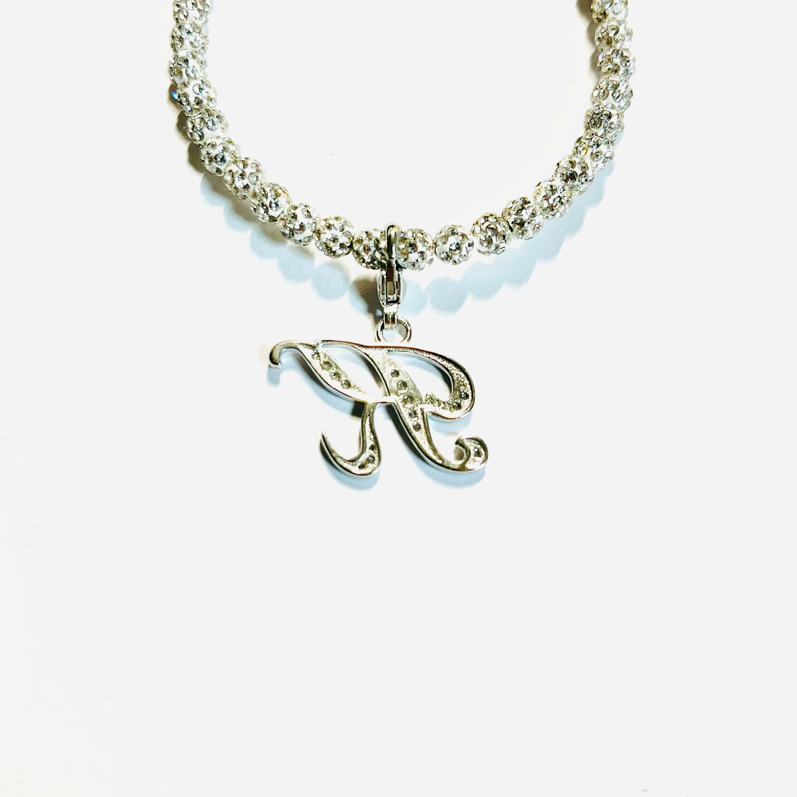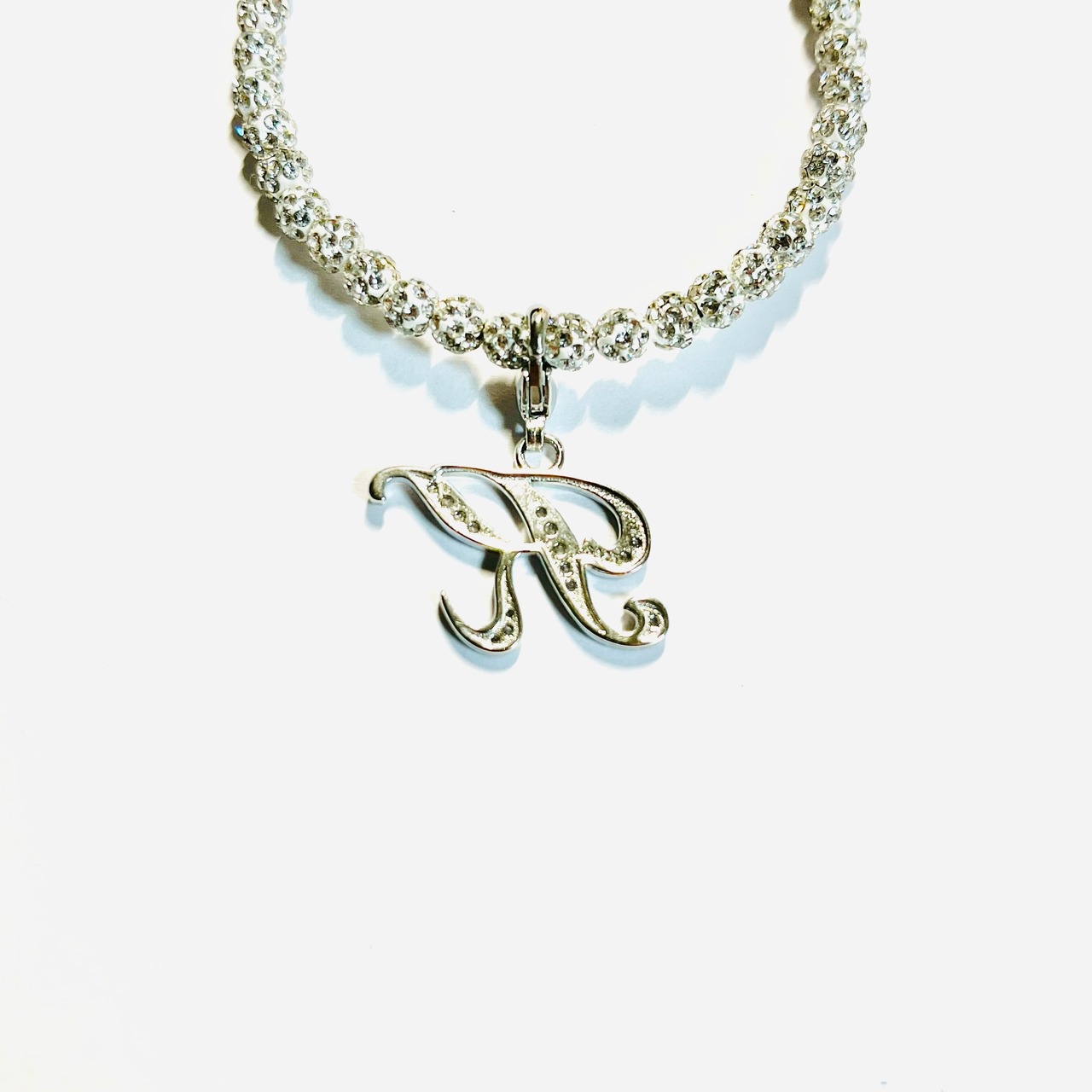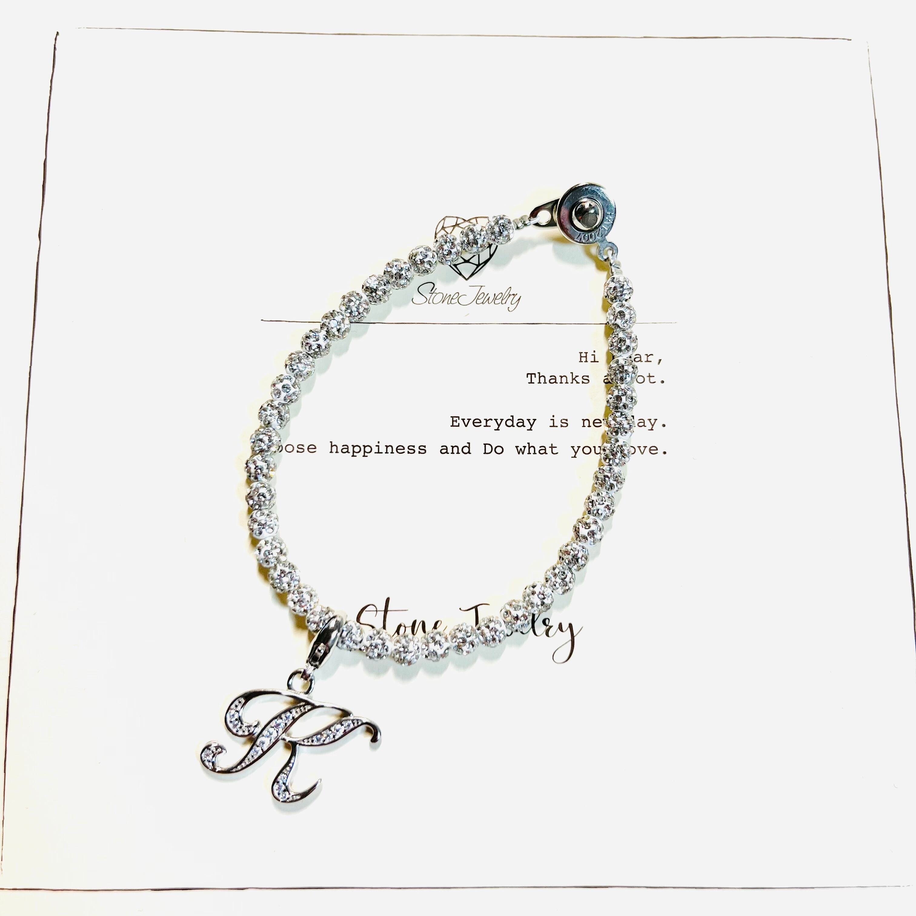 キラキラホワイトブレスレットにsilver925(スターリングシルバー純銀)の小イニシャルトップを合わせたセットとなります