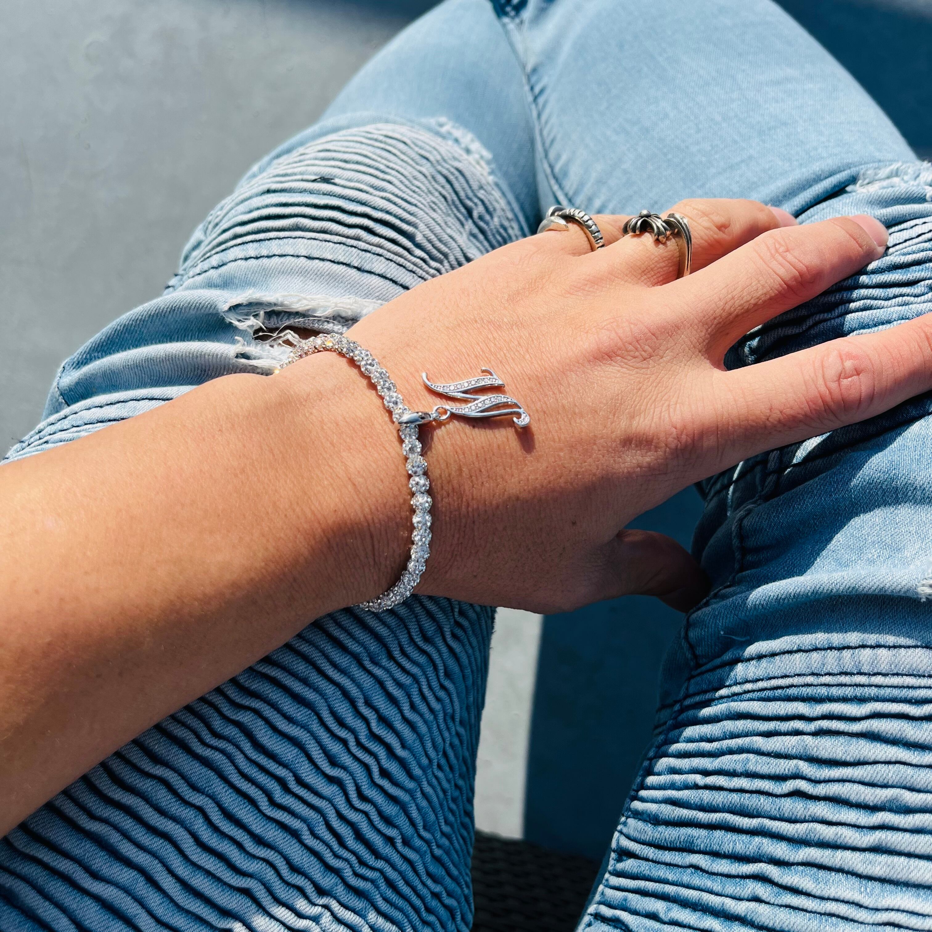金属アレルギー対応イニシャル「M」ブレスレットホワイト