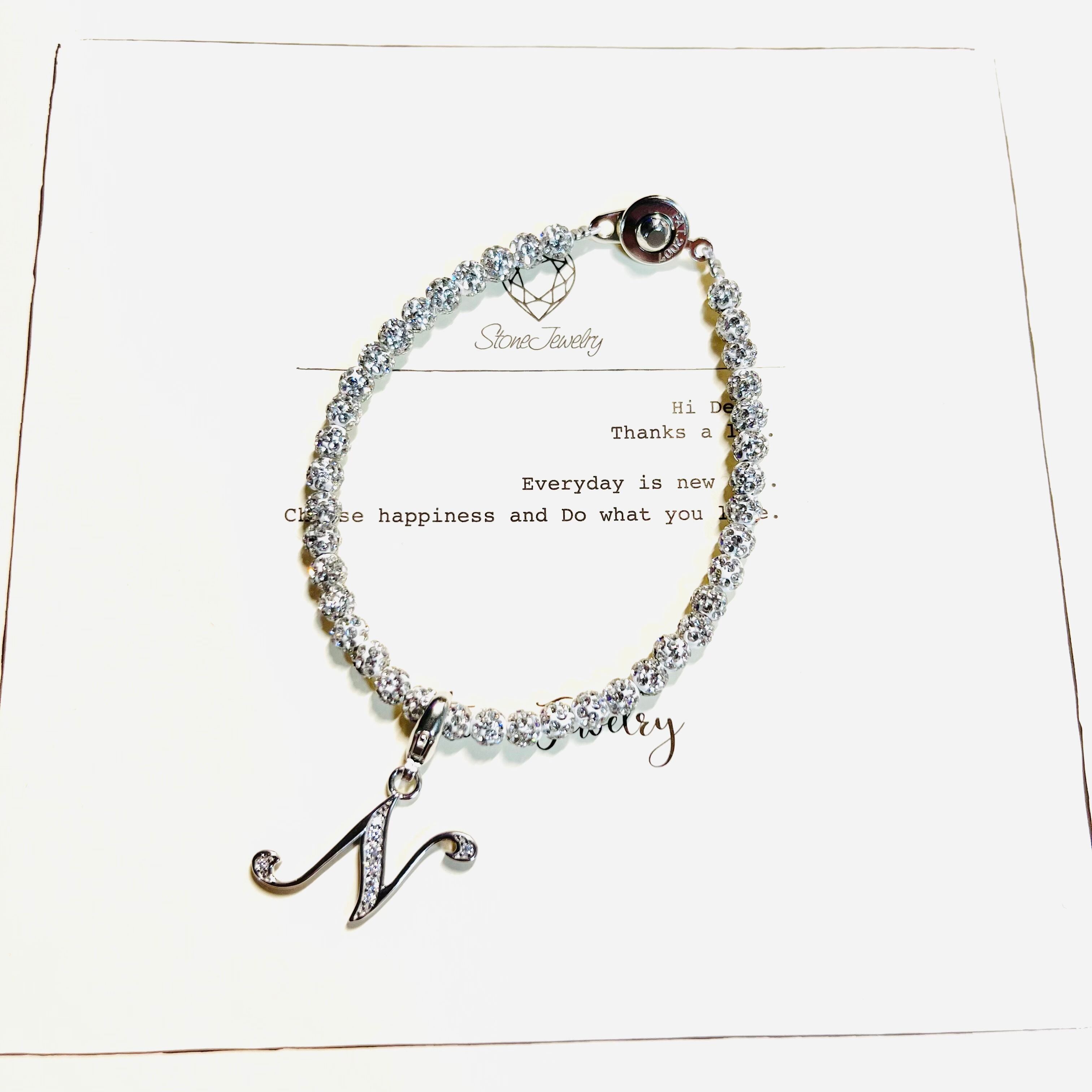 イニシャル「N」ブレスレットホワイト