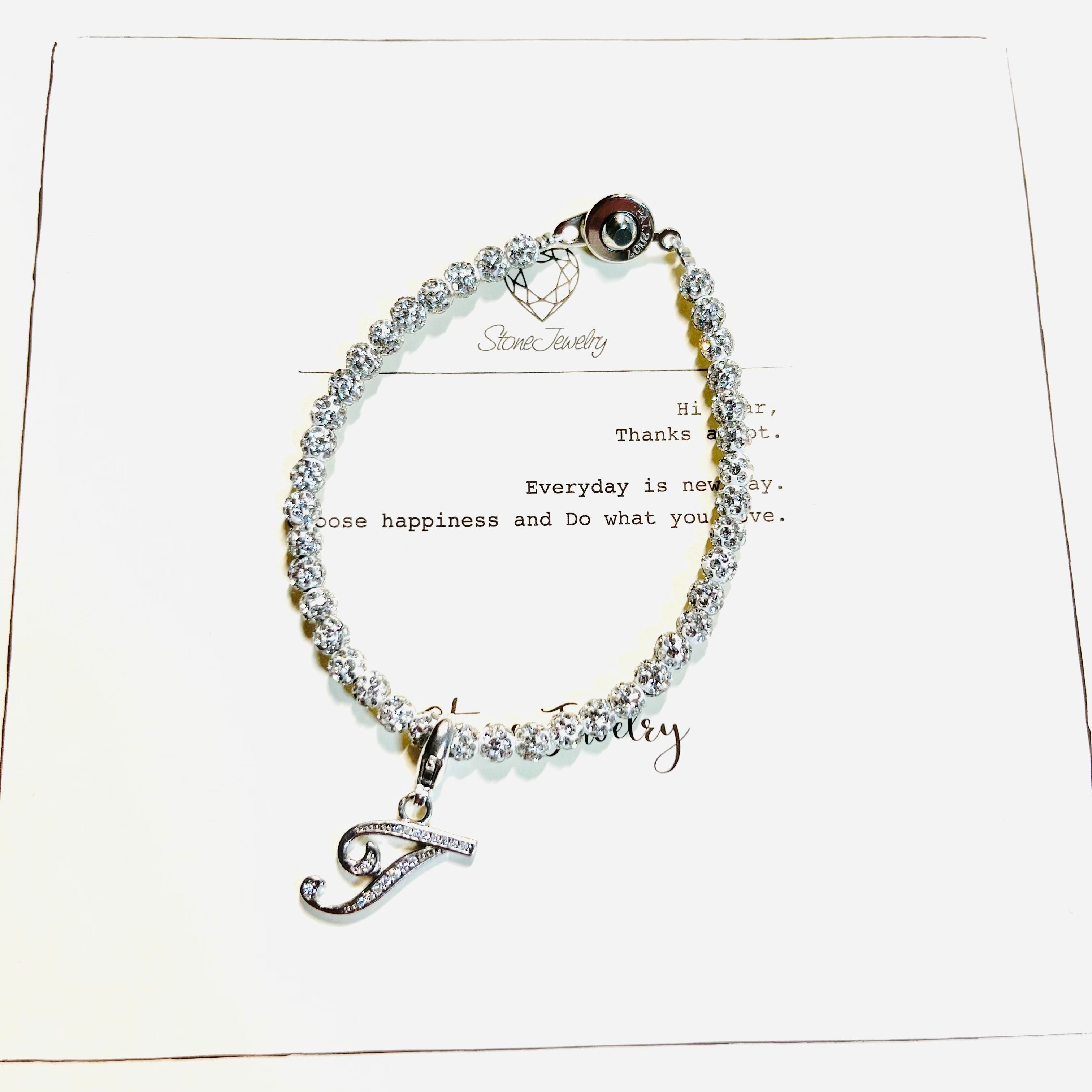 金属アレルギー対応イニシャル「T」ブレスレットホワイト