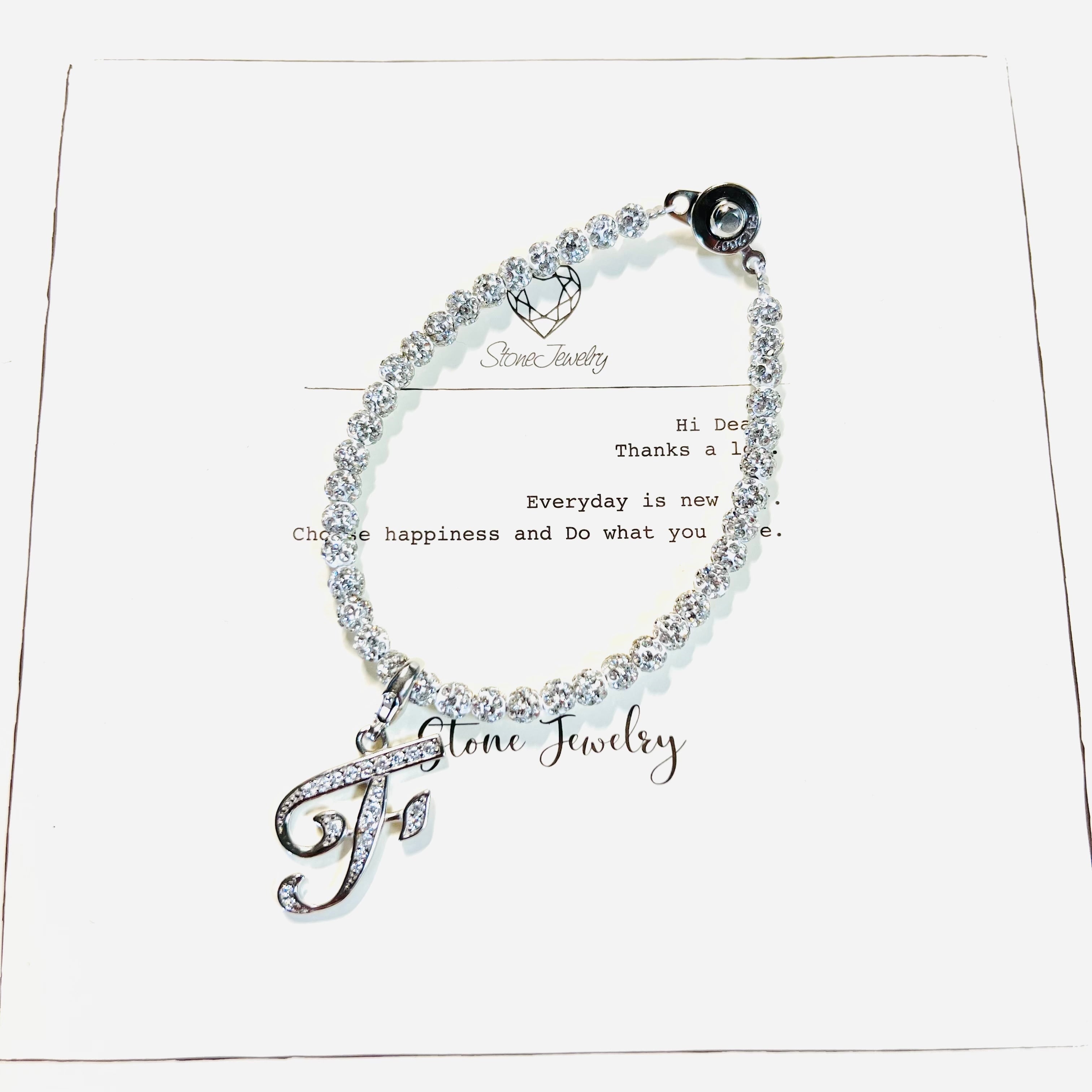 キラキラホワイトブレスレットにsilver925(スターリングシルバー純銀)の小イニシャルトップを合わせたセットとなります