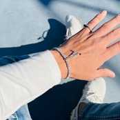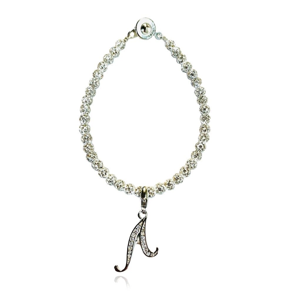 キラキラホワイトブレスレットにsilver925(スターリングシルバー純銀)の小イニシャルトップを合わせたセットとなります