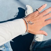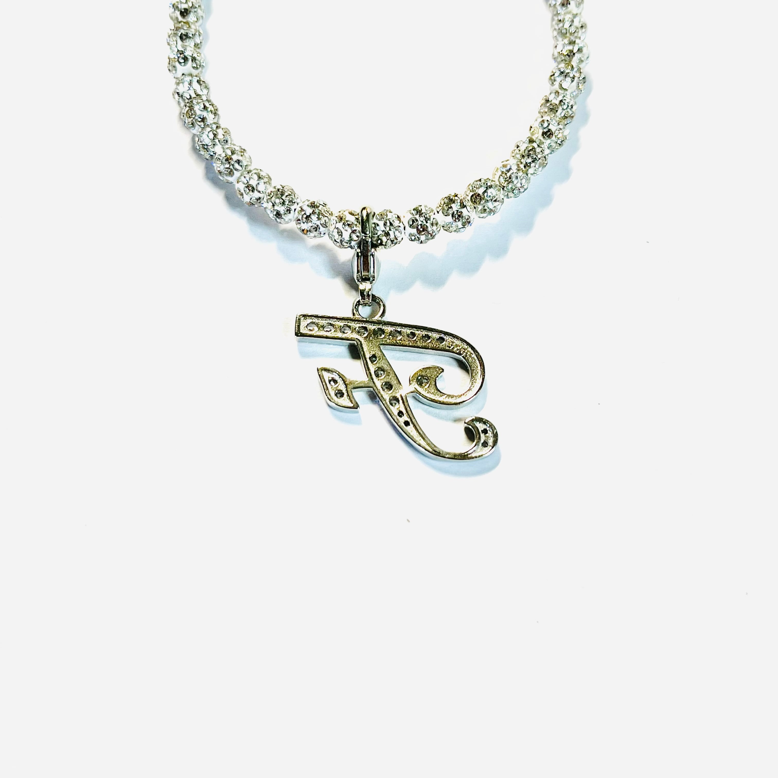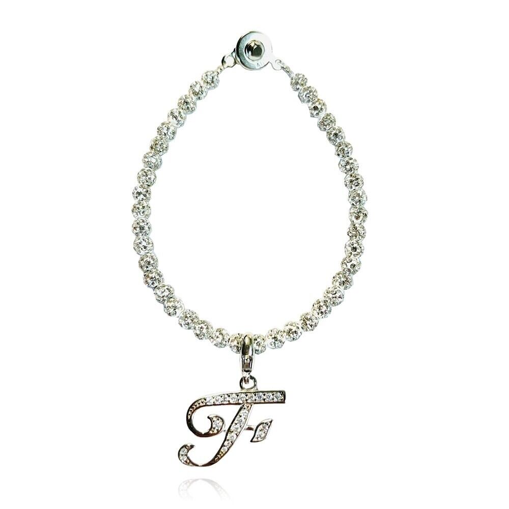 キラキラホワイトブレスレットにsilver925(スターリングシルバー純銀)の小イニシャルトップを合わせたセットとなります
