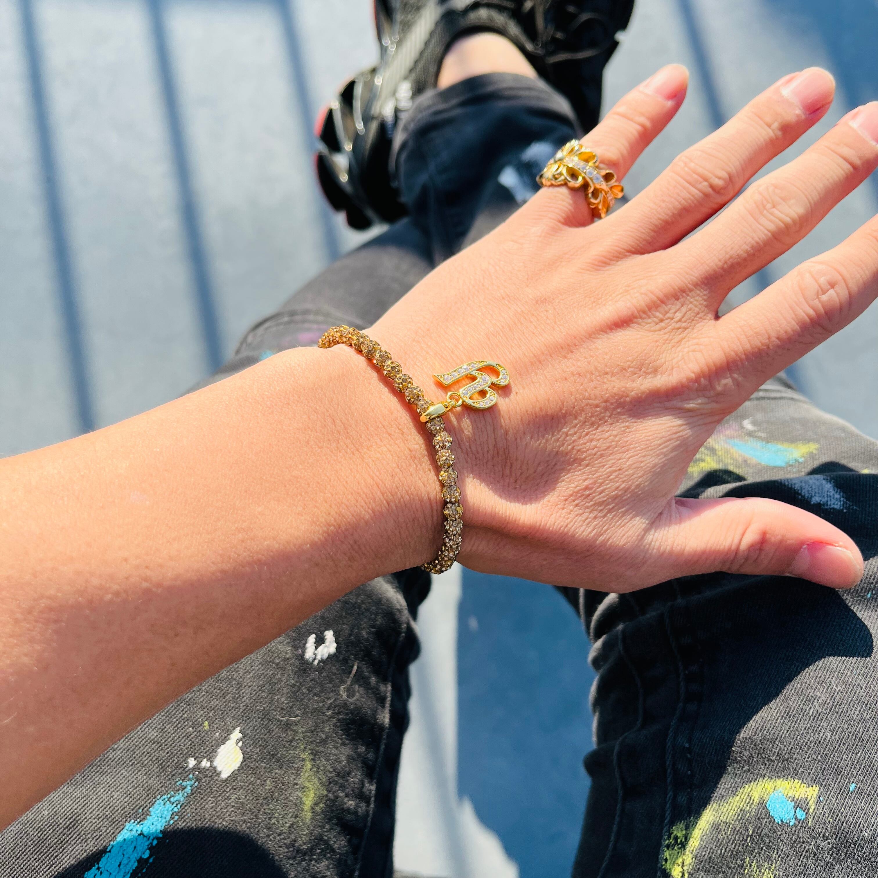 金属アレルギー対応イニシャル「Y」ブレスレットゴールド