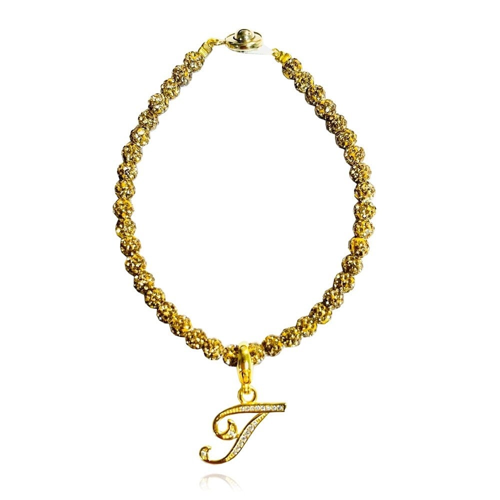 金属アレルギー対応イニシャル「T」ブレスレットゴールド