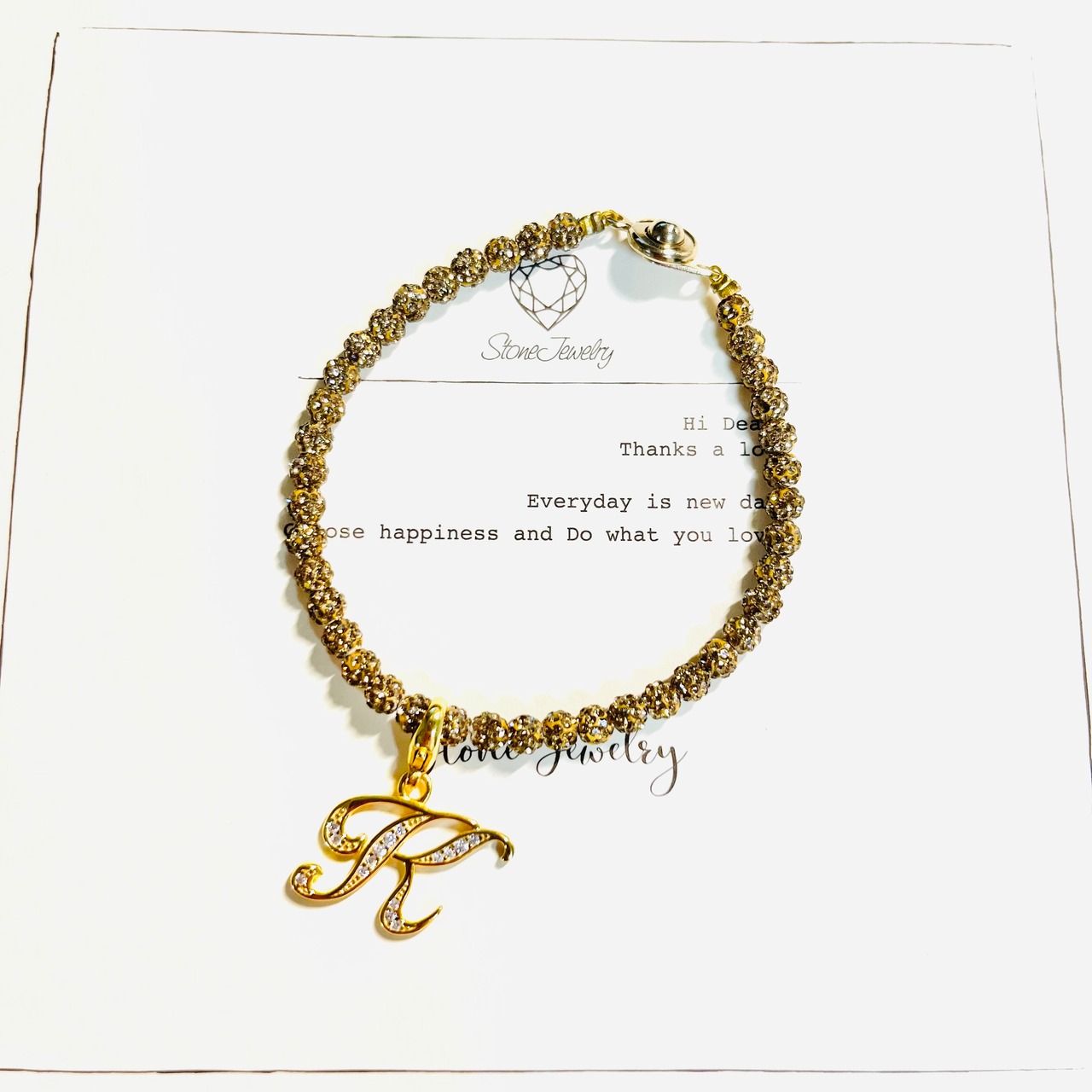 金属アレルギー対応イニシャル「K」ブレスレットゴールド