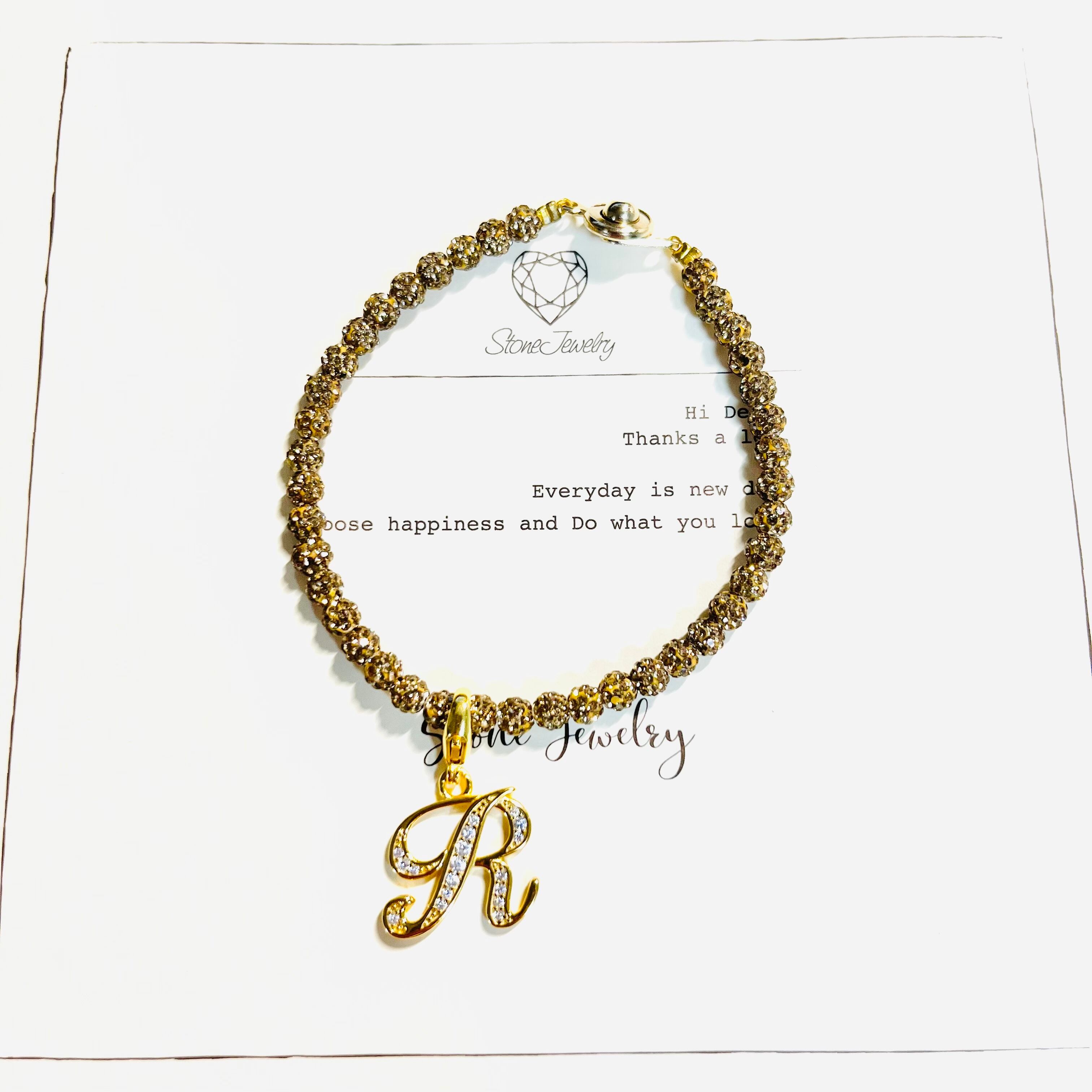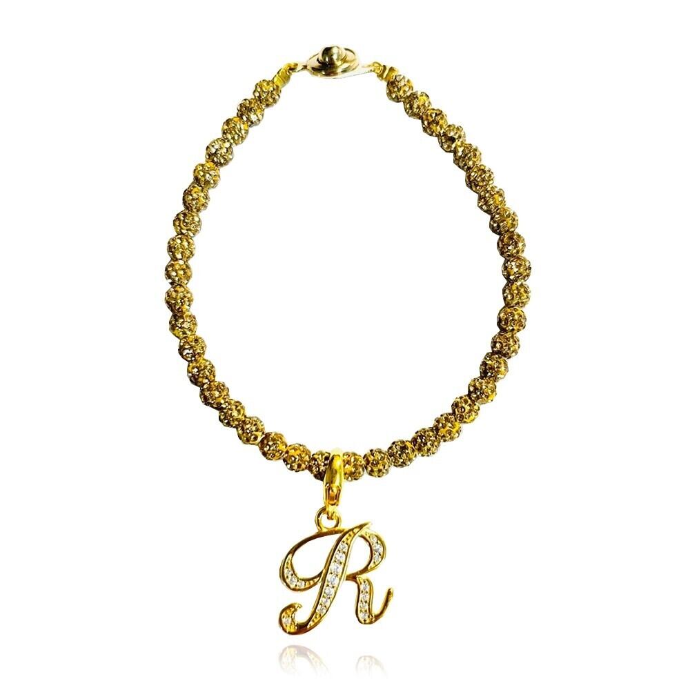 金属アレルギー対応イニシャル「R」ブレスレットゴールド