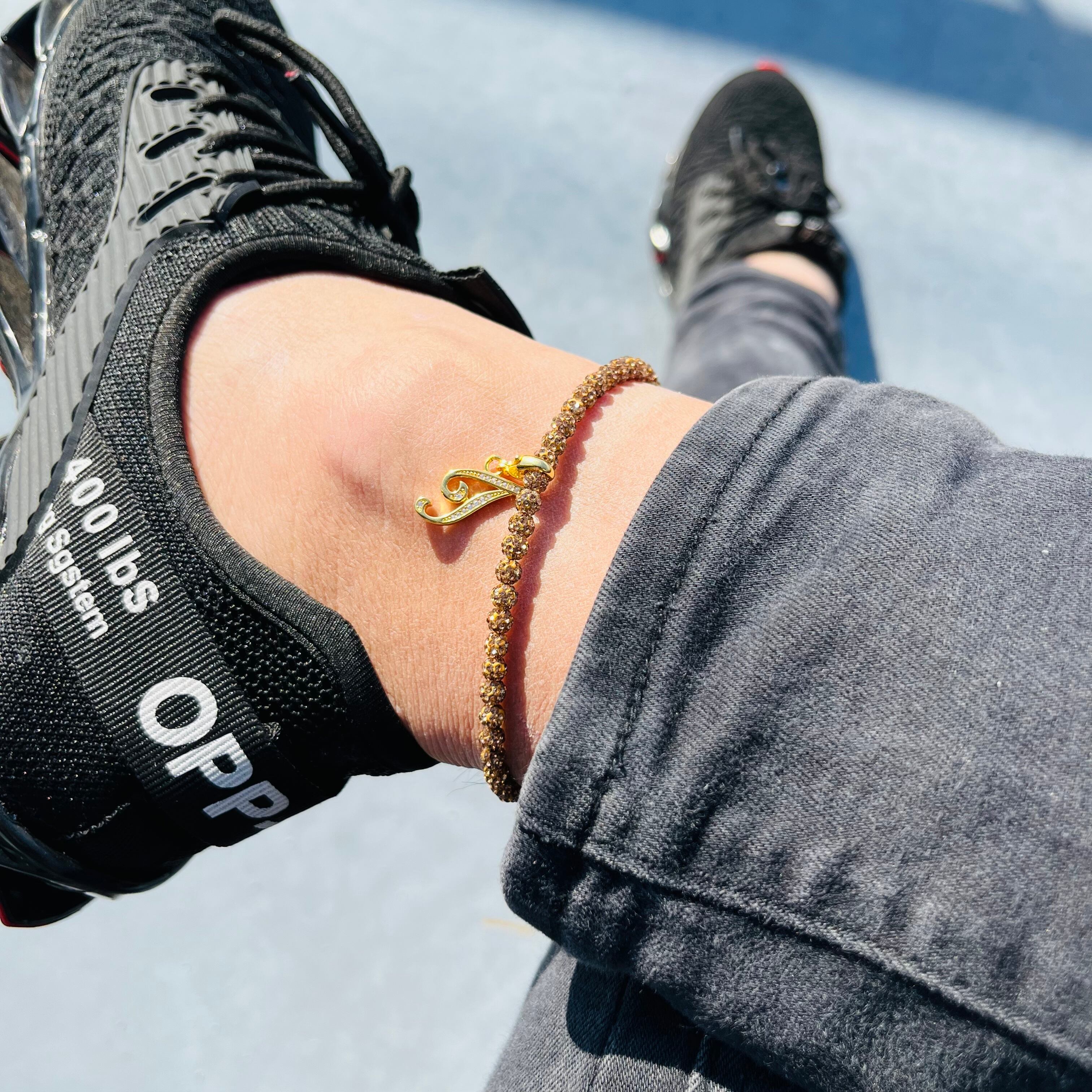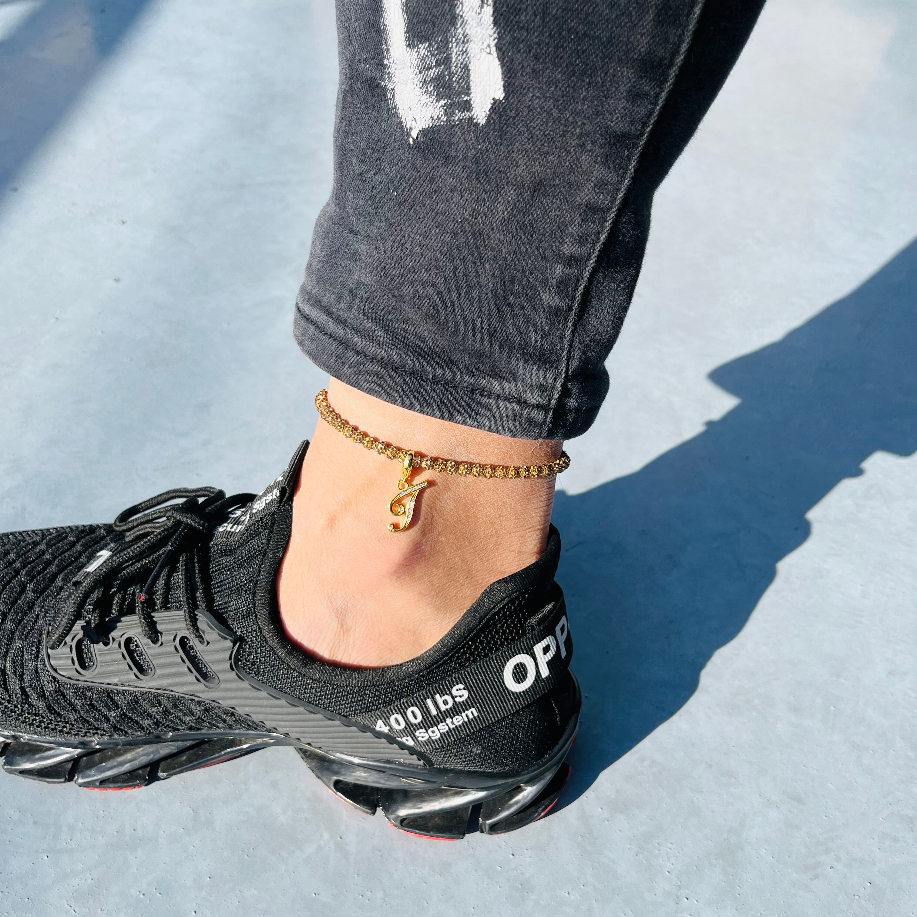 金属アレルギー対応イニシャル「T」アンクレットゴールド