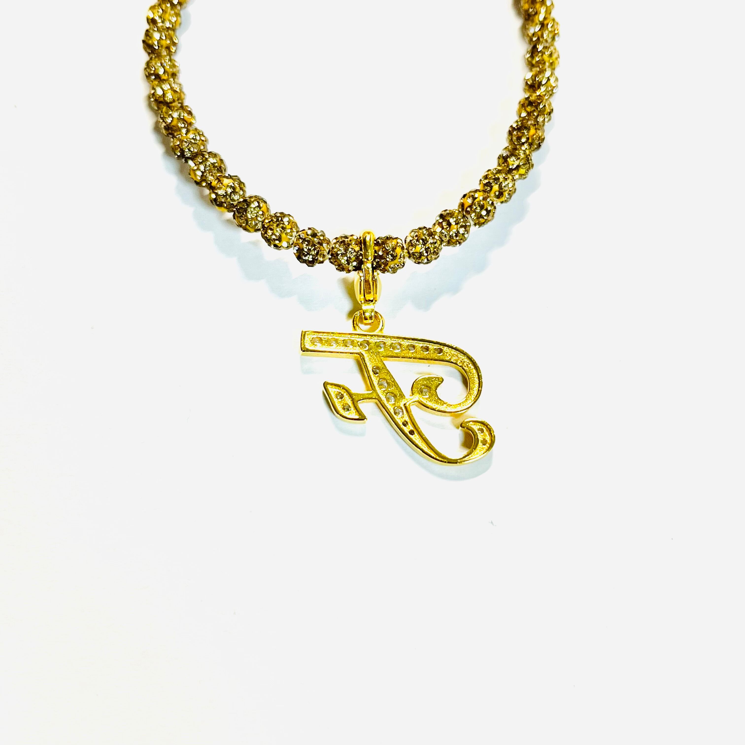金属アレルギー対応イニシャル「F」アンクレットゴールド