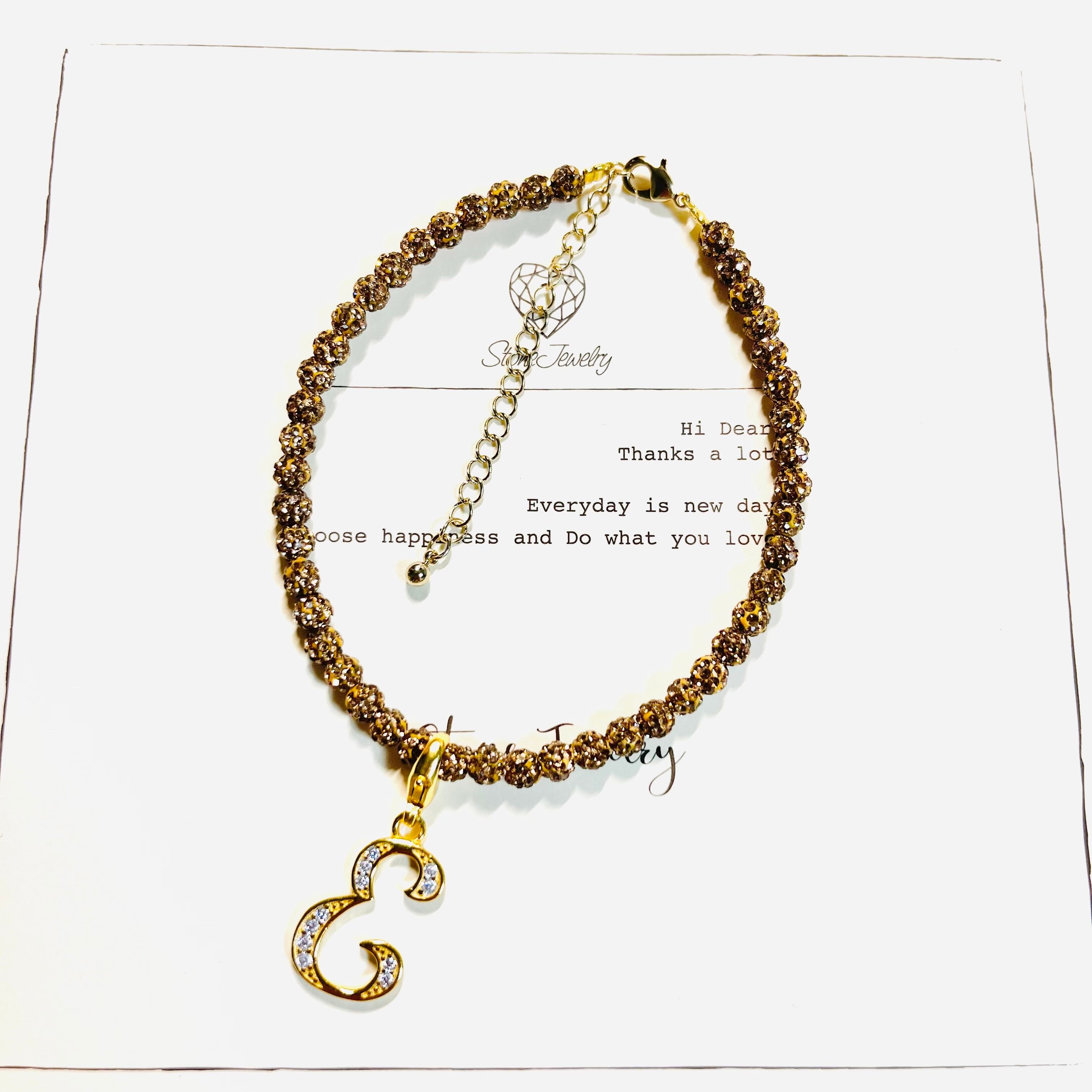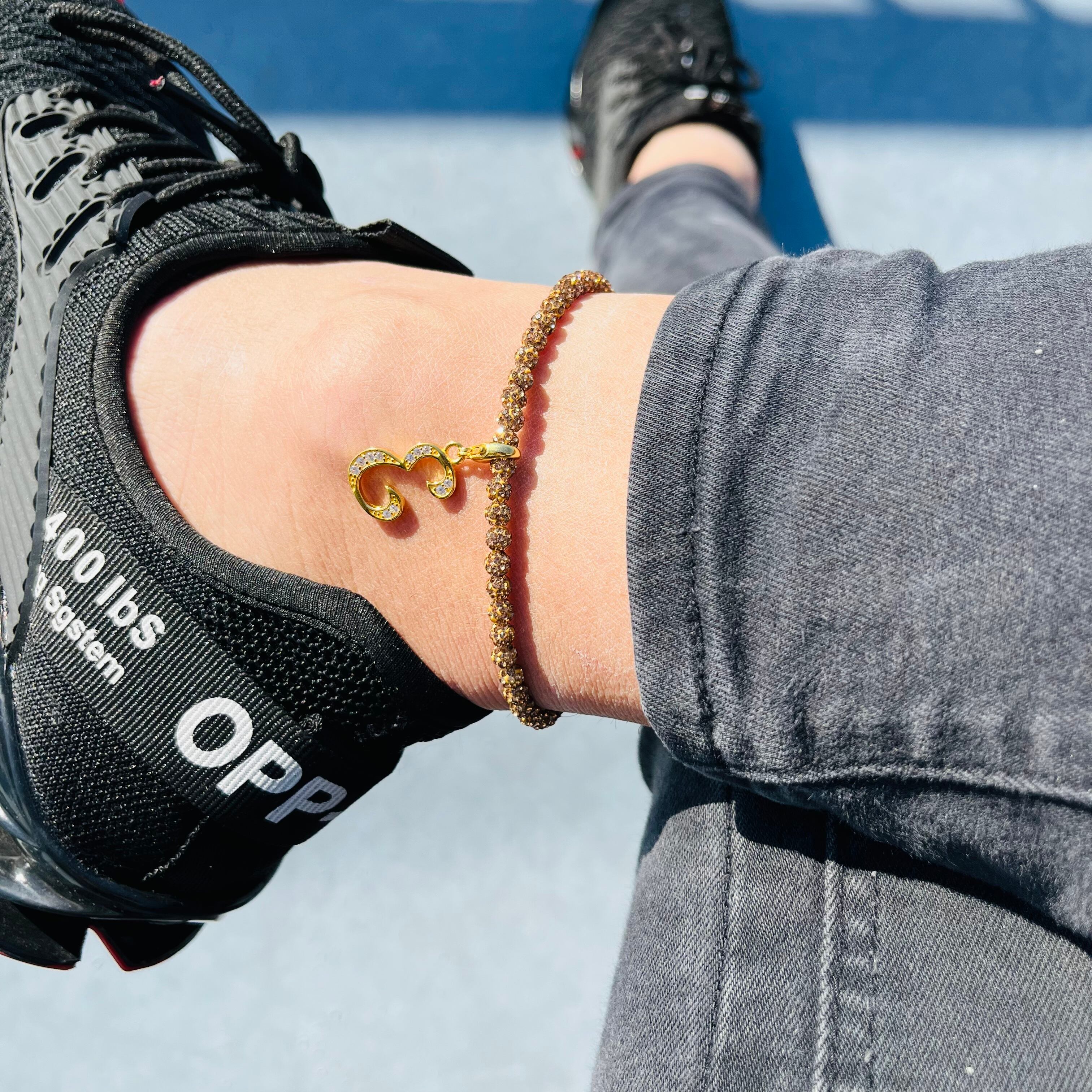 金属アレルギー対応イニシャル「E」アンクレットゴールド