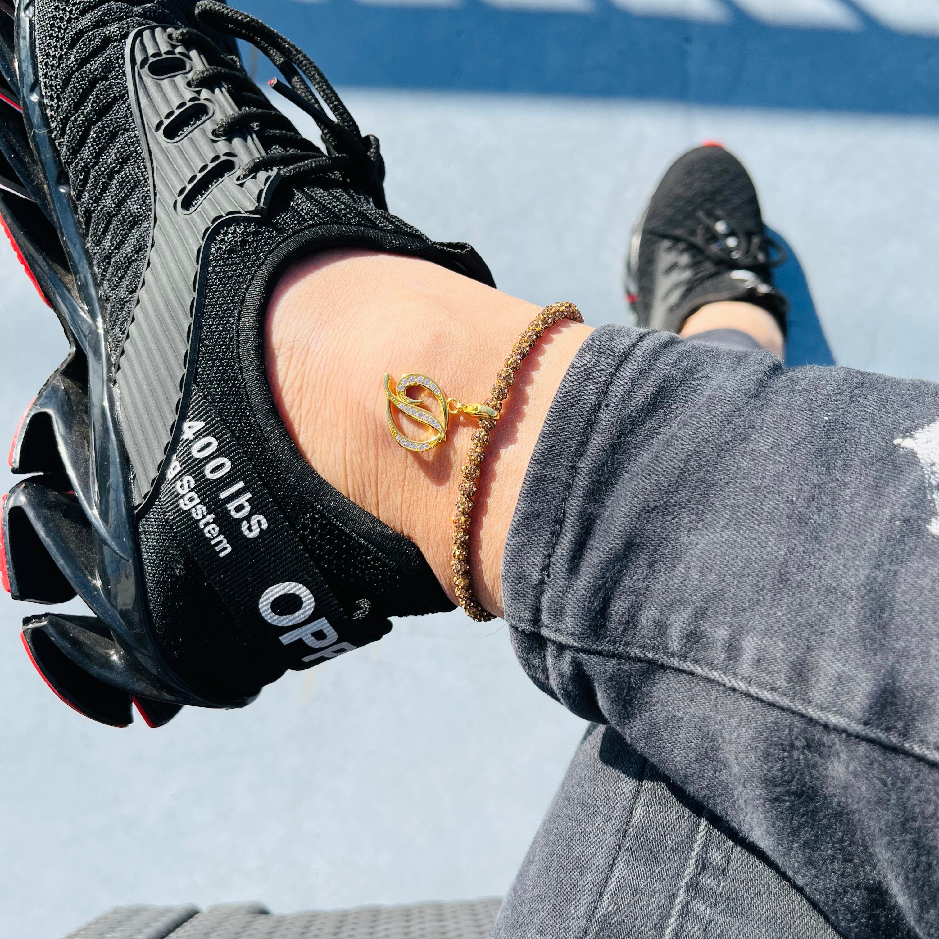 金属アレルギー対応イニシャル「D」アンクレットゴールド