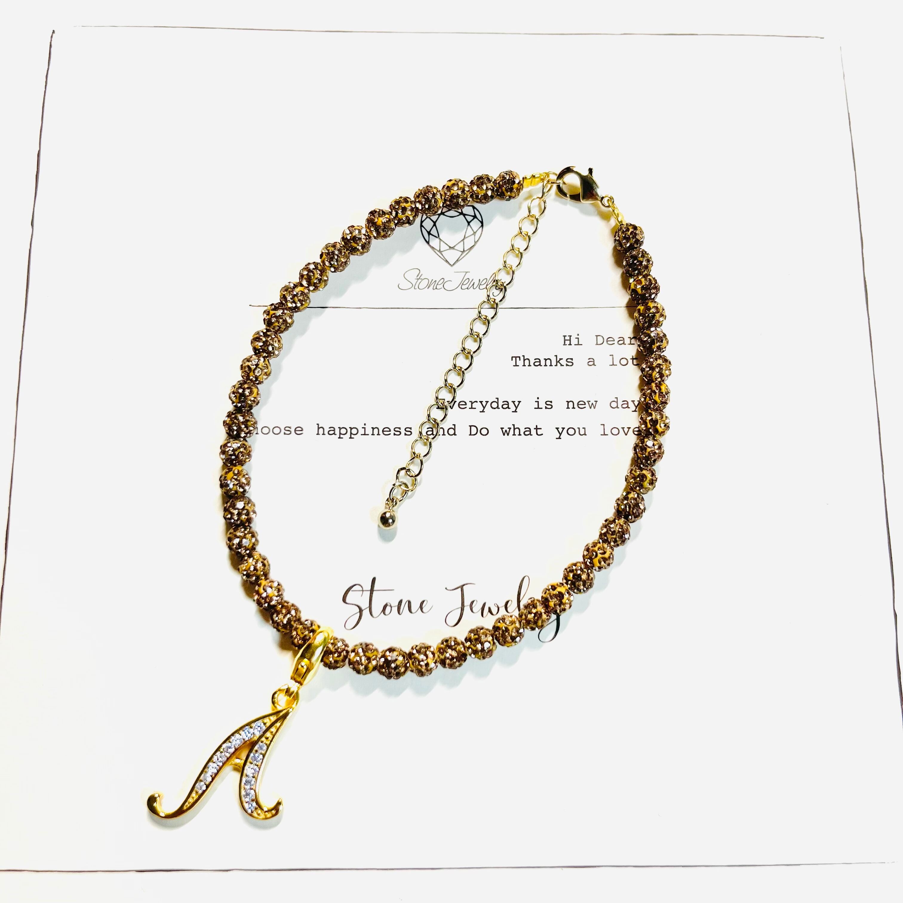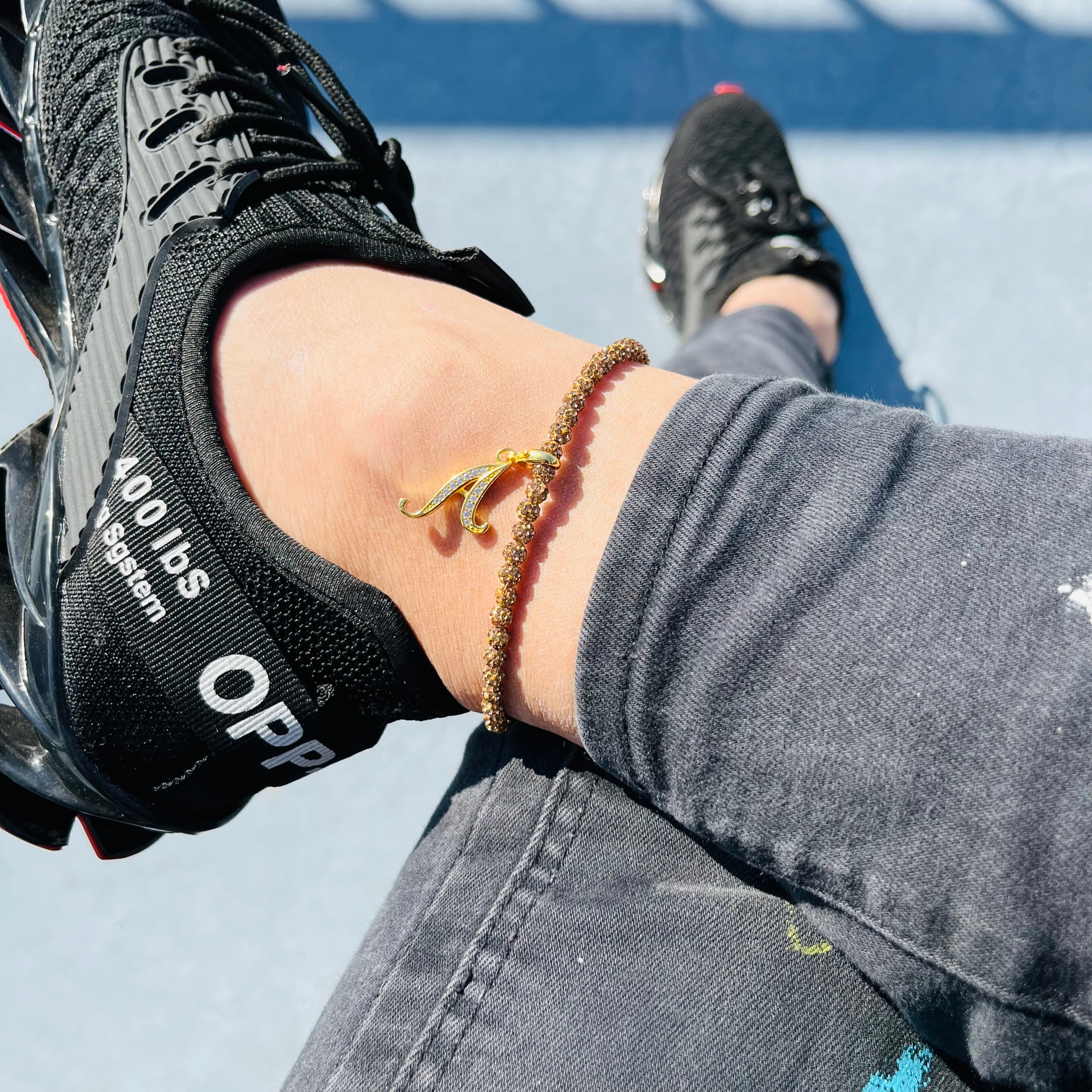 金属アレルギー対応イニシャル「A」アンクレットゴールド