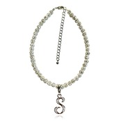 金属アレルギー対応イニシャル「S」アンクレットホワイト