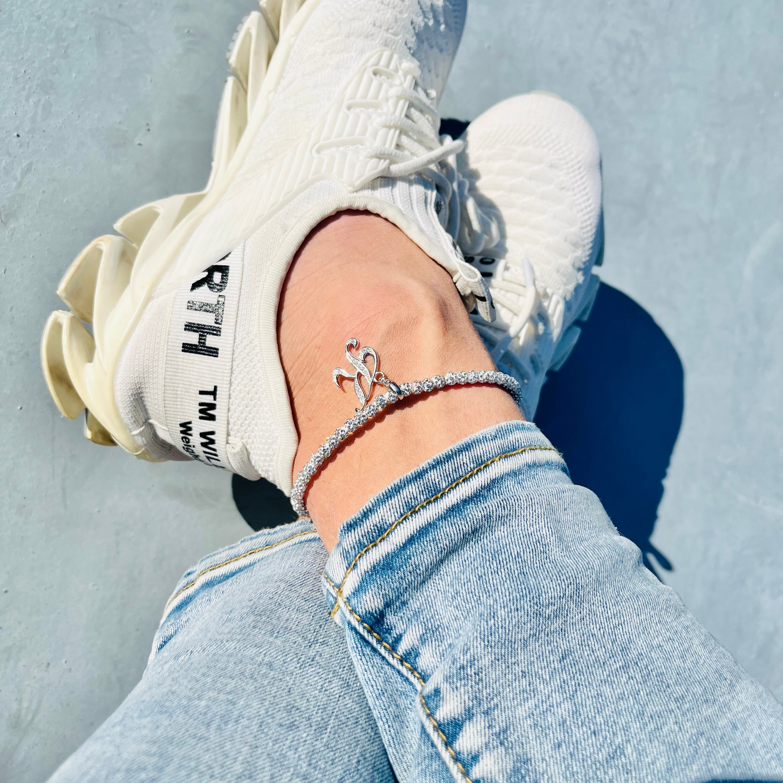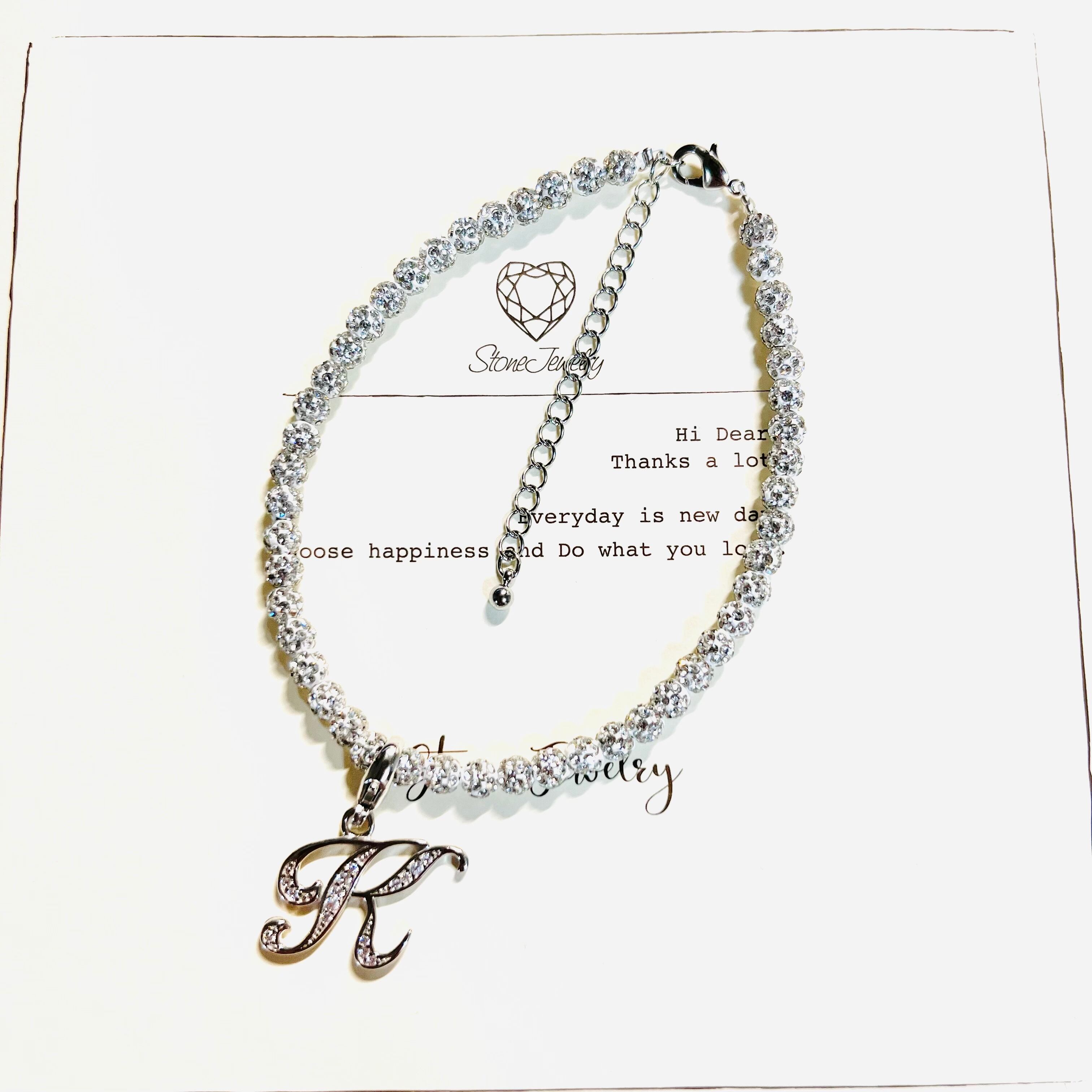 金属アレルギー対応イニシャル「K」アンクレットホワイト