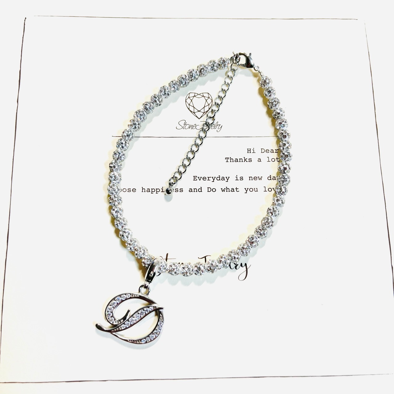金属アレルギー対応イニシャル「D」アンクレットホワイト