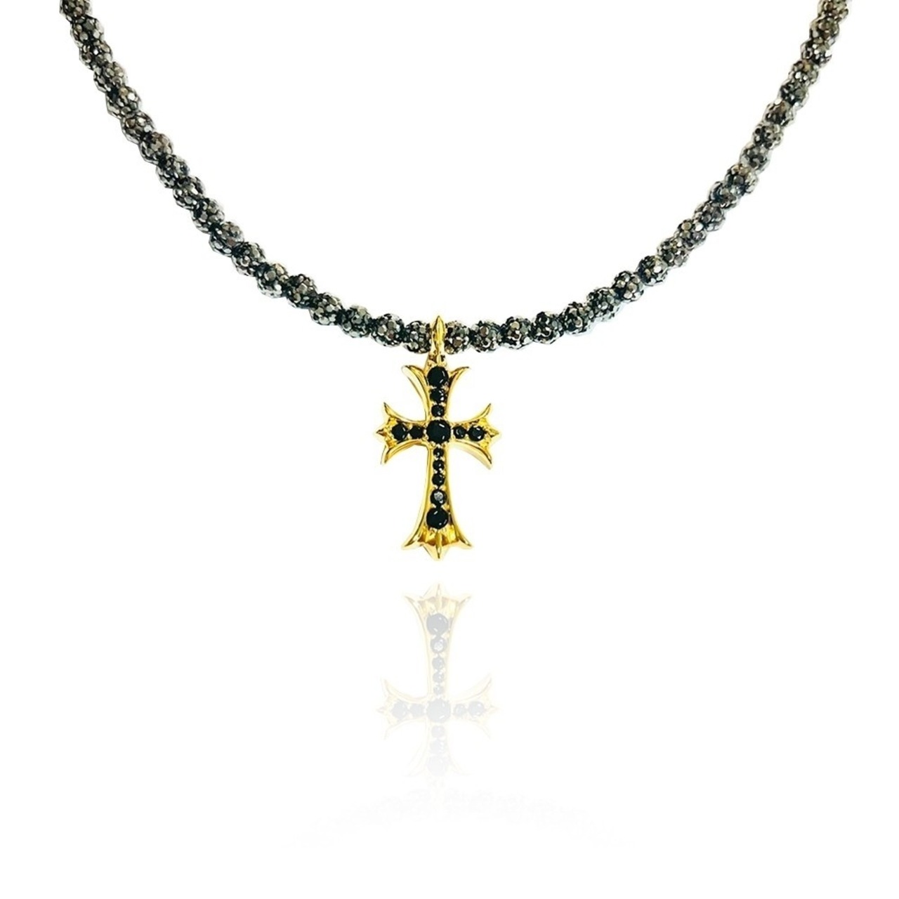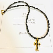 金属アレルギー対応クロスダイヤモンドブラックネックレス黒石