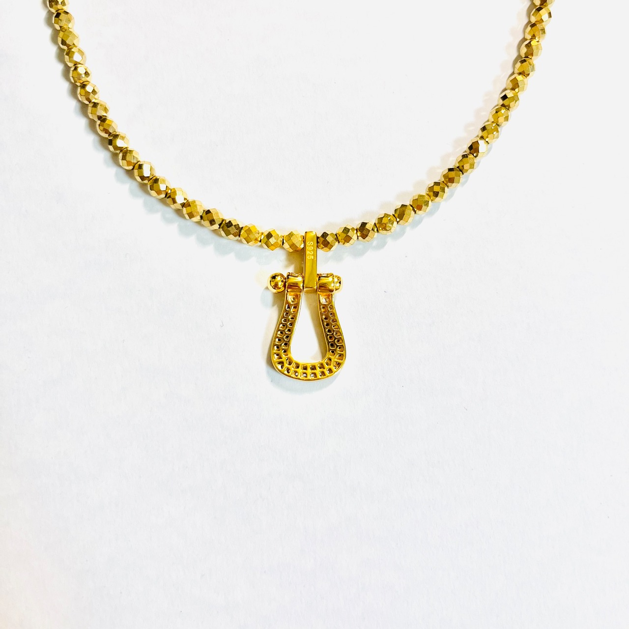 silver925のヒヅメトップを合わせたnecklaceです☆ヘマタイトは鉱石のため劣化する事なく半永久、長くご愛用いただけて肩こり改善、体調バランスを整える健康アイテムとして知られています