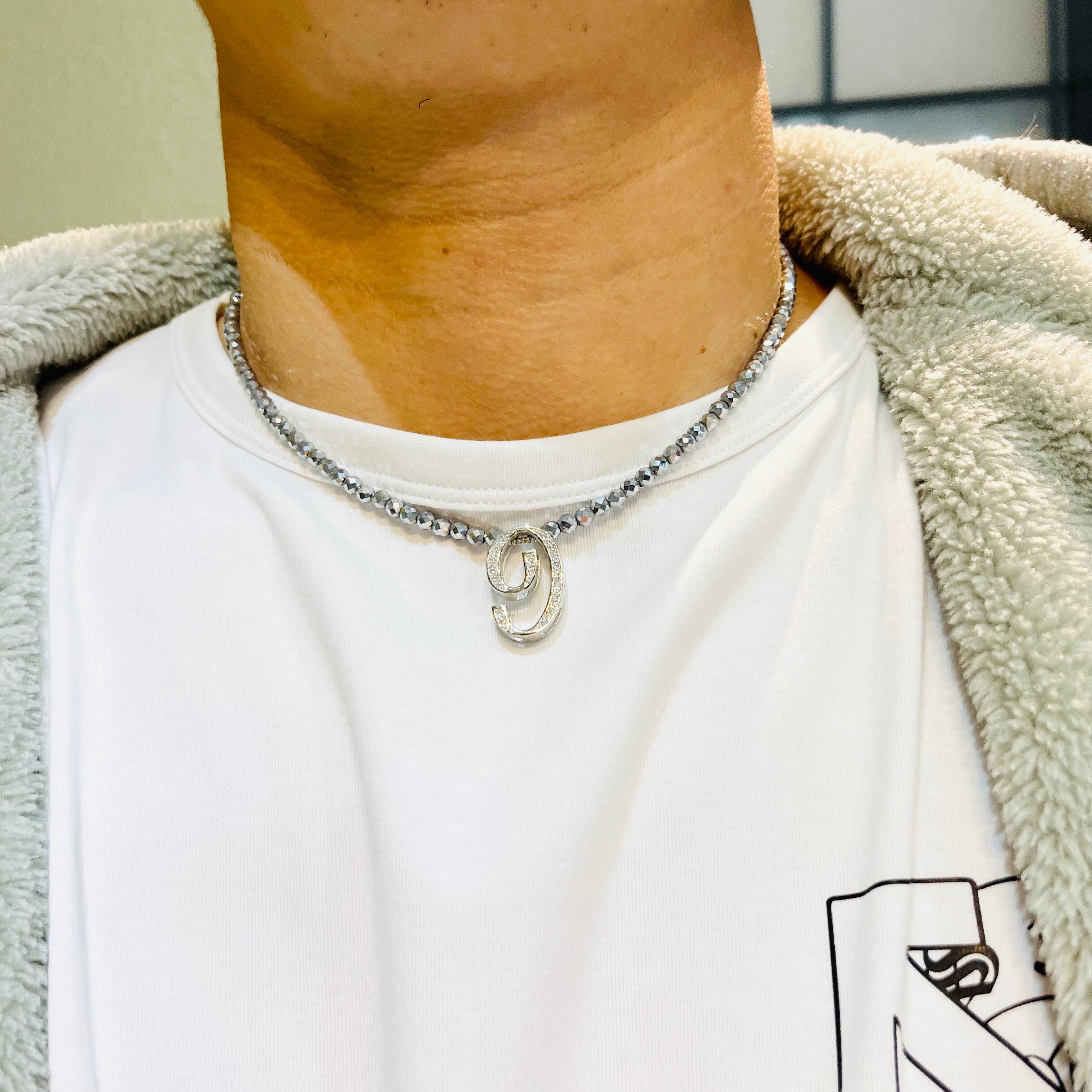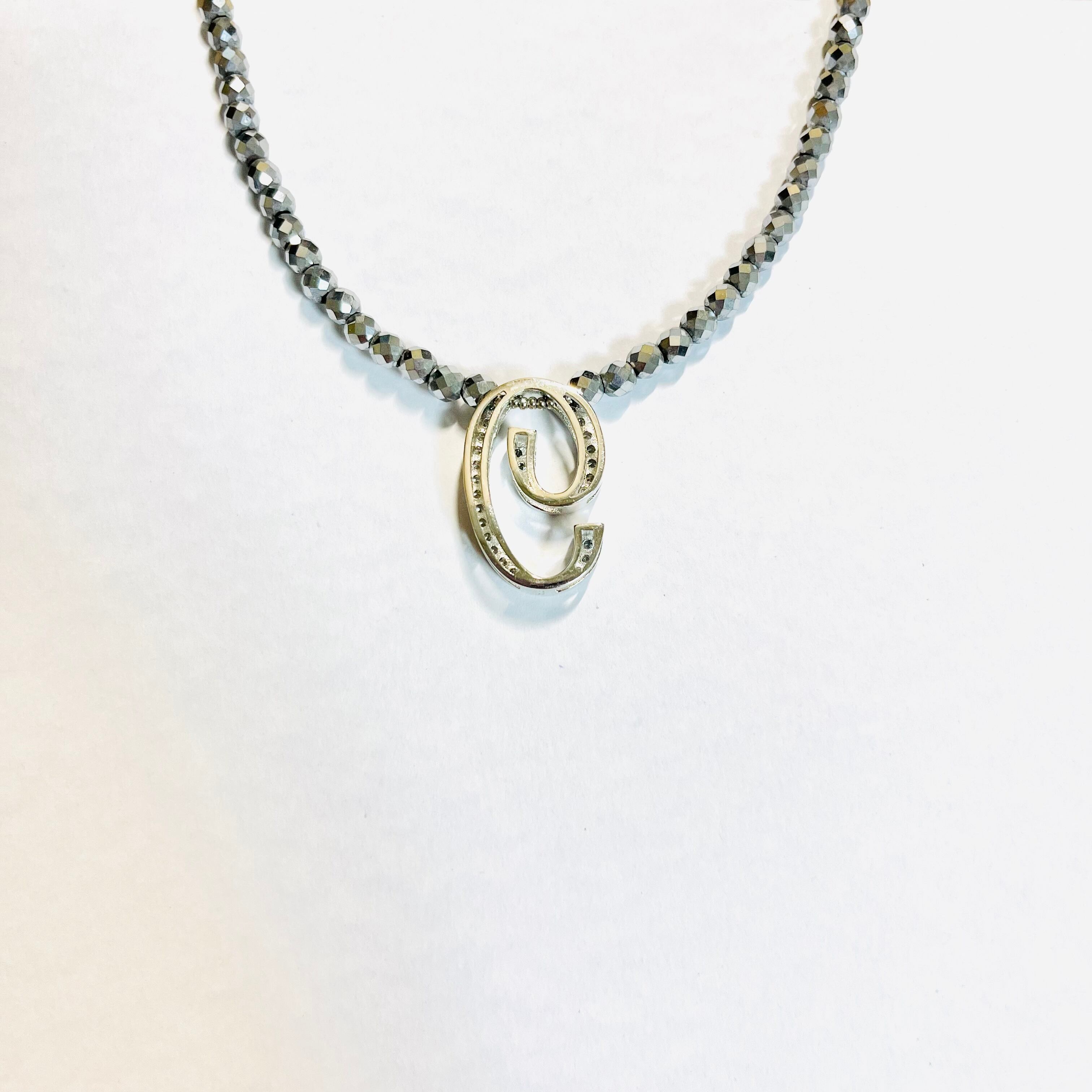 ヘマタイト「9」ネックレス【ホワイトシルバー】