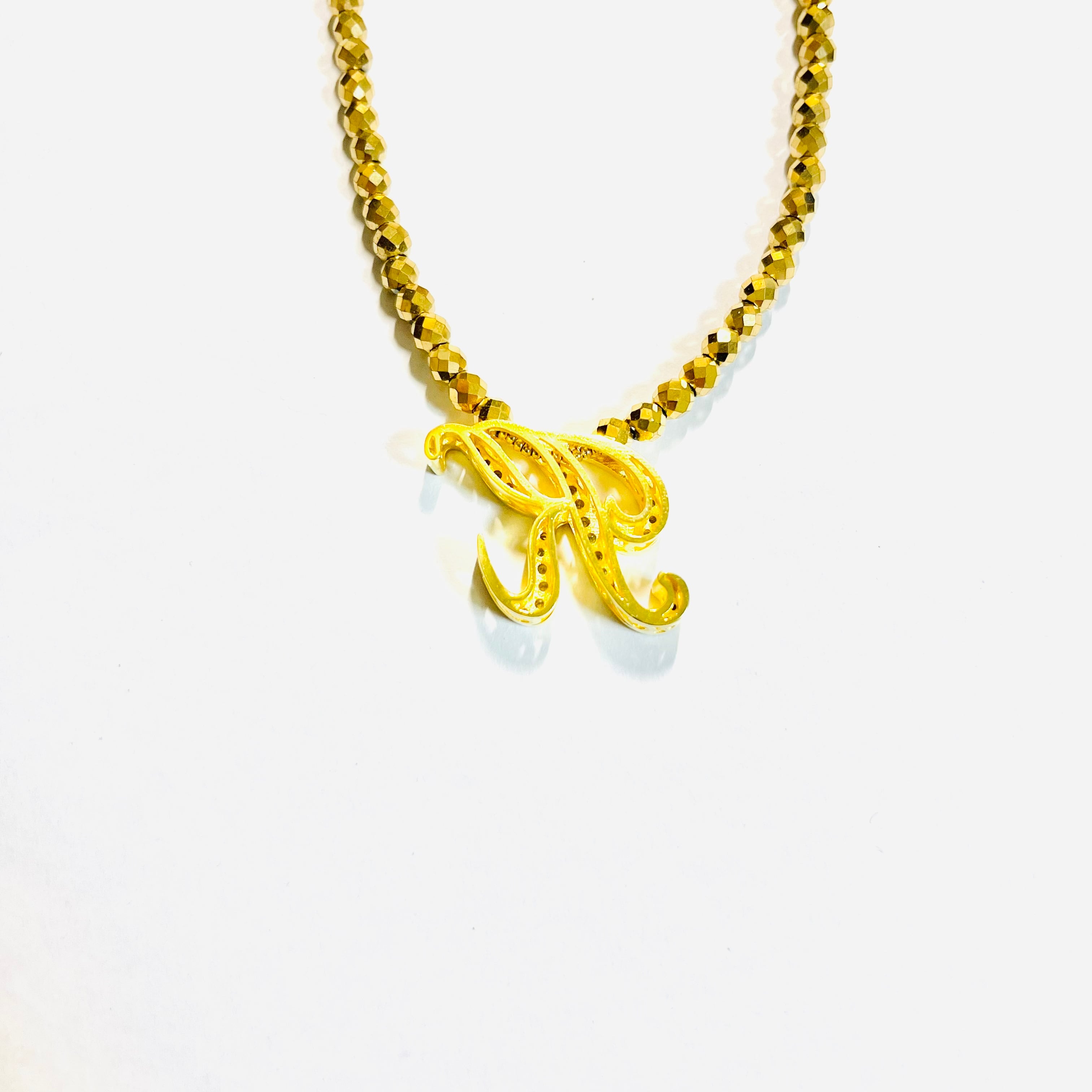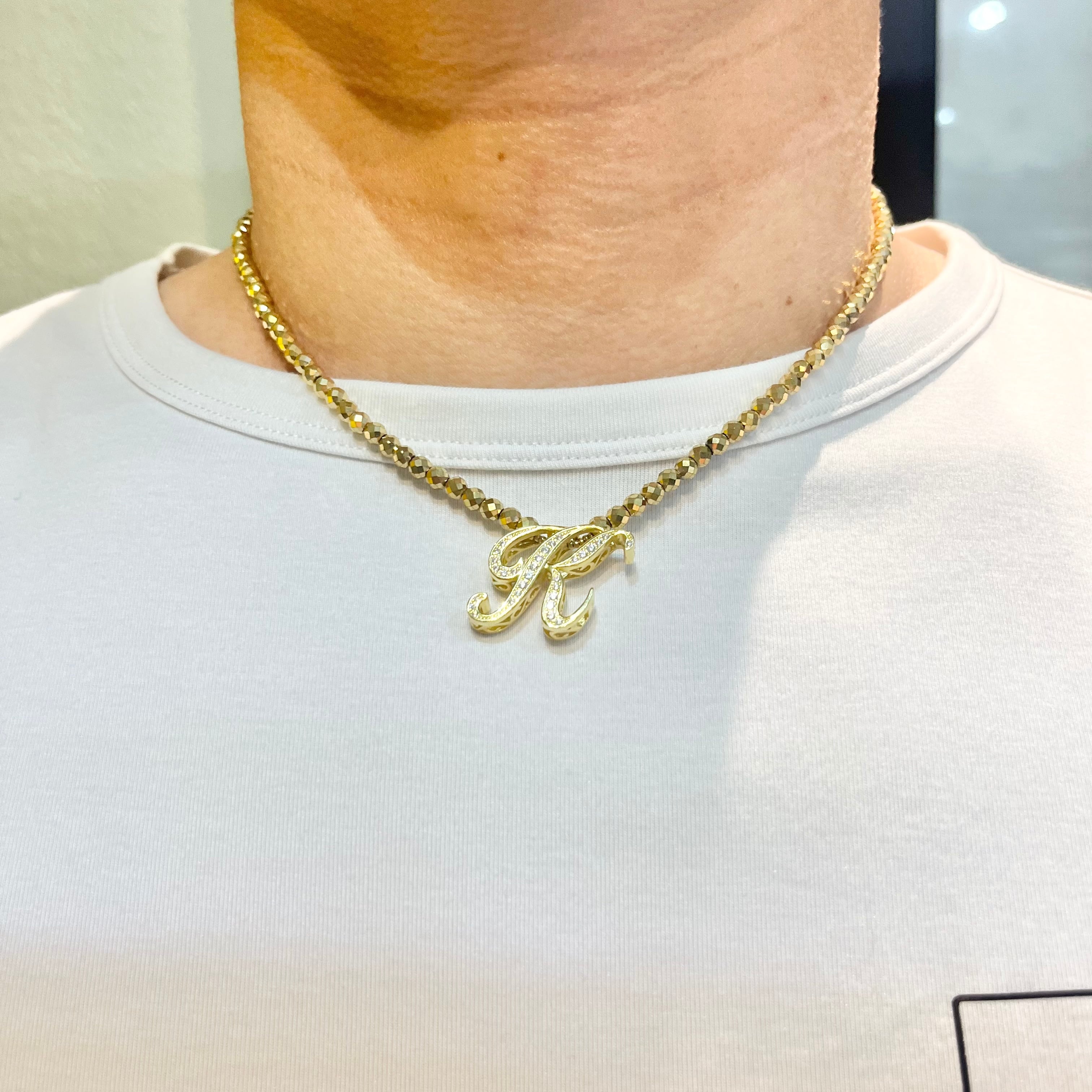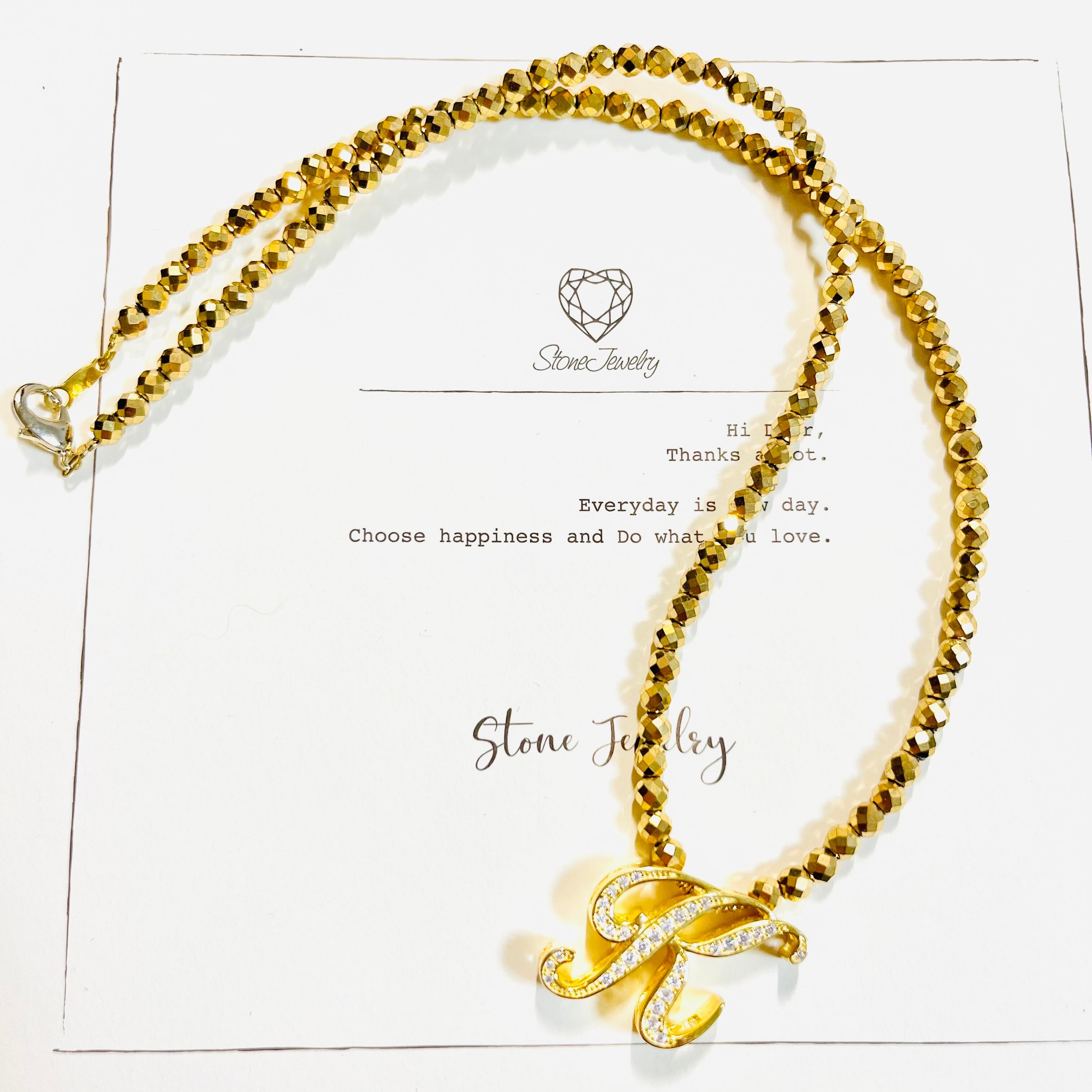 silver925のイニシャルトップを合わせたnecklaceです☆ヘマタイトは鉱石のため劣化する事なく半永久、長くご愛用いただけて肩こり改善、体調バランスを整える健康アイテムとして知られています