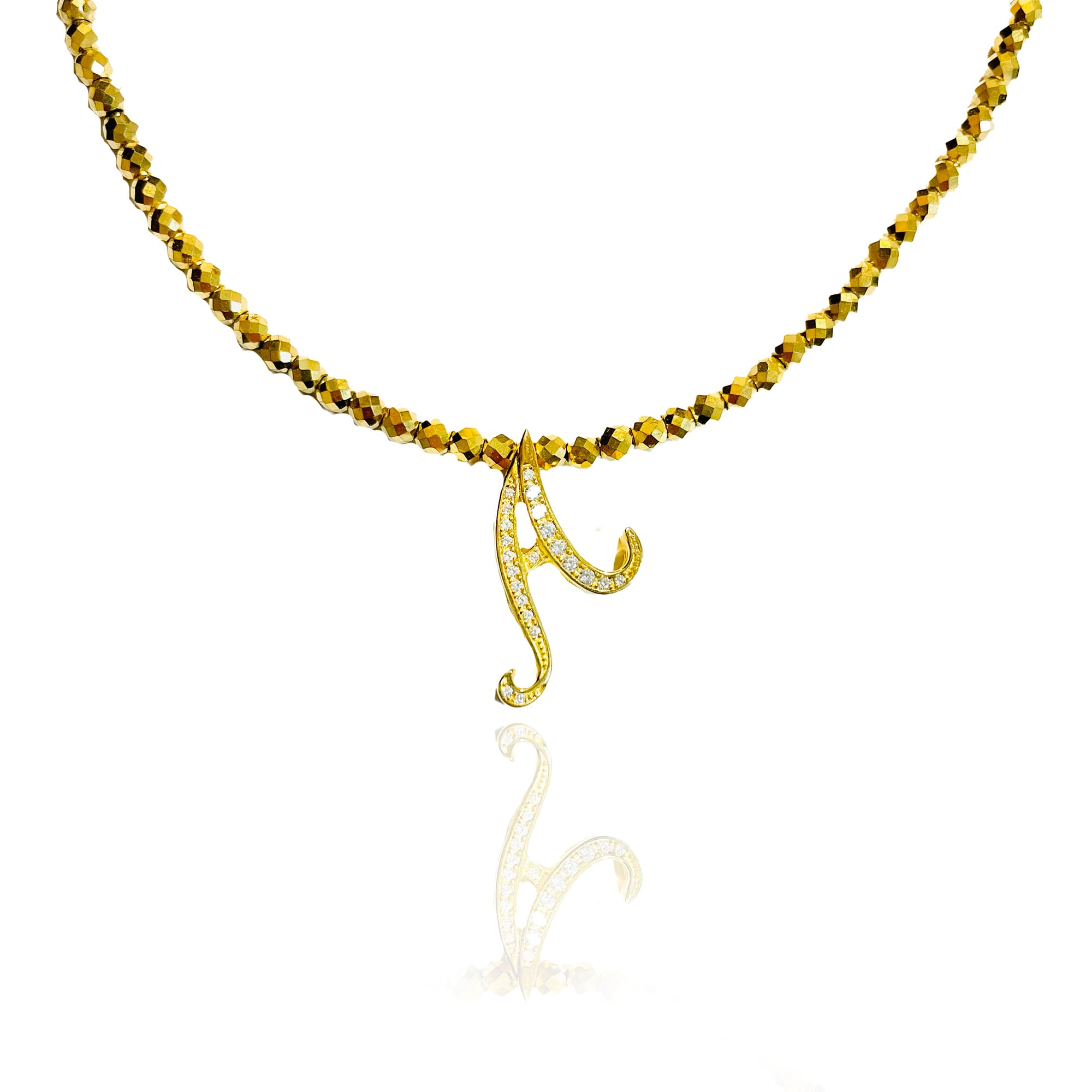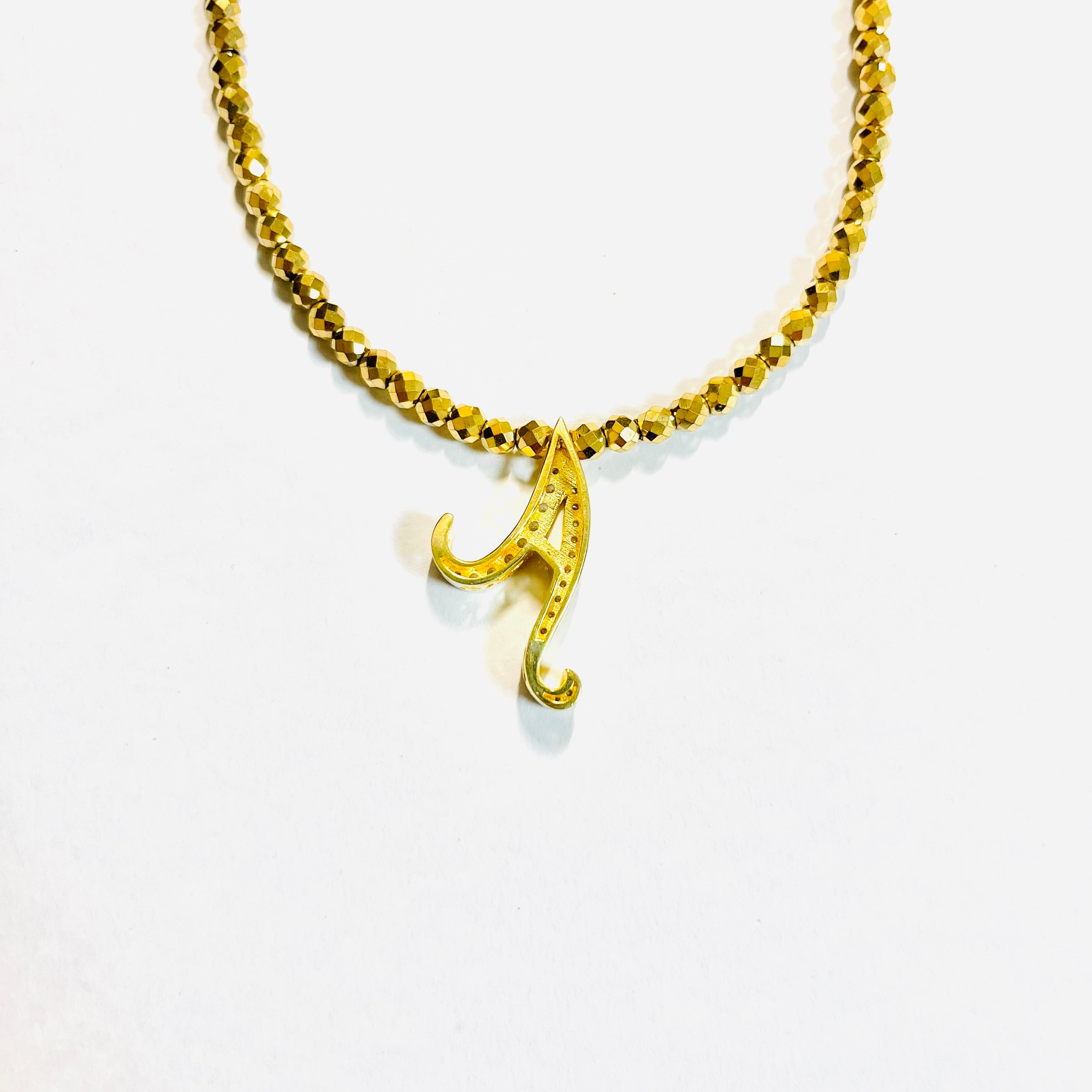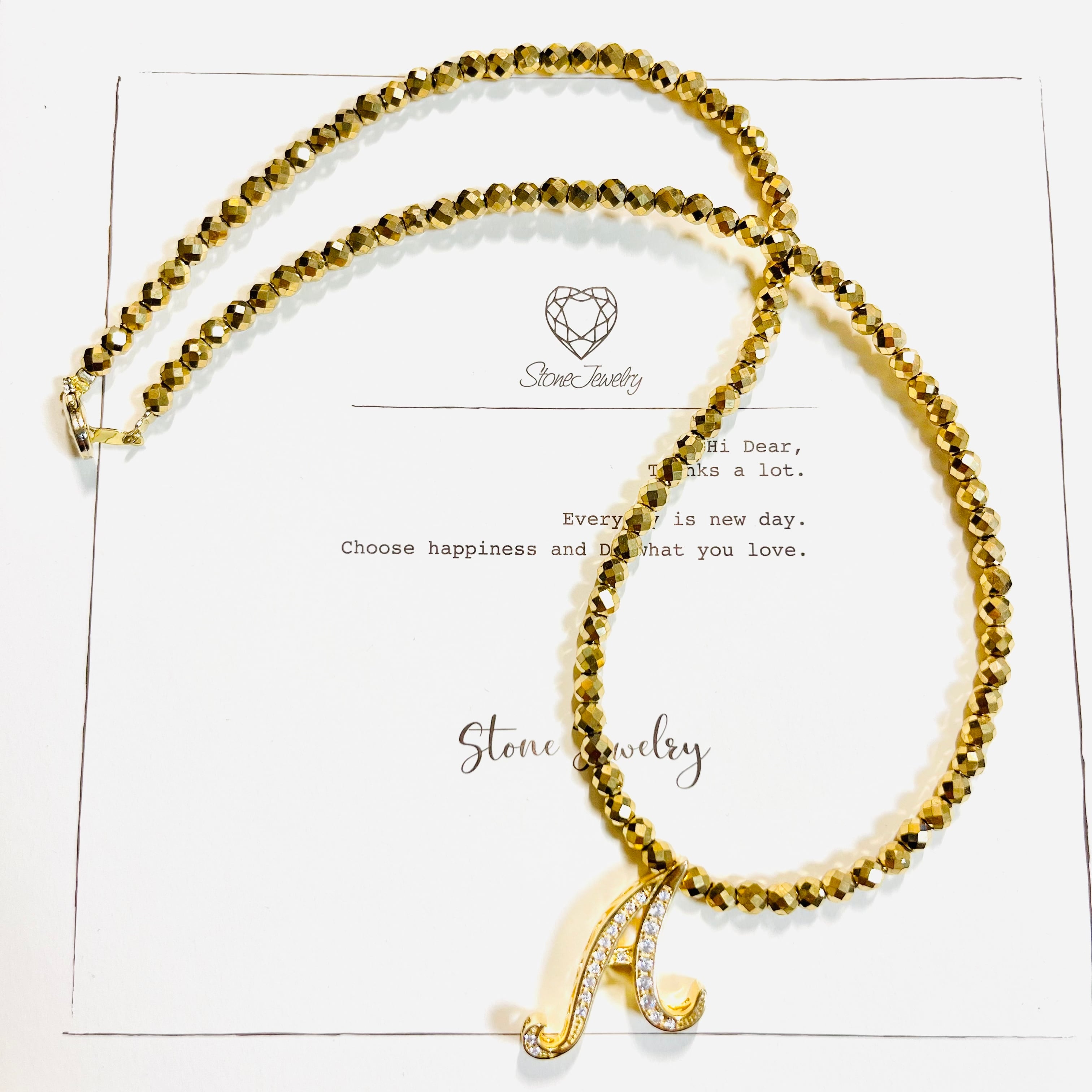 silver925のイニシャルトップを合わせたnecklaceです☆ヘマタイトは鉱石のため劣化する事なく半永久、長くご愛用いただけて肩こり改善、体調バランスを整える健康アイテムとして知られています