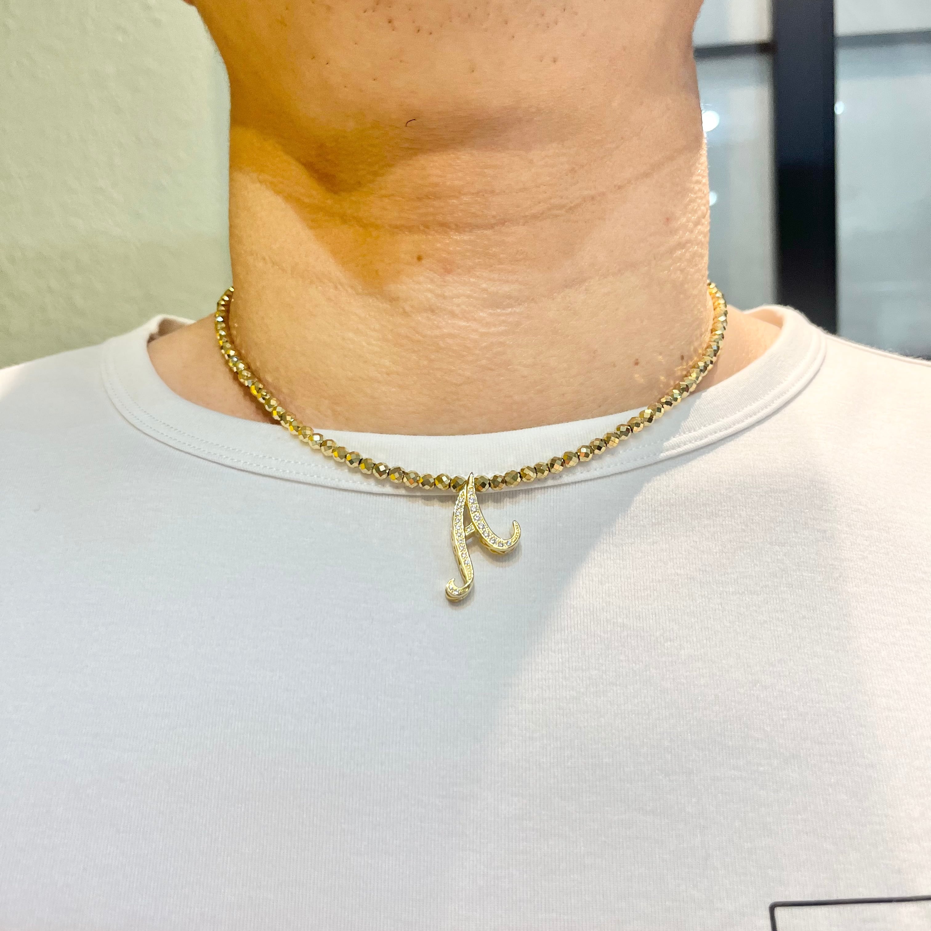 silver925のイニシャルトップを合わせたnecklaceです☆ヘマタイトは鉱石のため劣化する事なく半永久、長くご愛用いただけて肩こり改善、体調バランスを整える健康アイテムとして知られています