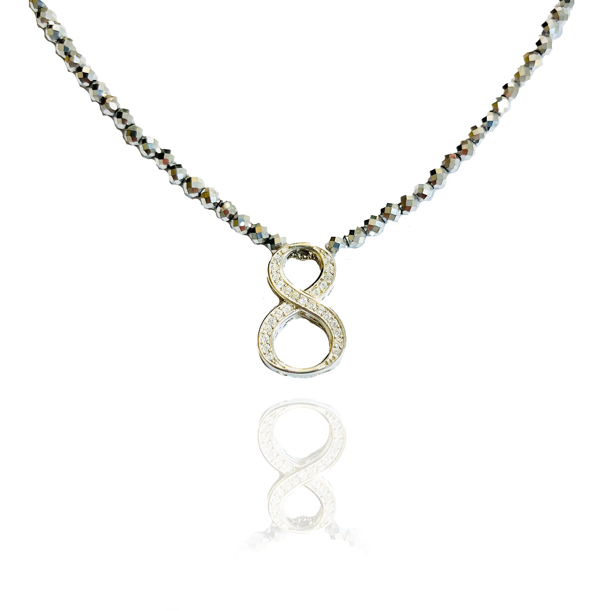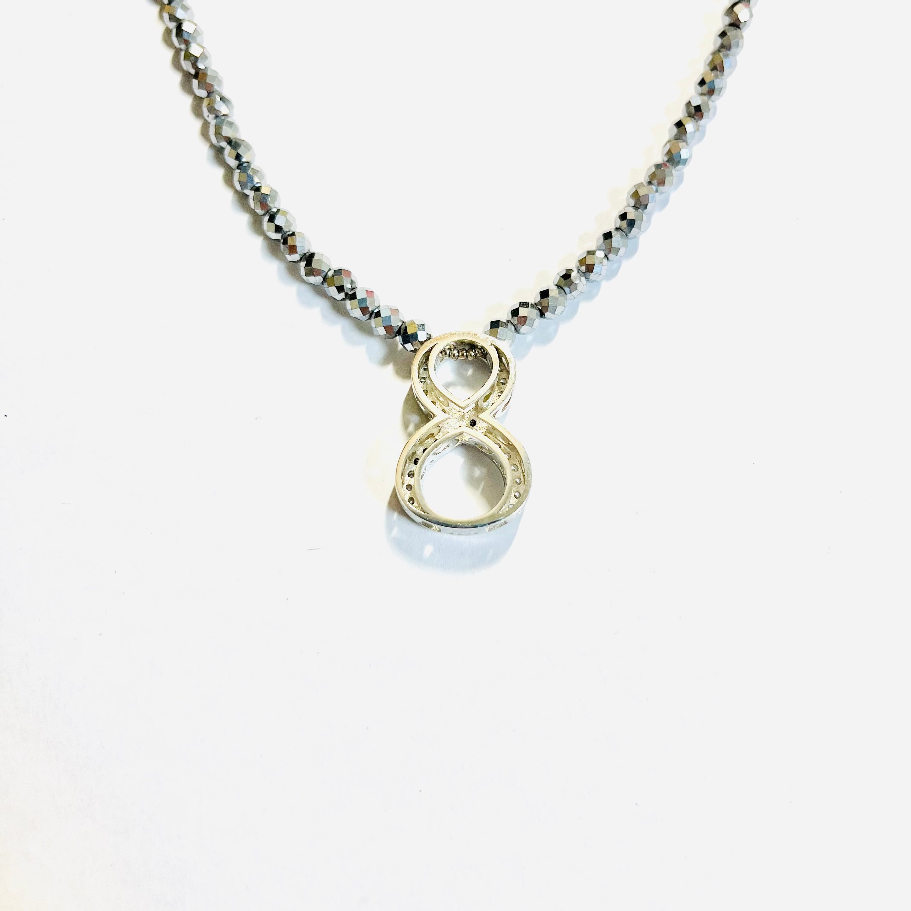 silver925のナンバートップを合わせたnecklaceです☆ヘマタイトは鉱石のため劣化する事なく半永久、長くご愛用いただけて肩こり改善、体調バランスを整える健康アイテムとして知られています