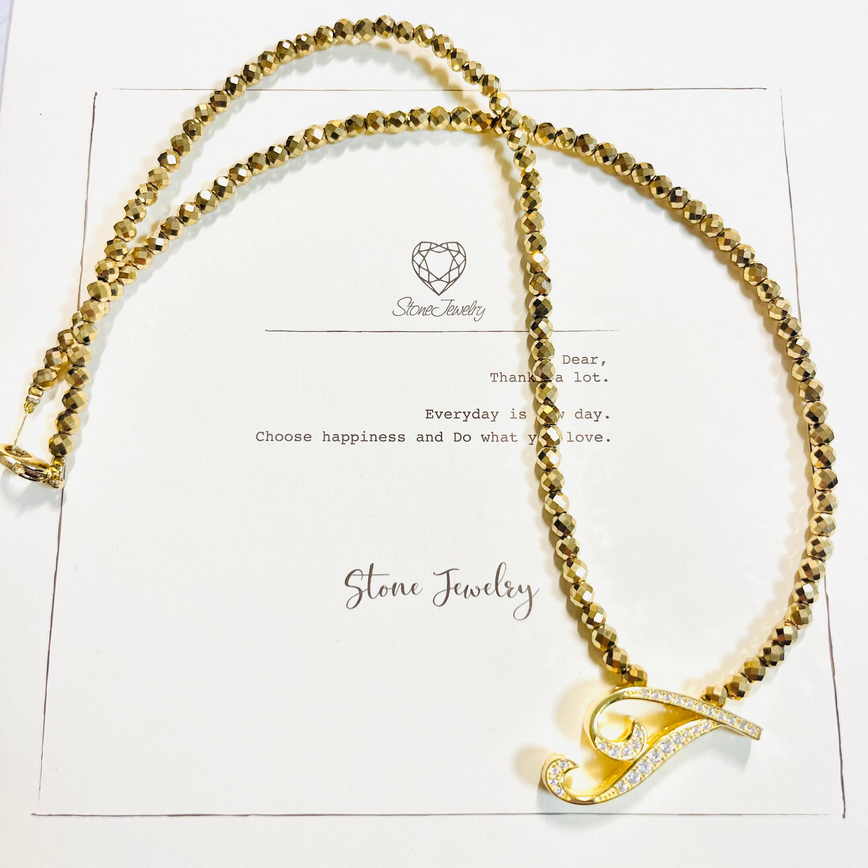silver925のイニシャルトップを合わせたnecklaceです☆ヘマタイトは鉱石のため劣化する事なく半永久、長くご愛用いただけて肩こり改善、体調バランスを整える健康アイテムとして知られています