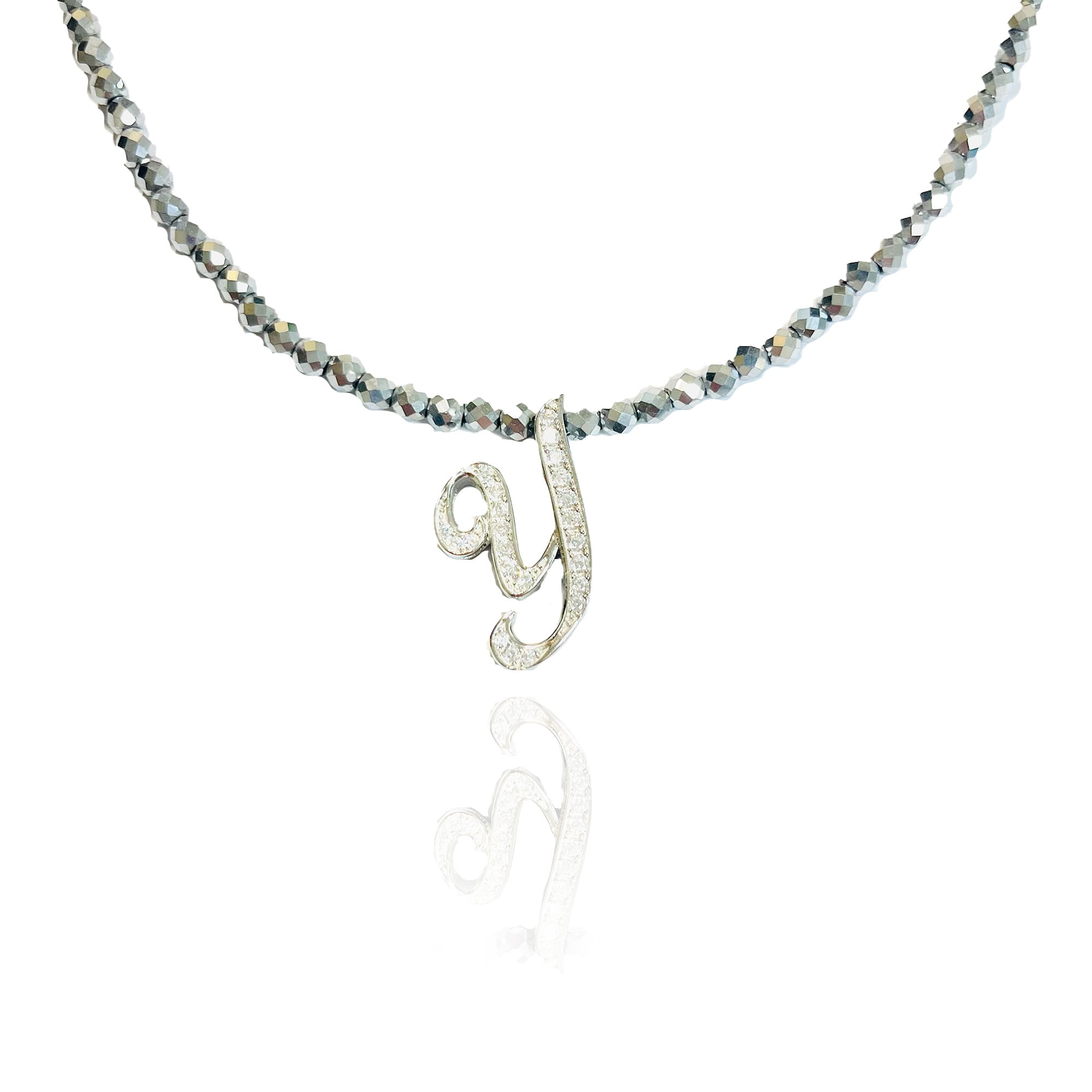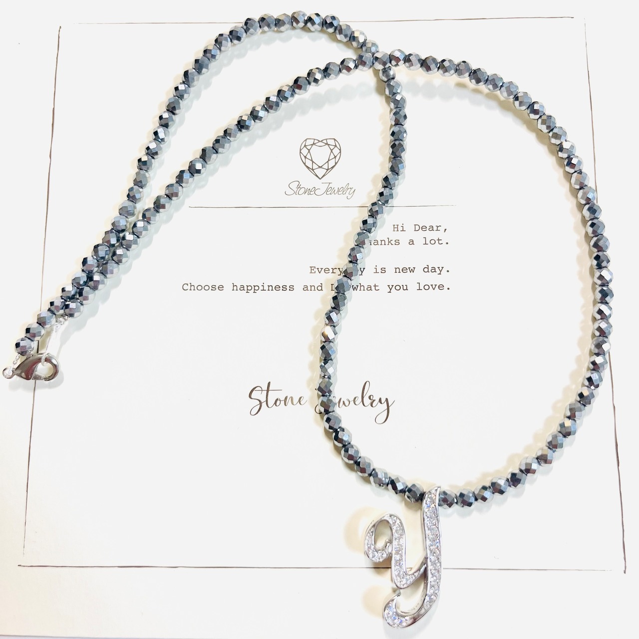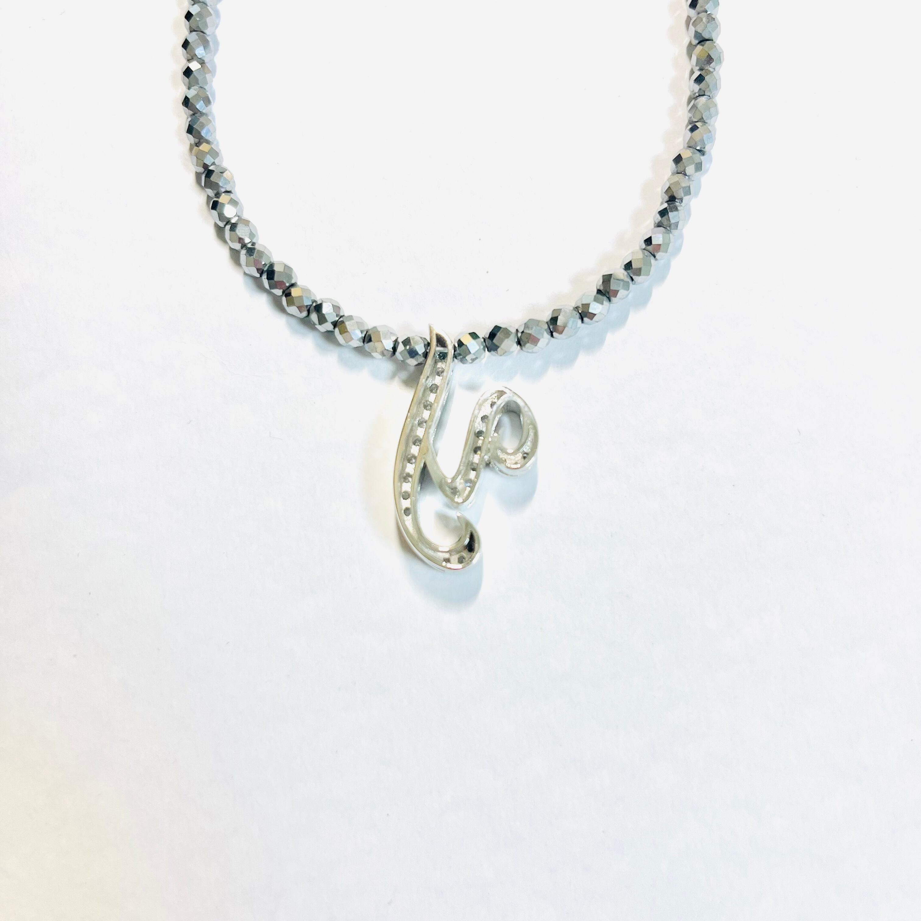 silver925のイニシャルトップを合わせたnecklaceです☆ヘマタイトは鉱石のため劣化する事なく半永久、長くご愛用いただけて肩こり改善、体調バランスを整える健康アイテムとして知られています