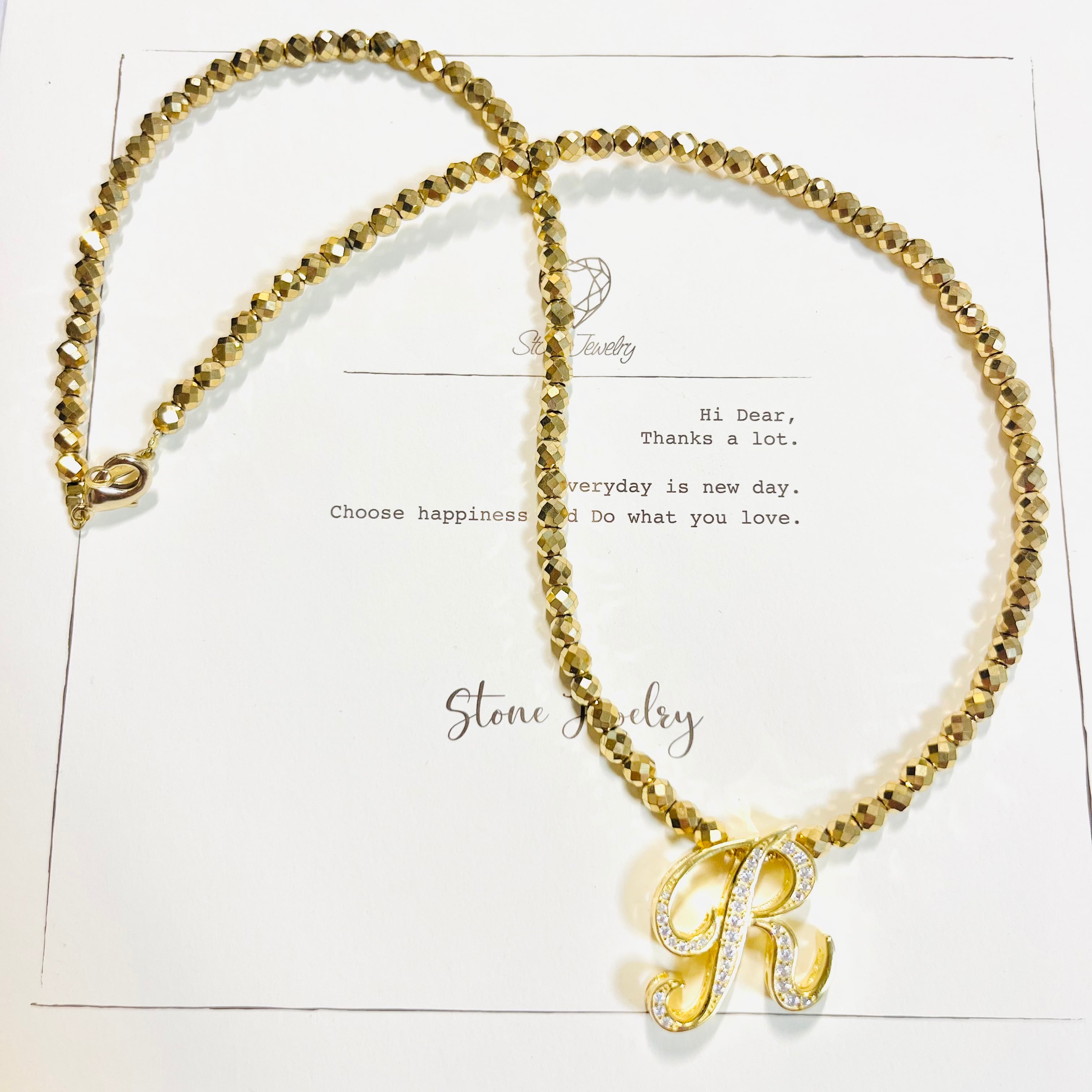 silver925のイニシャルトップを合わせたnecklaceです☆ヘマタイトは鉱石のため劣化する事なく半永久、長くご愛用いただけて肩こり改善、体調バランスを整える健康アイテムとして知られています