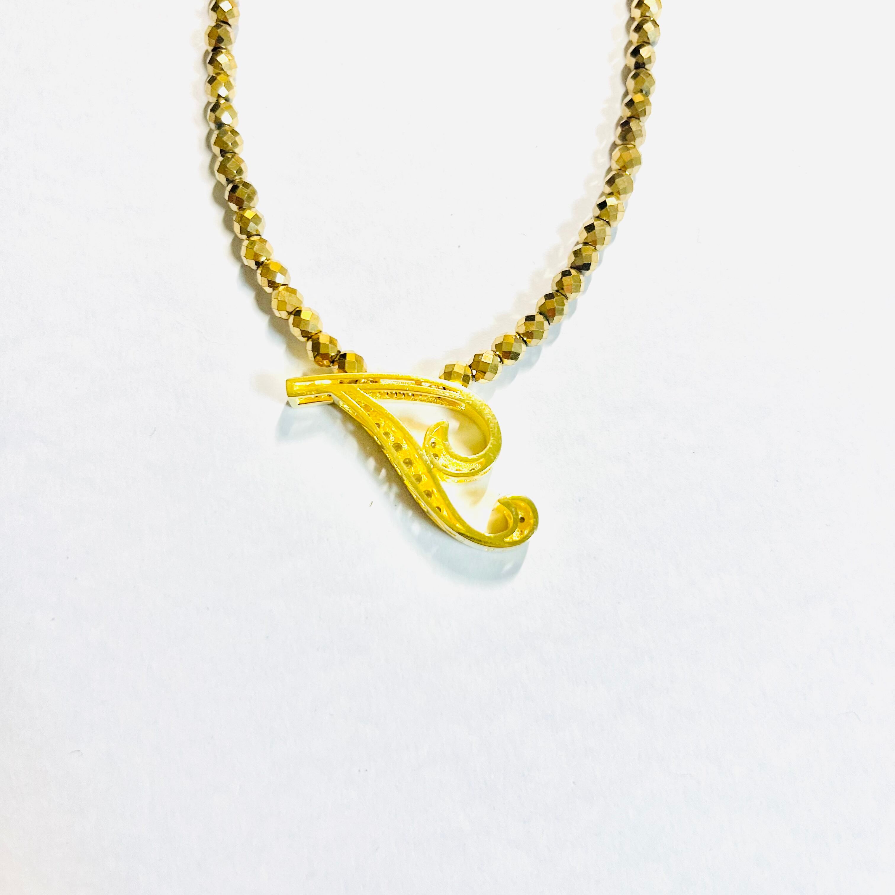 silver925のイニシャルトップを合わせたnecklaceです☆ヘマタイトは鉱石のため劣化する事なく半永久、長くご愛用いただけて肩こり改善、体調バランスを整える健康アイテムとして知られています