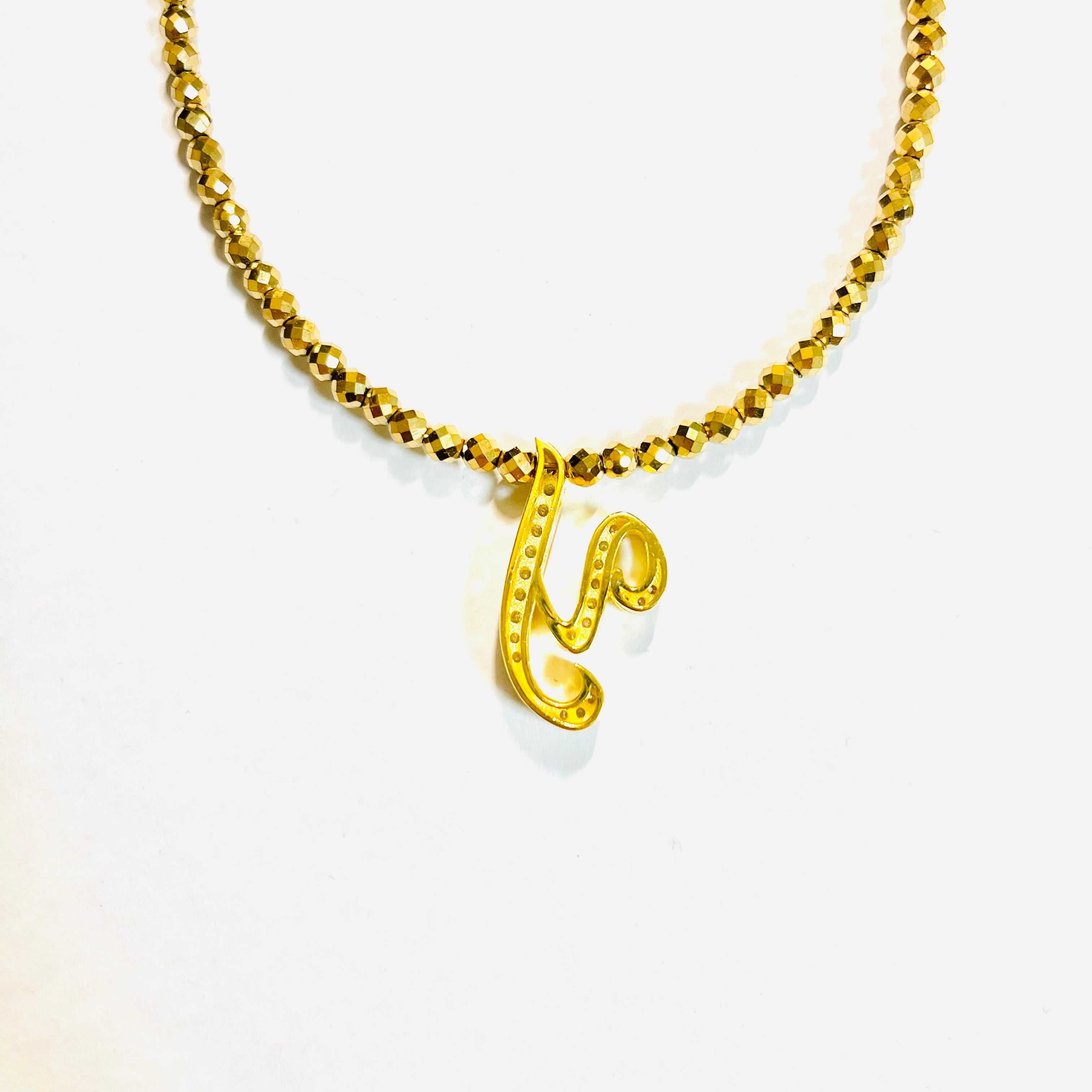 silver925のイニシャルトップを合わせたnecklaceです☆ヘマタイトは鉱石のため劣化する事なく半永久、長くご愛用いただけて肩こり改善、体調バランスを整える健康アイテムとして知られています