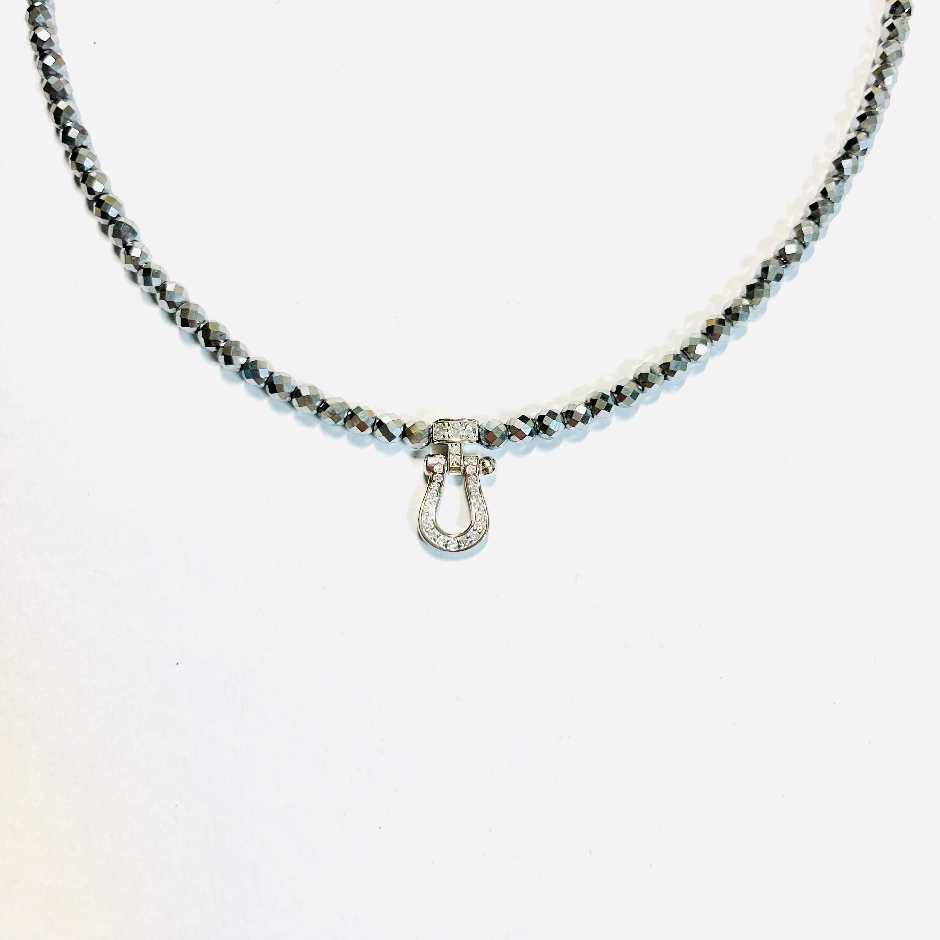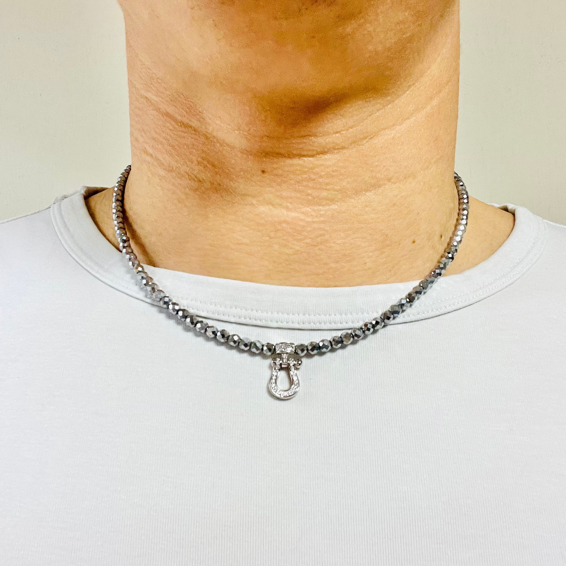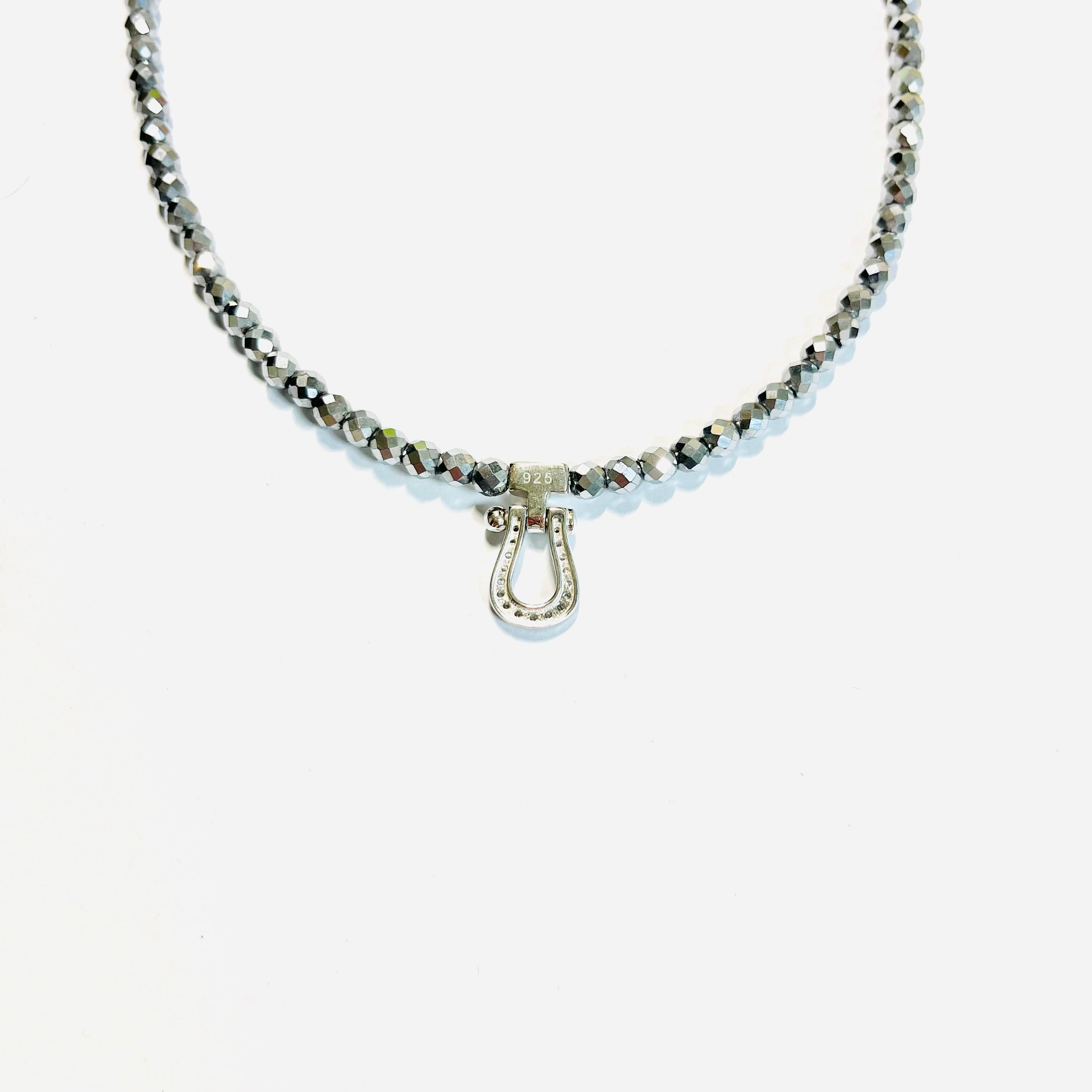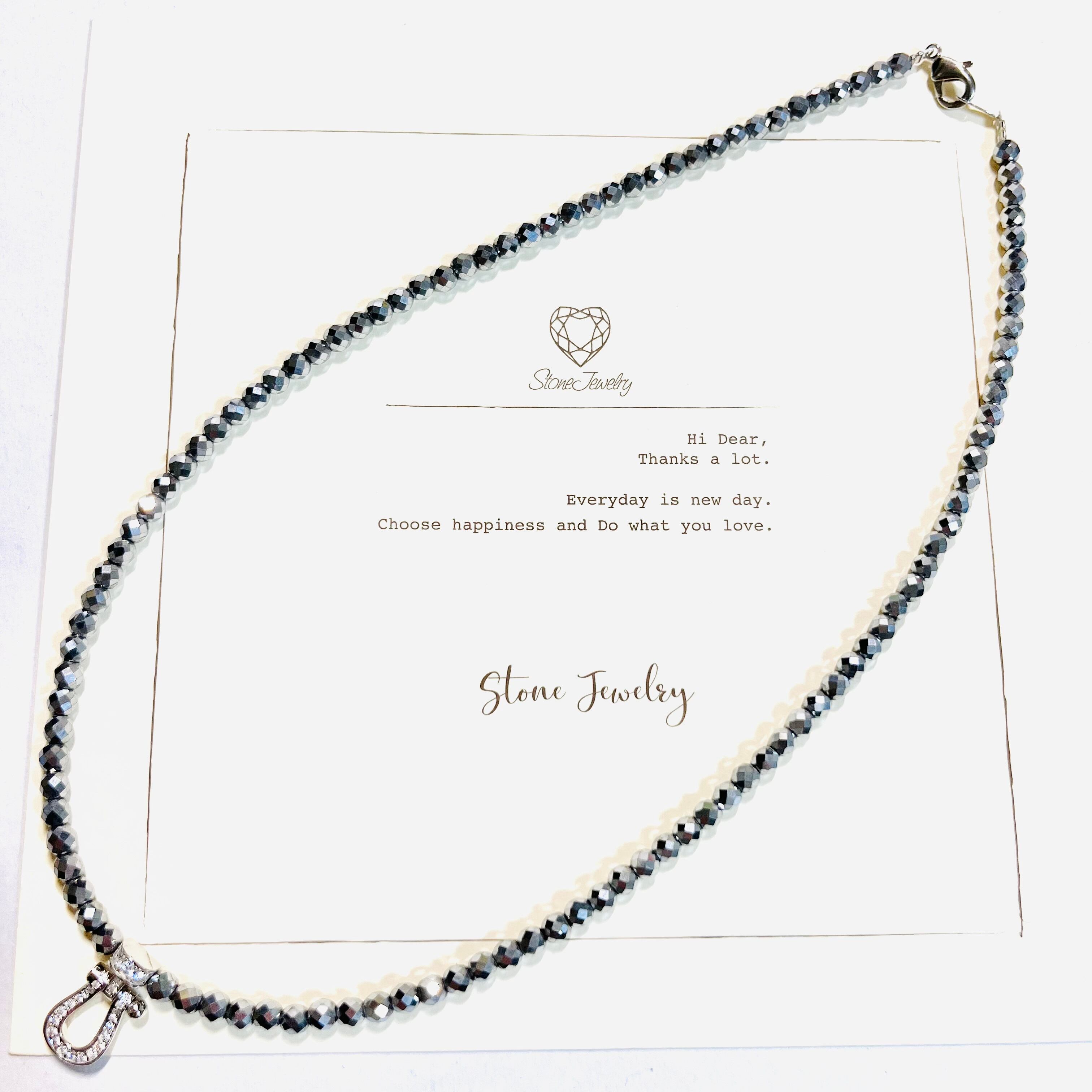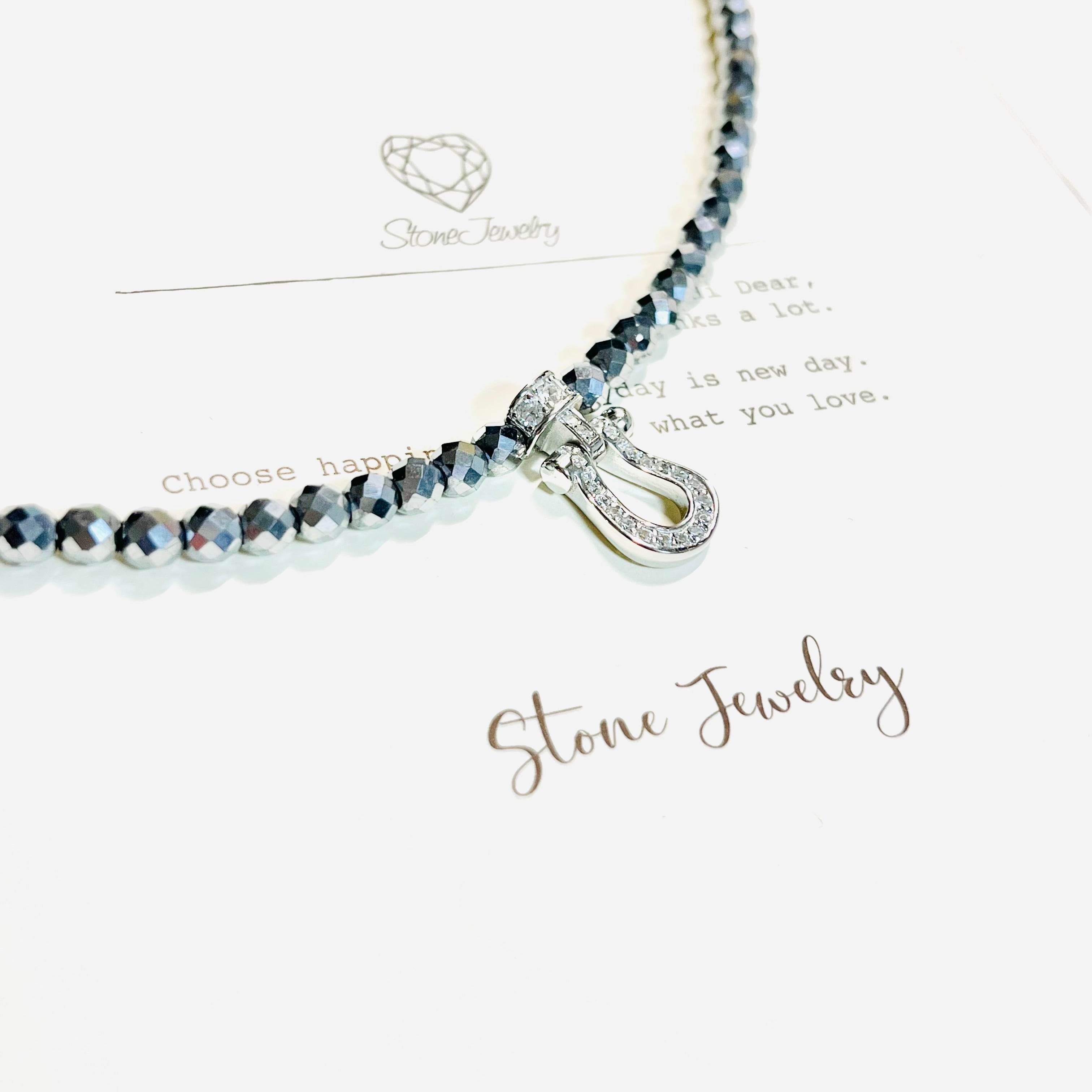 silver925の小ヒヅメトップを合わせたnecklaceです☆ヘマタイトは鉱石のため劣化する事なく半永久、長くご愛用いただけて肩こり改善、体調バランスを整える健康アイテムとして知られています