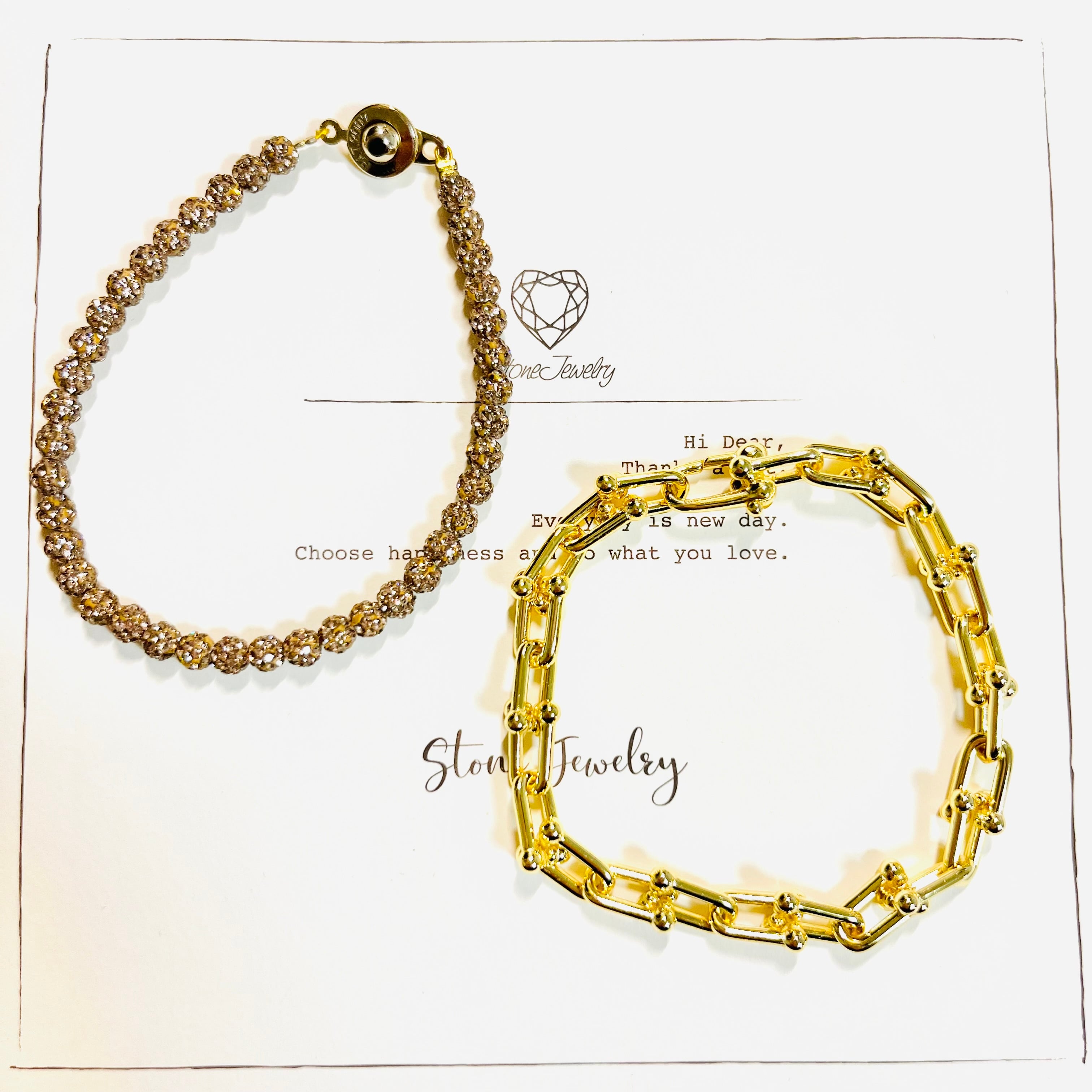 キラキラゴールドブレスレットと鎖小ブレスレットの2連セットとなります☆