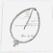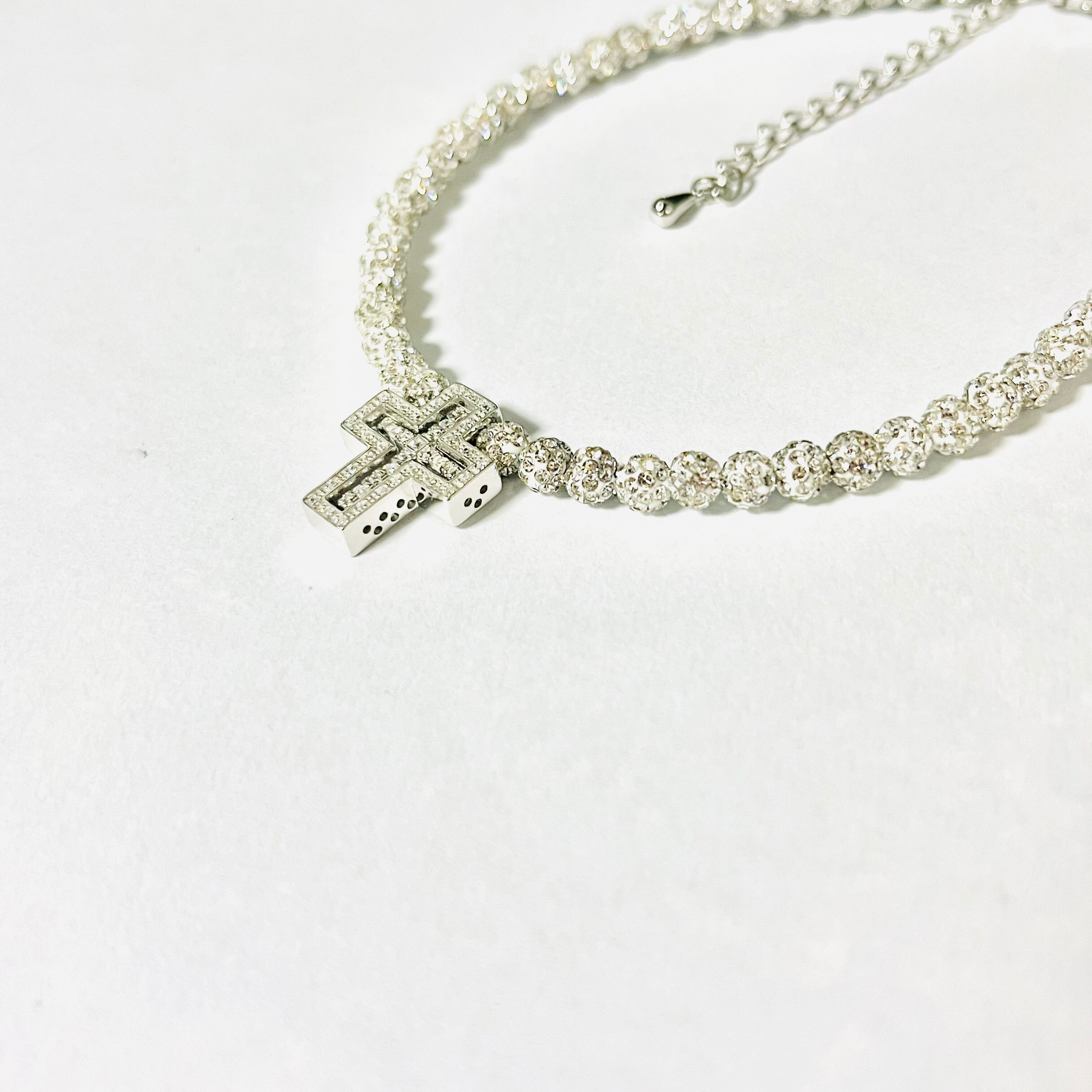 小さいダブルクロスをクリスタルガラスのホワイトチェーンと合わせたキラキラアンクレットになり、お風呂、温泉、海等も着けていただけます。足首にちょこっとついたダブルクロスが可愛く輝いております☆