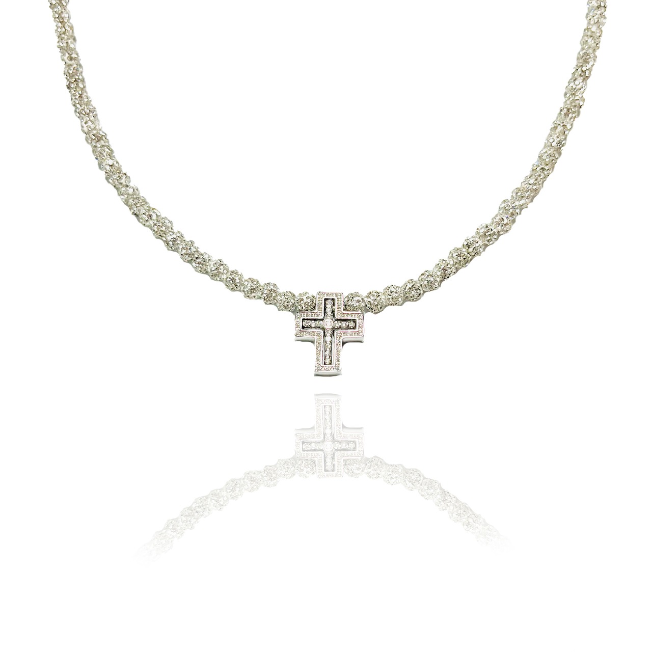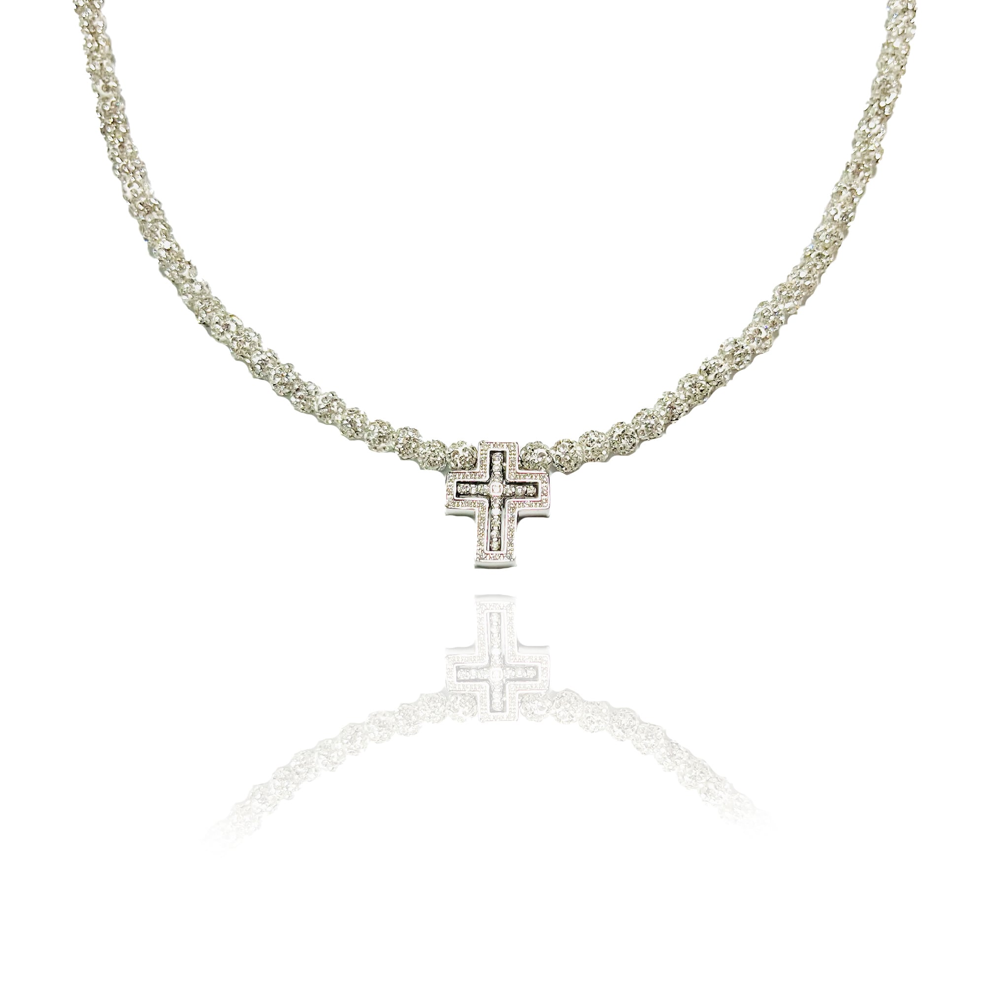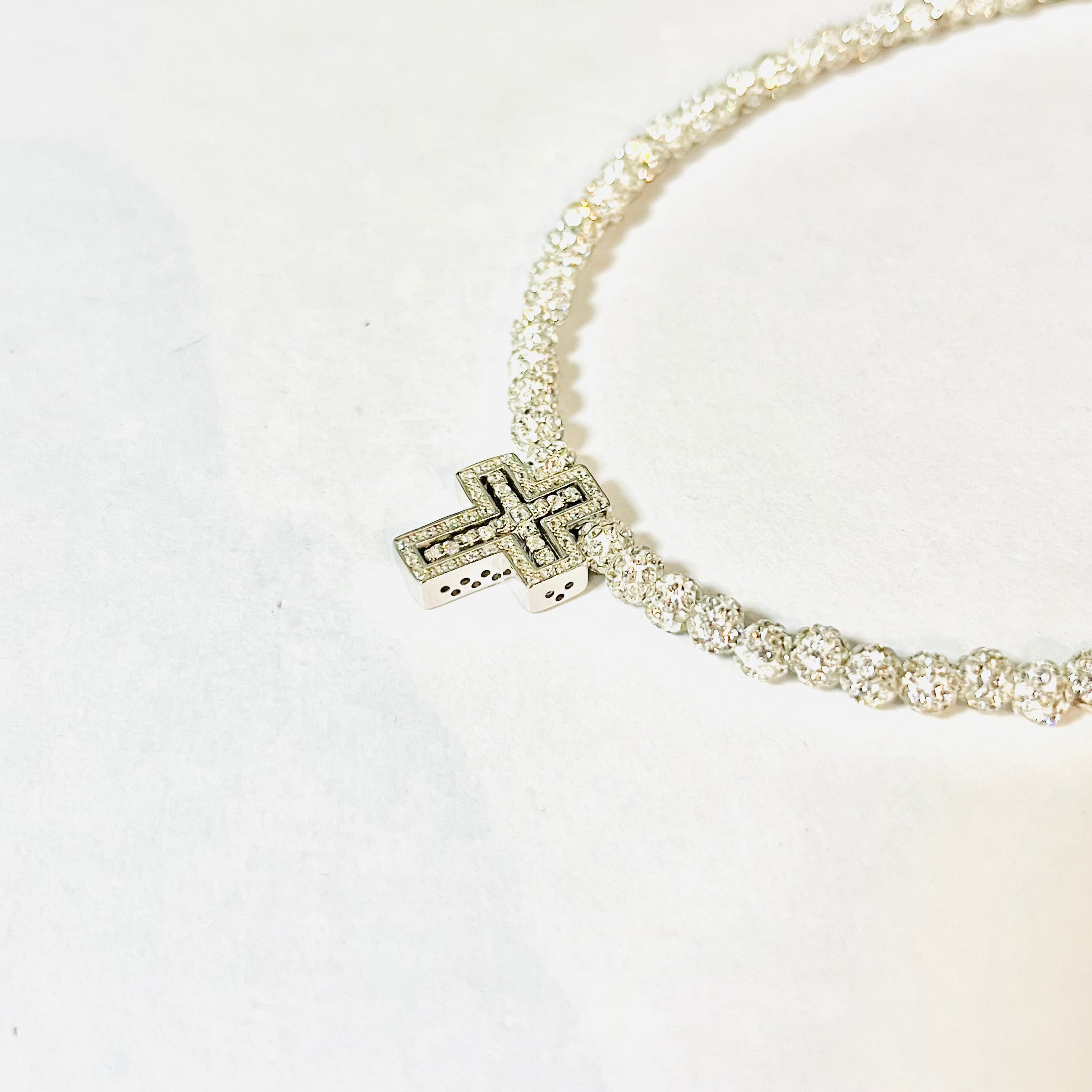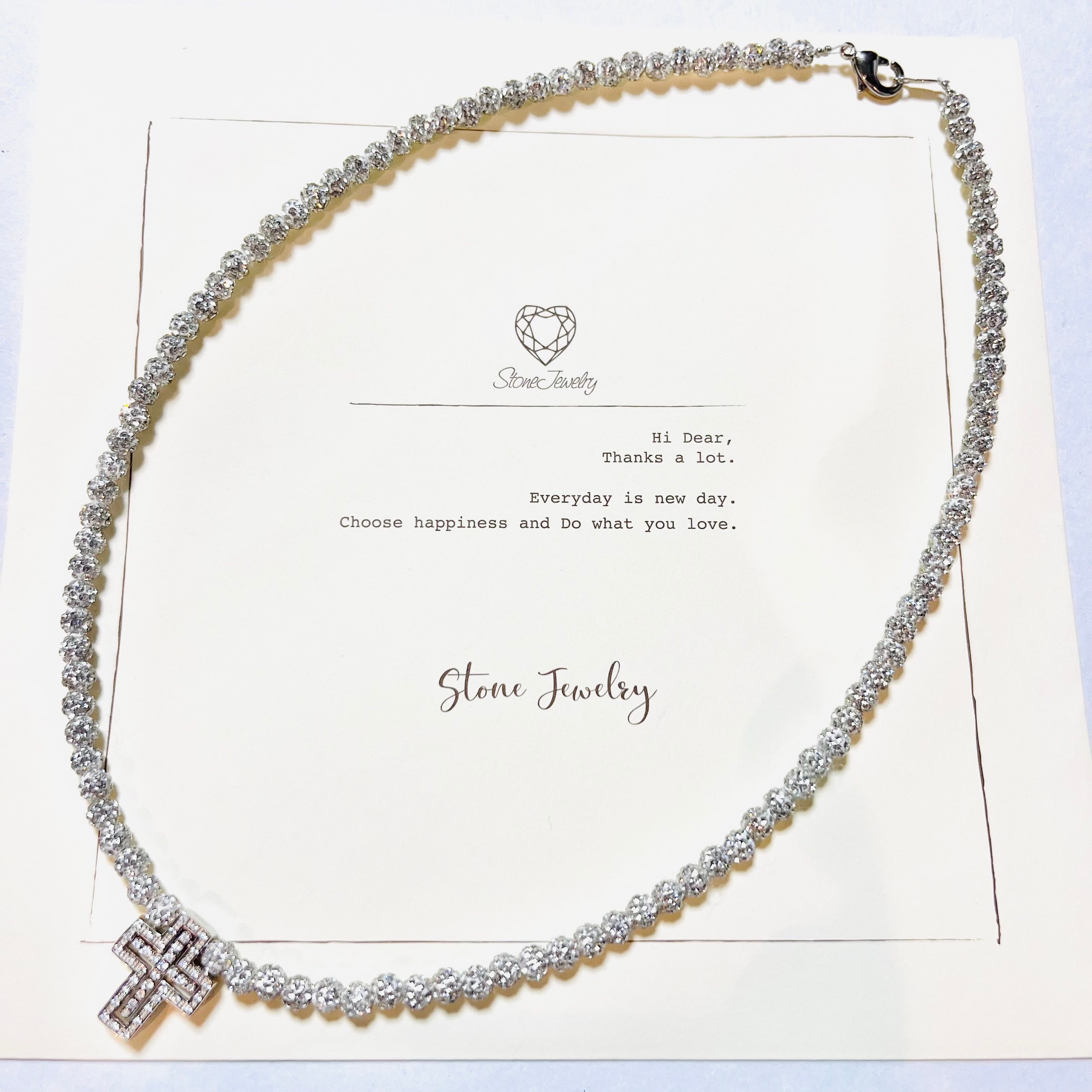 silver925(銀)小ダブルトップクロスとホワイトを合わせた当店で一番少しインパクトのあるキラキラネックレスです☆